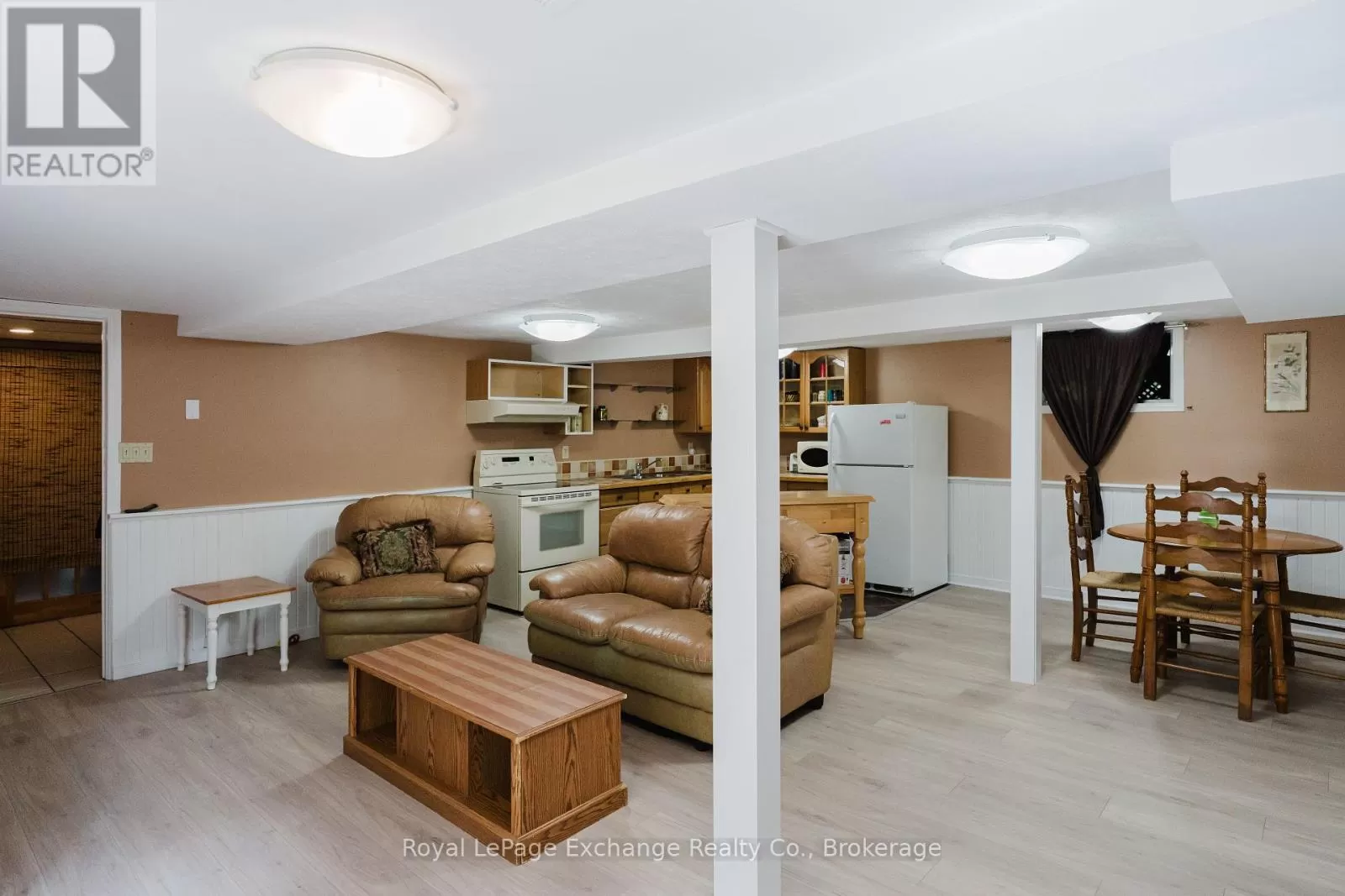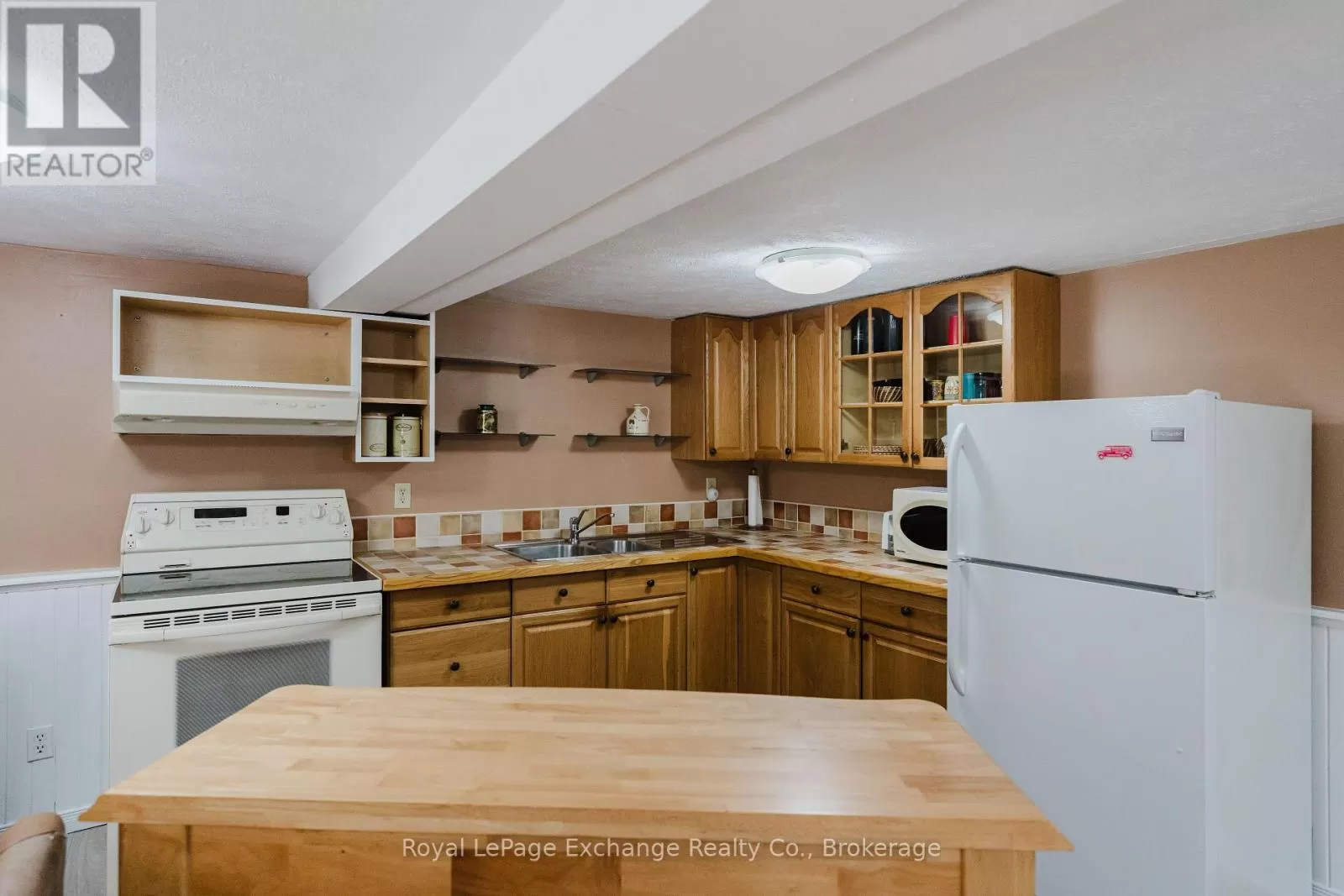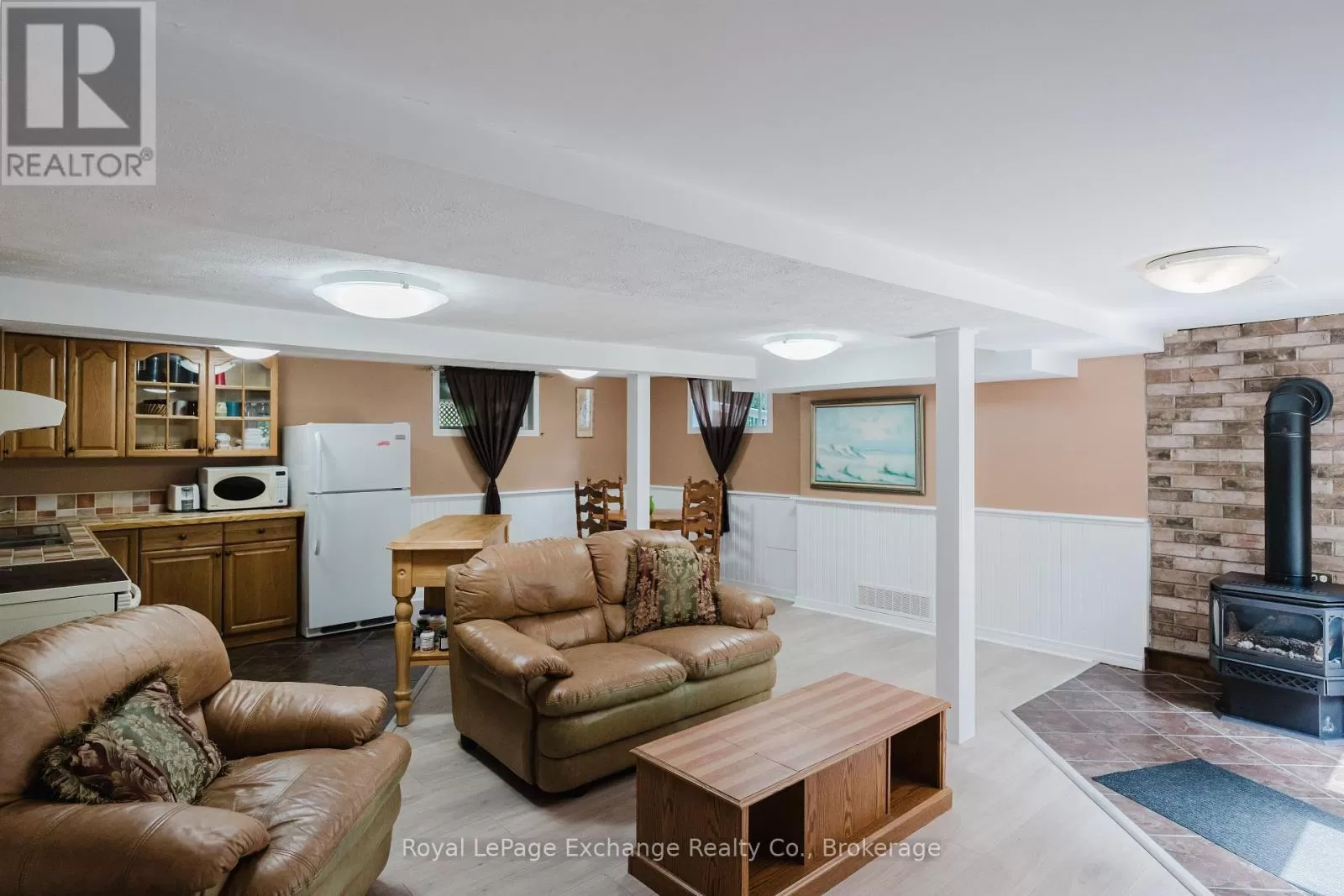 Cross Streets: GREEN ST & IZZARD RD. ** Directions: Green St West towards Lake Huron, Left on Izzard Rd, Left on Mitchell Lane, 2nd last House on the right. Opportunity to Live in or Investment in this Bungalow with 2 bedrooms + 1 bedroom walk-out level apartment. Offering a versatile layout and immediate comfort, with plenty of scope to add your personal touch. Nestled at the end of a quiet lane, it enjoys exceptional privacy while sitting just one block from the Sandy Beaches of Lake Huron in Port Elgin & steps to trails. Enjoy morning strolls or sunset views in minutes. Spacious & Bright throughout with large windows ready for your décor ideas. Eat-in kitchen featuring solid wood cabinetry and room to modernize countertops and appliances with a wrap around deck with new trex. Two spacious bedrooms served by a full bathroom with tub/shower combo & Laundry combined. Lower Level walk-in Apartment, Self-contained 1-bedroom suite with separate entrance ideal for guests or rental income. Open-concept living/dining area with garden-view windows. Full bathroom, Laundry and Kitchen. Exterior & Mechanical Lovingly cared for property, heated by upper & lower gas fireplaces with eclectic bb back up. Updated roof (2018). Two driveways provide space for up to four vehicles or boat and RV storage. Landscaped yard with mature trees & huge storage unit. Quiet, end-of-lane setting shields you from traffic while keeping shops and dining very close. This home is truly move-in ready, offering solid bones and systems. Personalize the kitchen finishes, refresh the bathrooms, or update flooring to make it your own. Schedule a showing today and start planning how you'll customize this perfectly positioned bungalow. Separate meter for gas, hydro is all one. Lower is currently month to month only & upper is vacant. All furniture, window coverings, appliances and all kitchen utensils / items can be included for immediate short term rentals! (id:27476)