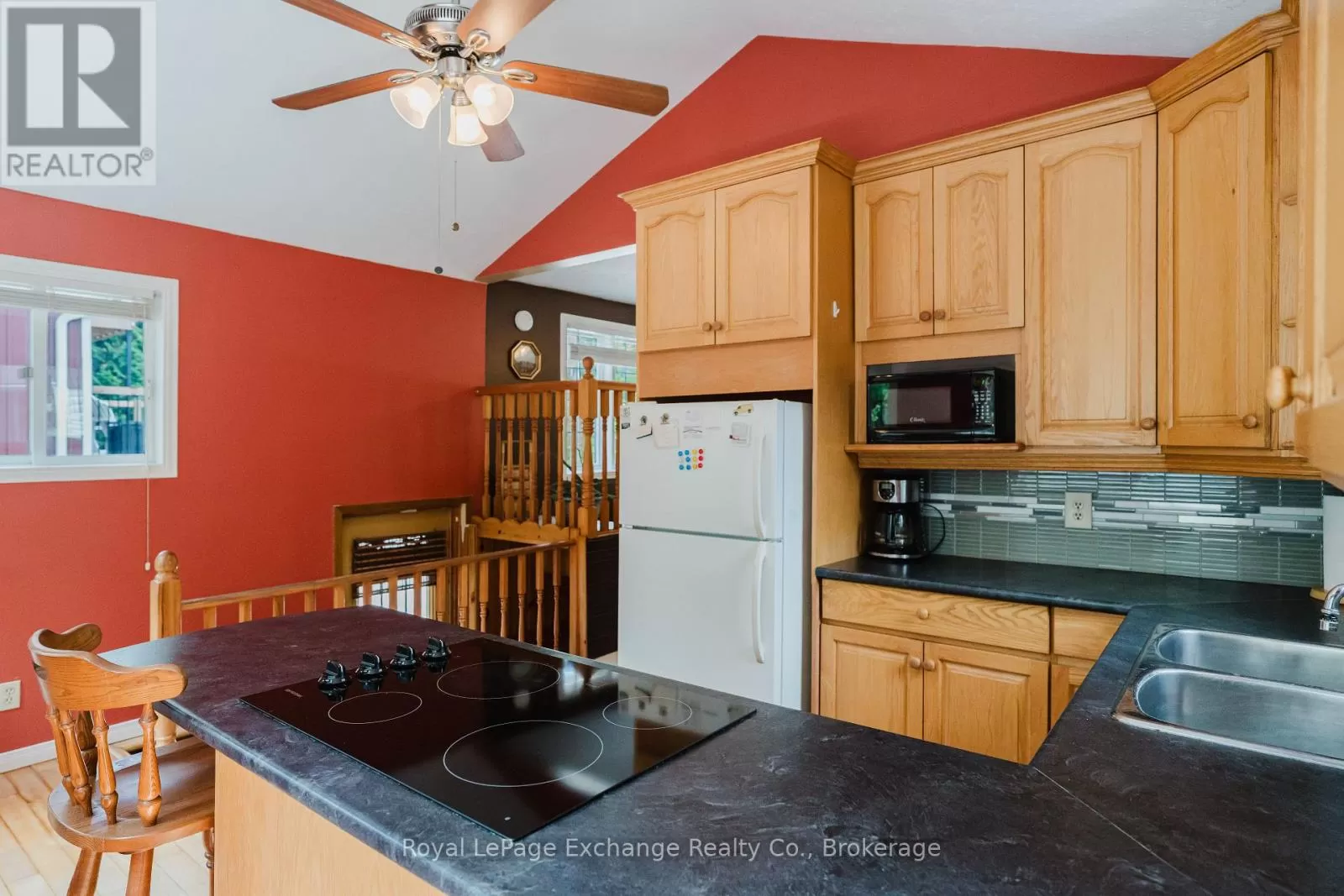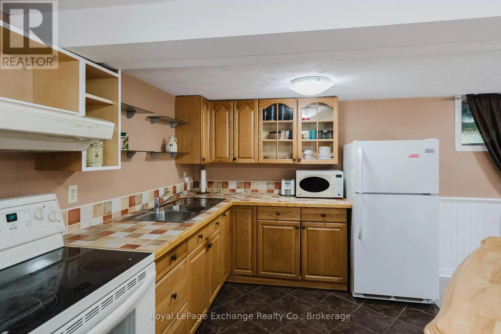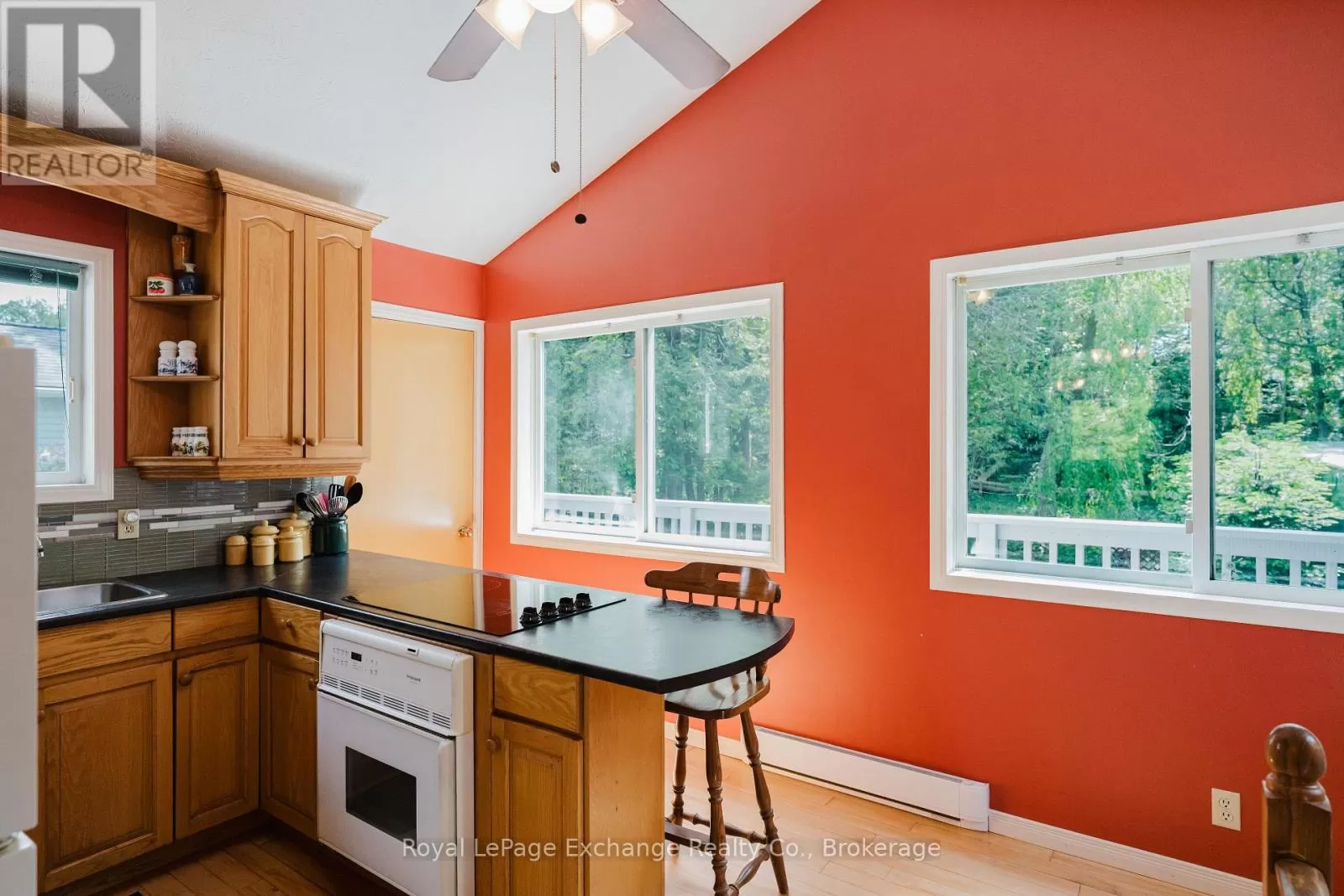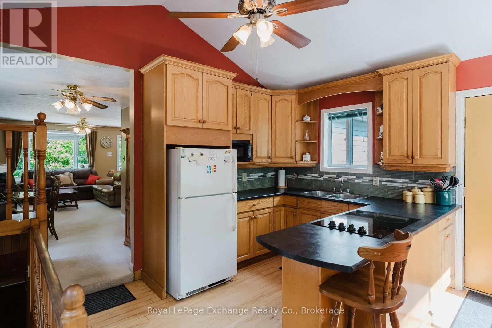 Cross Streets: GREEN ST & IZZARD RD. ** Directions: Green St West towards Lake Huron, Left on Izzard Rd, Left on Mitchell Lane, 2nd last House on the right. Opportunity to Live in or Investment in this Bungalow with 2 bedrooms + 1 bedroom walk-out level apartment. Offering a versatile layout and immediate comfort, with plenty of scope to add your personal touch. Nestled at the end of a quiet lane, it enjoys exceptional privacy while sitting just one block from the Sandy Beaches of Lake Huron in Port Elgin & steps to trails. Enjoy morning strolls or sunset views in minutes. Spacious & Bright throughout with large windows ready for your décor ideas. Eat-in kitchen featuring solid wood cabinetry and room to modernize countertops and appliances with a wrap around deck with new trex. Two spacious bedrooms served by a full bathroom with tub/shower combo & Laundry combined. Lower Level walk-in Apartment, Self-contained 1-bedroom suite with separate entrance ideal for guests or rental income. Open-concept living/dining area with garden-view windows. Full bathroom, Laundry and Kitchen. Exterior & Mechanical Lovingly cared for property, heated by upper & lower gas fireplaces with eclectic bb back up. Updated roof (2018). Two driveways provide space for up to four vehicles or boat and RV storage. Landscaped yard with mature trees & huge storage unit. Quiet, end-of-lane setting shields you from traffic while keeping shops and dining very close. This home is truly move-in ready, offering solid bones and systems. Personalize the kitchen finishes, refresh the bathrooms, or update flooring to make it your own. Schedule a showing today and start planning how you'll customize this perfectly positioned bungalow. Separate meter for gas, hydro is all one. Lower is currently month to month only & upper is vacant. All furniture, window coverings, appliances and all kitchen utensils / items can be included for immediate short term rentals! (id:27476)