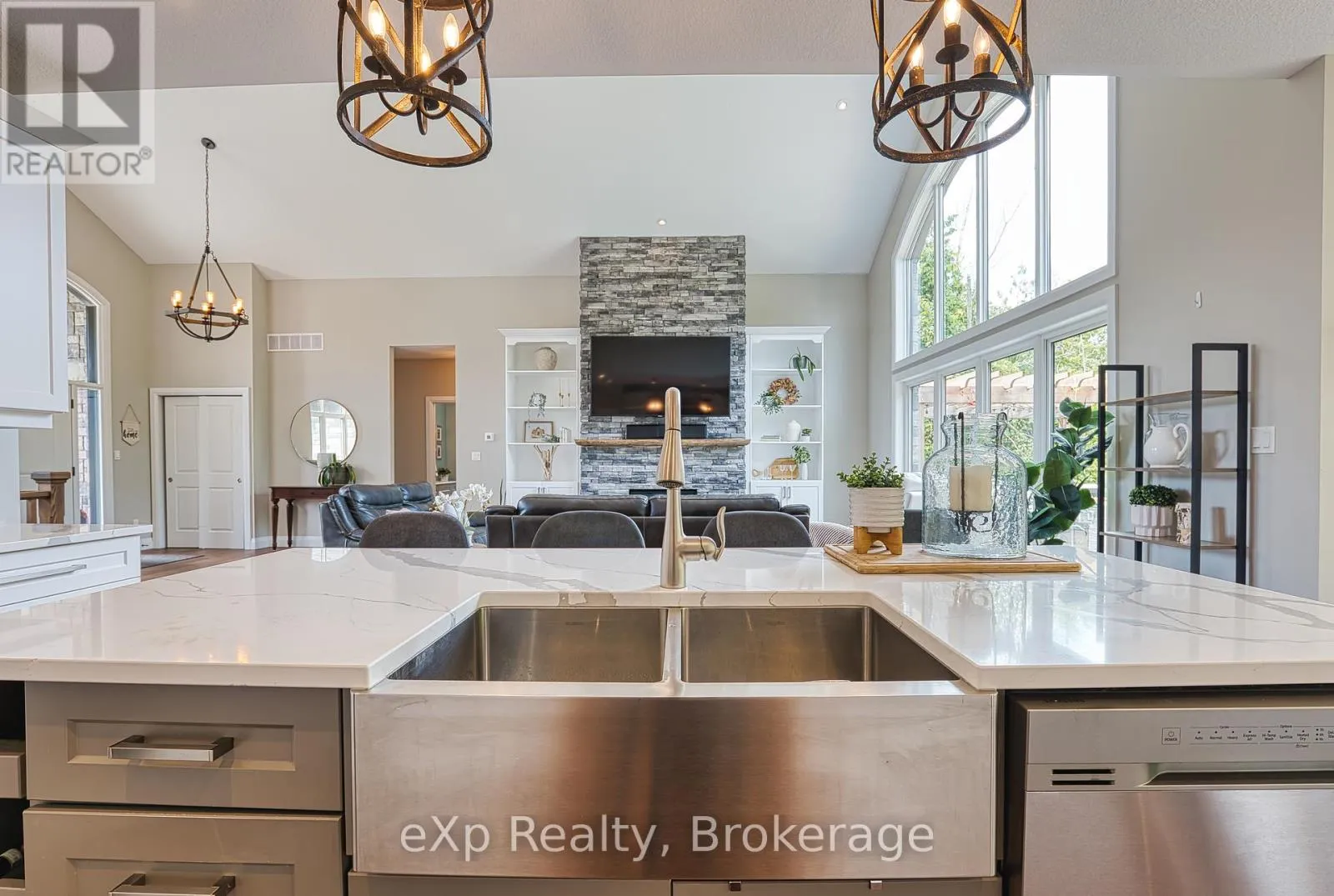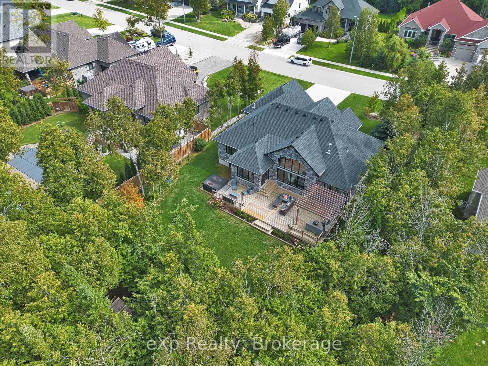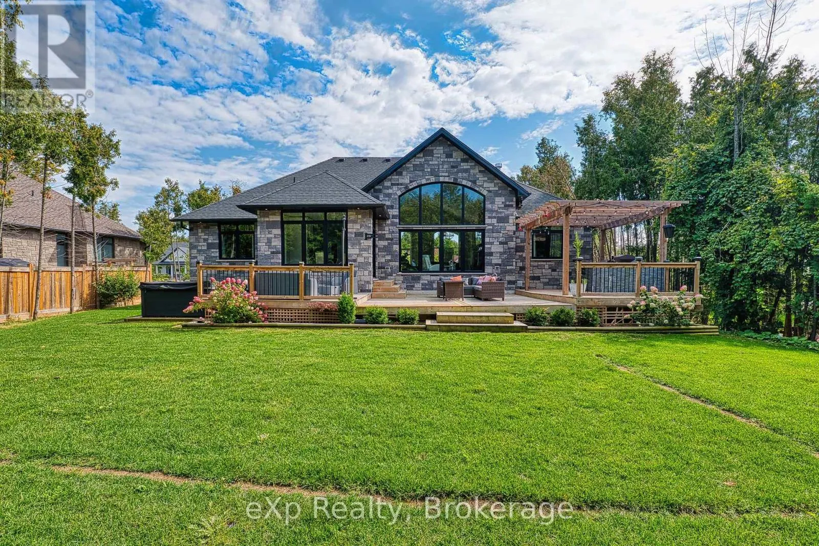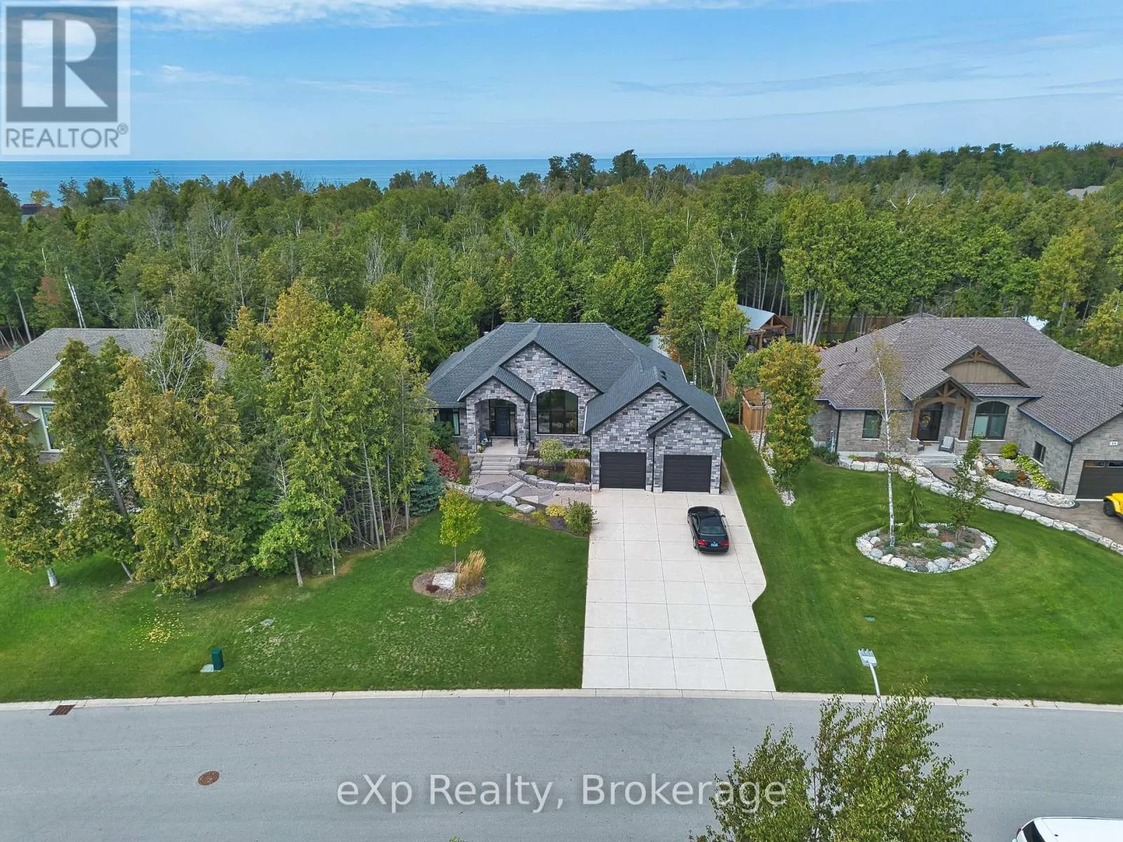 Cross Streets: Westgate Drive and Trillium Drive. ** Directions: 9 Westgate Drive, Saugeen Shores. Welcome to 9 Westgate Drive, an exquisite custom-built Snyder home nestled in the prestigious neighborhood of Saugeen Shores. This stunning residence is just minutes away from the picturesque walking trails and the scenic shore road, offering a beautiful pathway that leads directly to downtown Southampton, the marina, and the sandy shores of Port Elgin Main Beach.This six-year-old home is situated on a sprawling tree-lined lot, providing an abundance of privacy. Step inside to discover a bright and airy interior featuring soaring vaulted ceilings and beautiful engineered hardwood flooring throughout the main floor. The kitchen will simply take your breath away, offering ample space for cooking, plenty of cupboard storage, and a lovely pantry. Quartz countertops add a touch of elegance, while sliding doors from the dining room lead out to an extremely large and beautiful deck, perfect for entertaining or enjoying peaceful outdoor moments.The spacious layout includes three well-appointed bedrooms and two elegant bathrooms, with the primary suite boasting a luxurious en suite complete with a rainfall shower and a generously sized soaker tub. The primary bedroom also features a large walk-in closet, while the great room is adorned with stunning windows that seamlessly blend indoor comfort with the beauty of the outdoors. Backing onto a scenic green space, this home offers complete privacy, ensuring youll never have neighbors directly behind you.The fully finished basement adds even more value, featuring two additional bedrooms and another four-piece bathroom, making it perfect for family gatherings or hosting friends. With everything you need conveniently located on the main floor, this true bungalow provides both functionality and elegance. The exterior is adorned with beautiful stonework, enhancing its curb appeal. This breathtaking home is a must-see schedule your viewing today and experience the perfect blend of luxury and tranquility at 9 Westgate Drive! (id:27476)