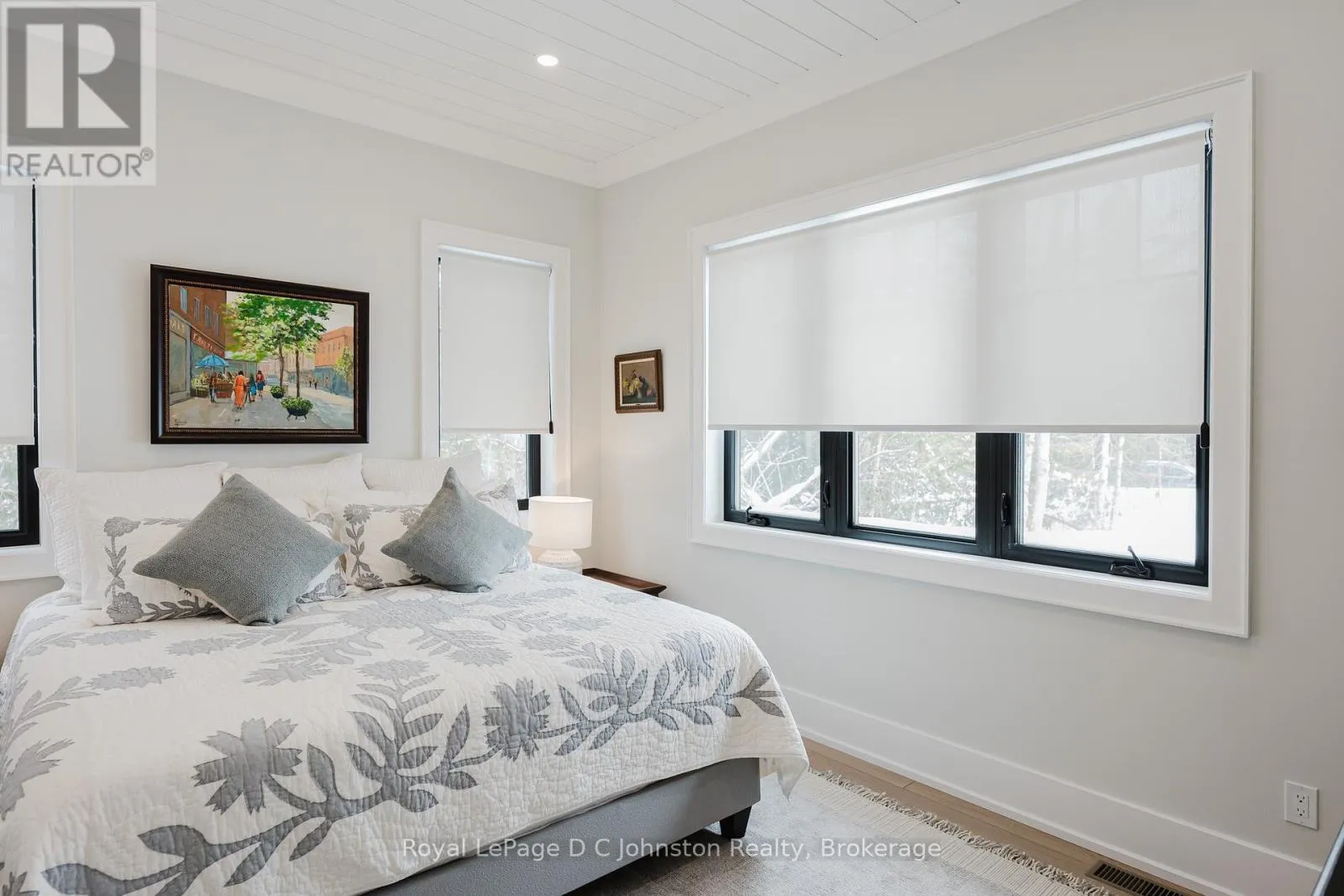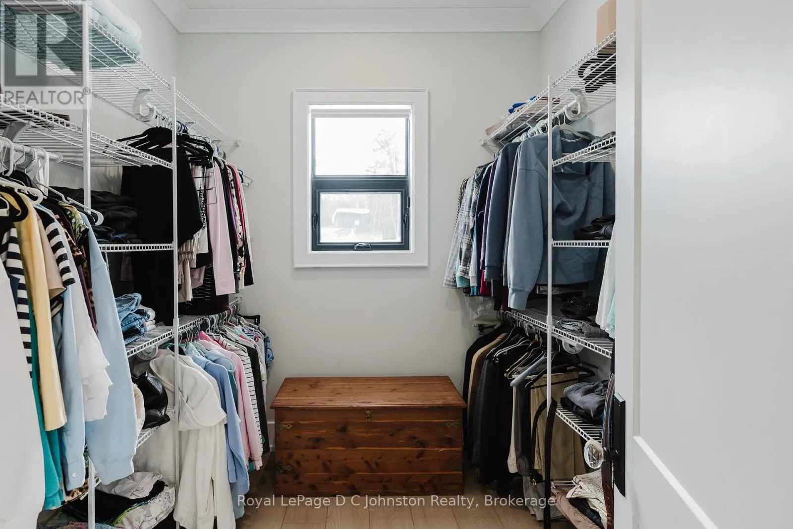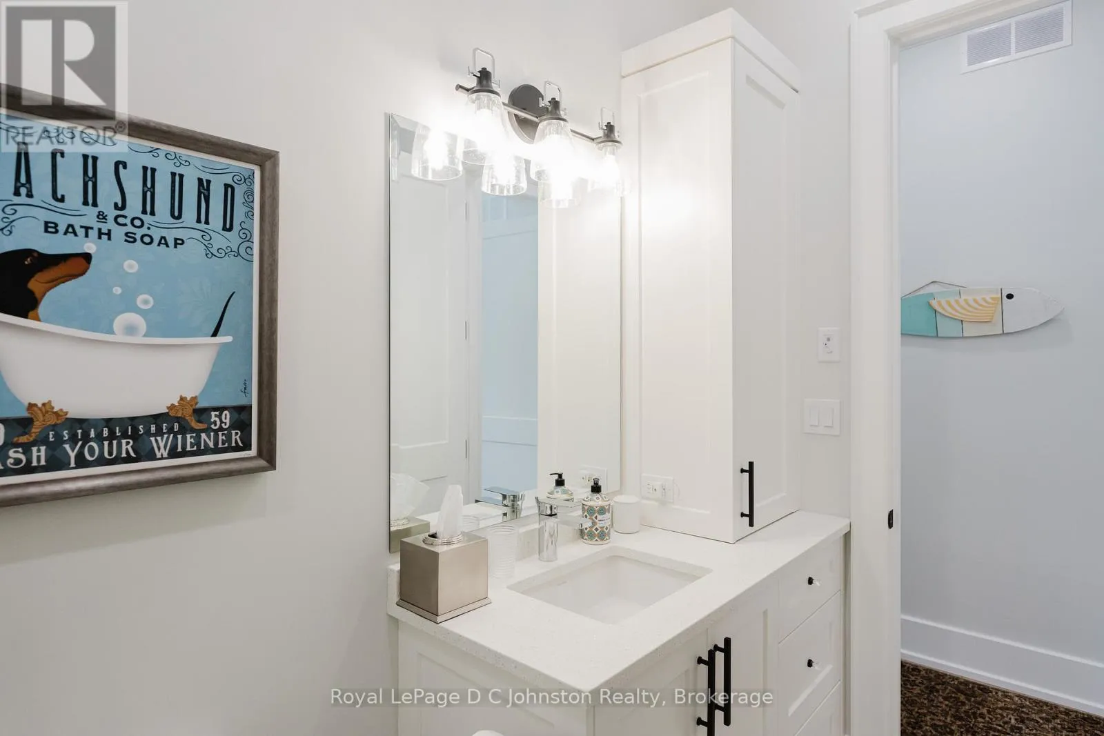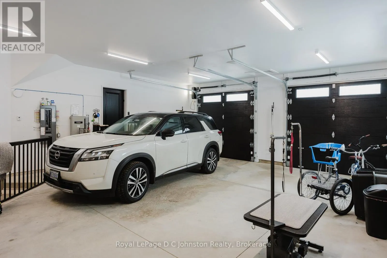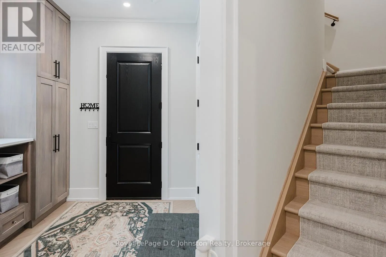 Cross Streets: Concession Rd 10. ** Directions: North end of Port Elgin, West on Concession 10 towards Lake Huron, Turn right on Lakeside Woods Crescent to property on left side. Introducing an architectural masterpiece where bespoke craftsmanship meets unparalleled luxury. Step inside this stunning 3267 square foot bungalow, built without stairs on grade, and immediately experience the soaring great room with a vaulted white shiplap ceiling, a custom floor-to-ceiling stone gas fireplace, and a sleek wet bar with Marvel bar fridge. This space seamlessly flows into the gourmet kitchen and dining area, which are defined by Douglas fir ceiling beams and a white washed tongue and groove ceiling. The kitchen is outfitted with gorgeous maple cabinetry, upscale Thermador appliances, a quartz island with a waterfall edge and a large walk in pantry. The property extends its entertaining opulence to a fully enclosed 650 square foot three season sunroom featuring a second gas fireplace, spectacular milled Douglas fir ceilings and beams and heated sandblasted stone floors. A serene primary suite awaits, complete with a vaulted shiplap ceiling, walk-out to a large covered porch and ensuite featuring an oversized walk-in shower and freestanding tub. The split-plan design separates the guest bedrooms and bath for ultimate privacy. The home features a 500 square foot bonus room with a full bath and separate heating/cooling above the garage. Equally focused on functional luxury, there is a dedicated laundry room with custom cabinetry and quartz countertops, as well as a mudroom with coordinating maple cabinets and quartz counters - providing an elegant transition from the oversized double garage. Every detail, from the exquisite millwork, heated towel bars, in-floor gas hot water heating, Generac standby generator,, speaks to a life of refined comfort. Situated midway between Port Elgin and Southampton, this absolutely exquisite home, clad in stone and Maibec wood siding on a private wooded lot, is ideally located to take full advantage of the coveted four-season lakeside lifestyle Saugeen Shores is known for. (id:27476)