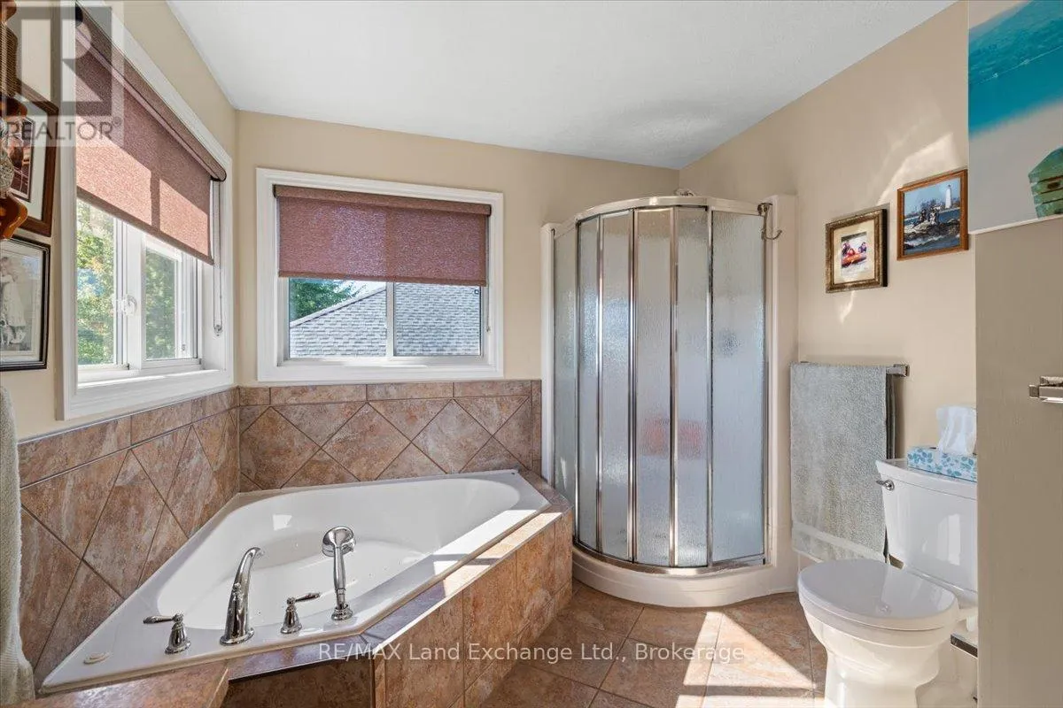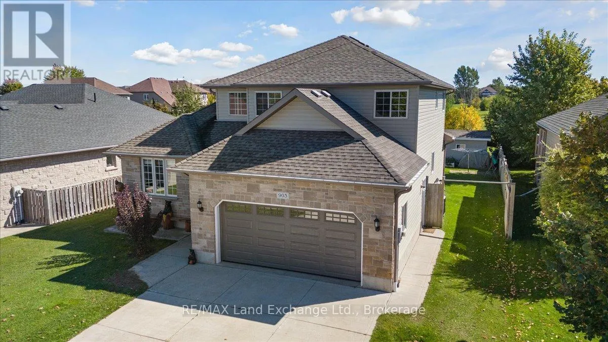 Cross Streets: Highland Street and Piccadilly Drive. ** Directions: West on Parkwood Drive; turn right onto Highland Street, to #903. Welcome to this great 2-storey home in the heart of Port Elgin, tucked away on a mature lot just minutes from downtown, the beach, and top-rated schools. With over 2,100 sq.ft. of thoughtfully designed living space, this home perfectly balances comfort and style. The bright eat-in kitchen boasts quartz counters, a large island, and views of the private backyard. Upstairs, the spacious primary suite features a walk-in closet and a spa-like ensuite with a stand-up shower and separate soaking tub. Two additional bedrooms and a full bath complete the upper level. The main floor also offers a powder room, laundry, and a versatile den ideal for a home office. The fully finished lower level expands your living space with a large recreation room anchored by a cozy gas fireplace, two extra bedrooms, a full bath, and abundant storage options. Outside, unwind in your backyard oasis with tiered decking and a hot tub. An oversized double garage adds the finishing touch to this exceptional property. (id:27476)