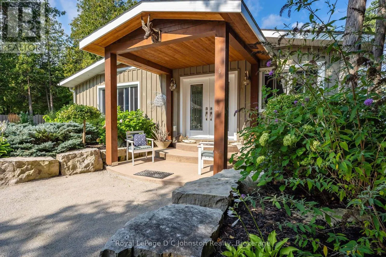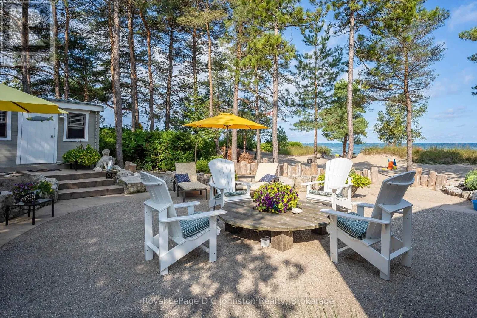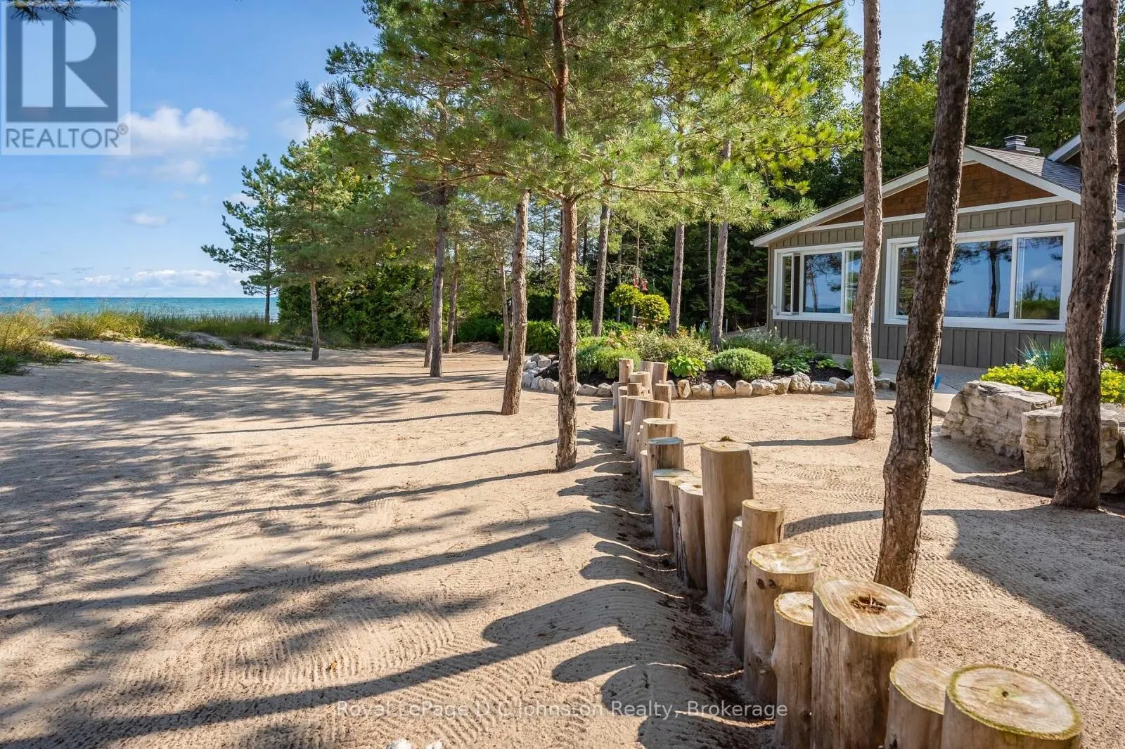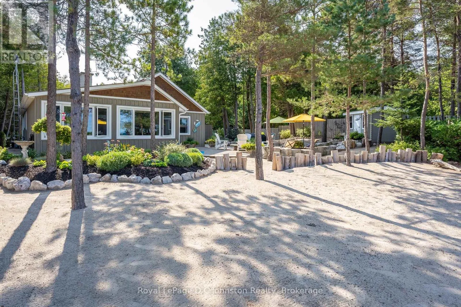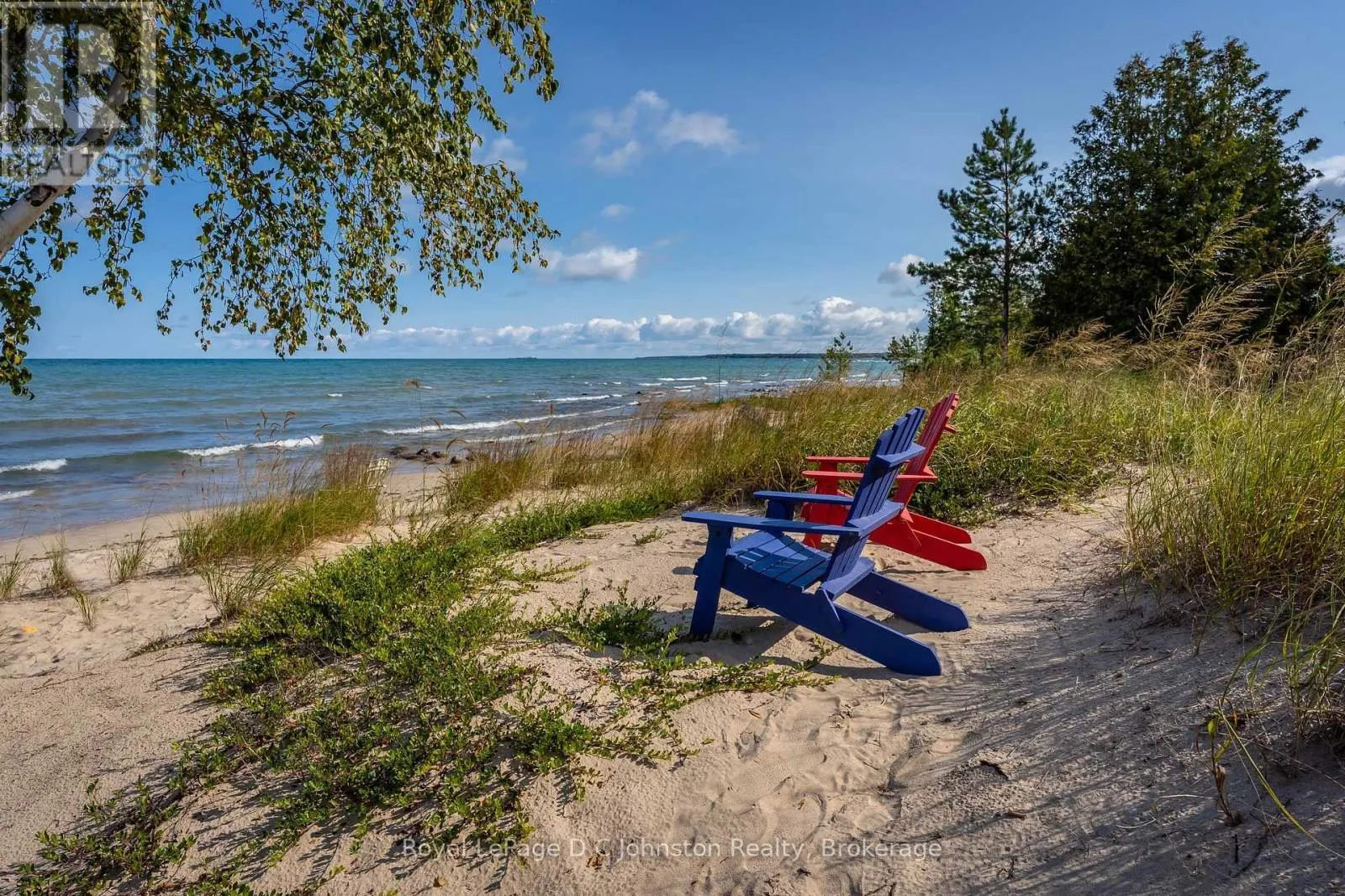 Cross Streets: CAW Road. ** Directions: From Highway 21 South of Port Elgin, West on CAW road, turn left at the water to Saugeen Beach Road turn left and follow the road to #103 on the right side. Dream Beachfront Retreat in Port Elgin. This is an unparalleled opportunity to own a piece of Saugeen Beach Road's coveted shoreline, nestled in the trees along the enclave known locally as Eidt's Grove. This property boasts a generous 111 foot frontage of sandy Lake Huron shoreline, offering spectacular panoramic views and sunsets. The large, private lot is a natural oasis, featuring a charming babbling stream that meanders through the property. The fully renovated 1,800 square foot year-round home or vacation hideaway (fully updated in 2010) is designed for comfort and style. Inside, the home is anchored by a rustic stone fireplace in the main living area, complemented by engineered hickory wood floors and a bright, functional kitchen featuring whitewashed poplar cabinetry, a large island, and stainless steel appliances. With three bedrooms, a large entrance foyer, and a main-floor laundry room, this home is as practical as it is beautiful. Step outside to exceptional outdoor living spaces, including stunning exposed aggregate concrete walkways and patios that lead directly to the white sand beach. The property is complete with an oversized, detached 24 x 30 foot insulated garage/workshop, a woodshed, a 7 x 11 foot bunkie, and a refreshing outdoor shower, making this a truly turn-key lakefront gem. (id:27476)