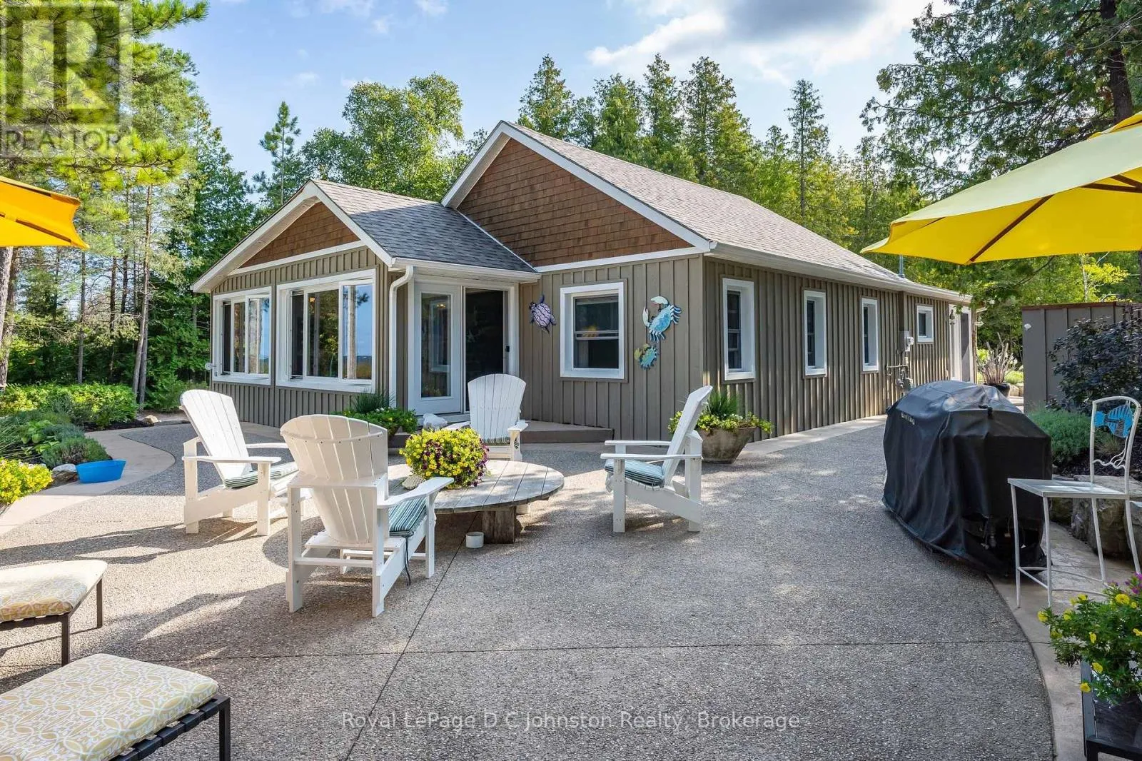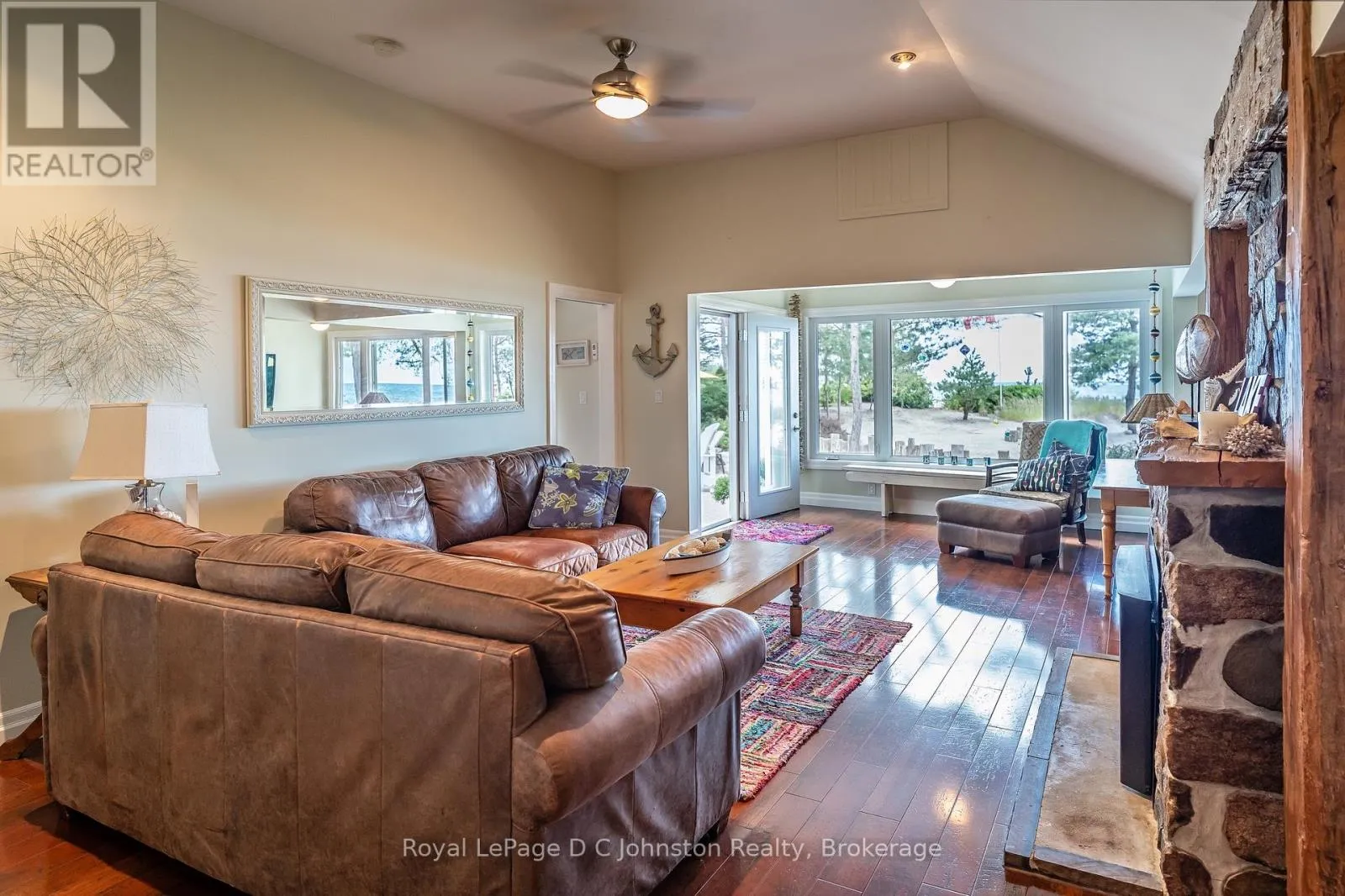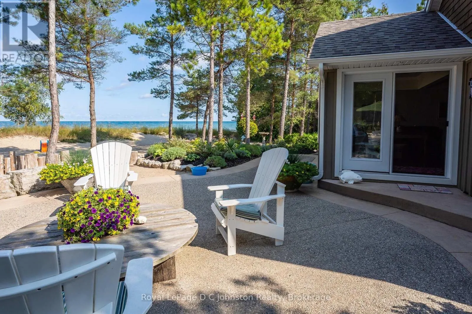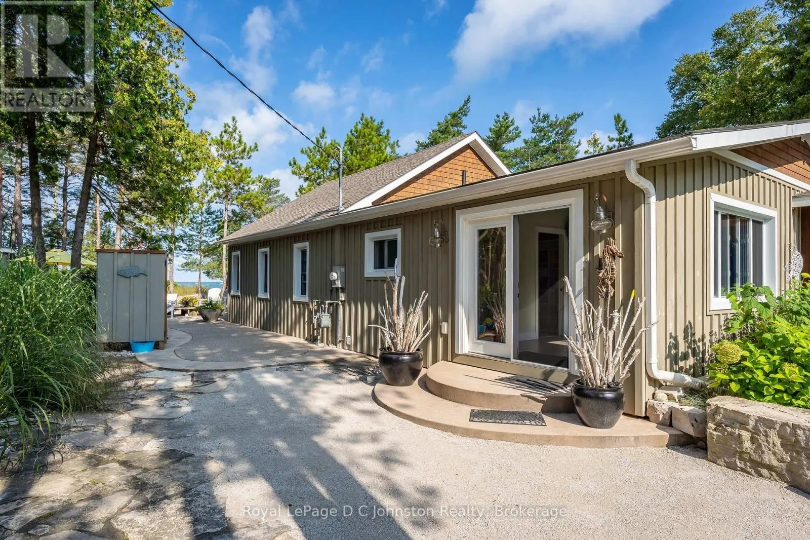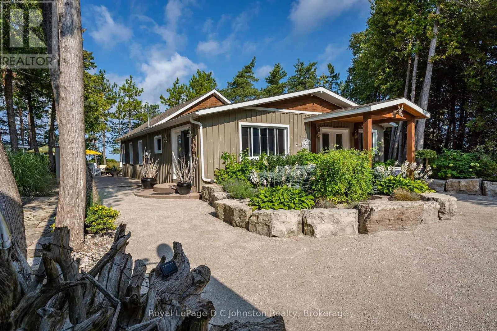 Cross Streets: CAW Road. ** Directions: From Highway 21 South of Port Elgin, West on CAW road, turn left at the water to Saugeen Beach Road turn left and follow the road to #103 on the right side. Dream Beachfront Retreat in Port Elgin. This is an unparalleled opportunity to own a piece of Saugeen Beach Road's coveted shoreline, nestled in the trees along the enclave known locally as Eidt's Grove. This property boasts a generous 111 foot frontage of sandy Lake Huron shoreline, offering spectacular panoramic views and sunsets. The large, private lot is a natural oasis, featuring a charming babbling stream that meanders through the property. The fully renovated 1,800 square foot year-round home or vacation hideaway (fully updated in 2010) is designed for comfort and style. Inside, the home is anchored by a rustic stone fireplace in the main living area, complemented by engineered hickory wood floors and a bright, functional kitchen featuring whitewashed poplar cabinetry, a large island, and stainless steel appliances. With three bedrooms, a large entrance foyer, and a main-floor laundry room, this home is as practical as it is beautiful. Step outside to exceptional outdoor living spaces, including stunning exposed aggregate concrete walkways and patios that lead directly to the white sand beach. The property is complete with an oversized, detached 24 x 30 foot insulated garage/workshop, a woodshed, a 7 x 11 foot bunkie, and a refreshing outdoor shower, making this a truly turn-key lakefront gem. (id:27476)