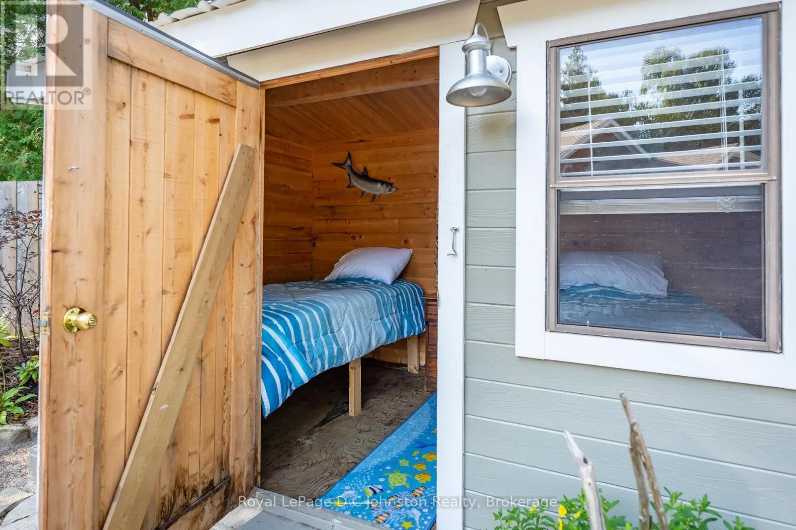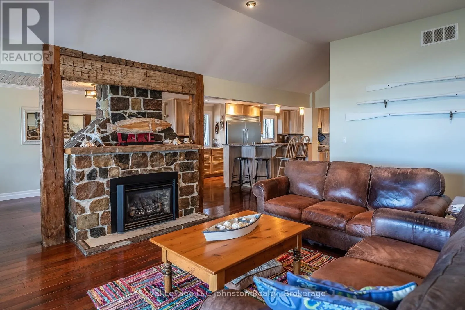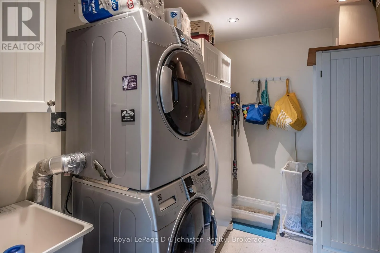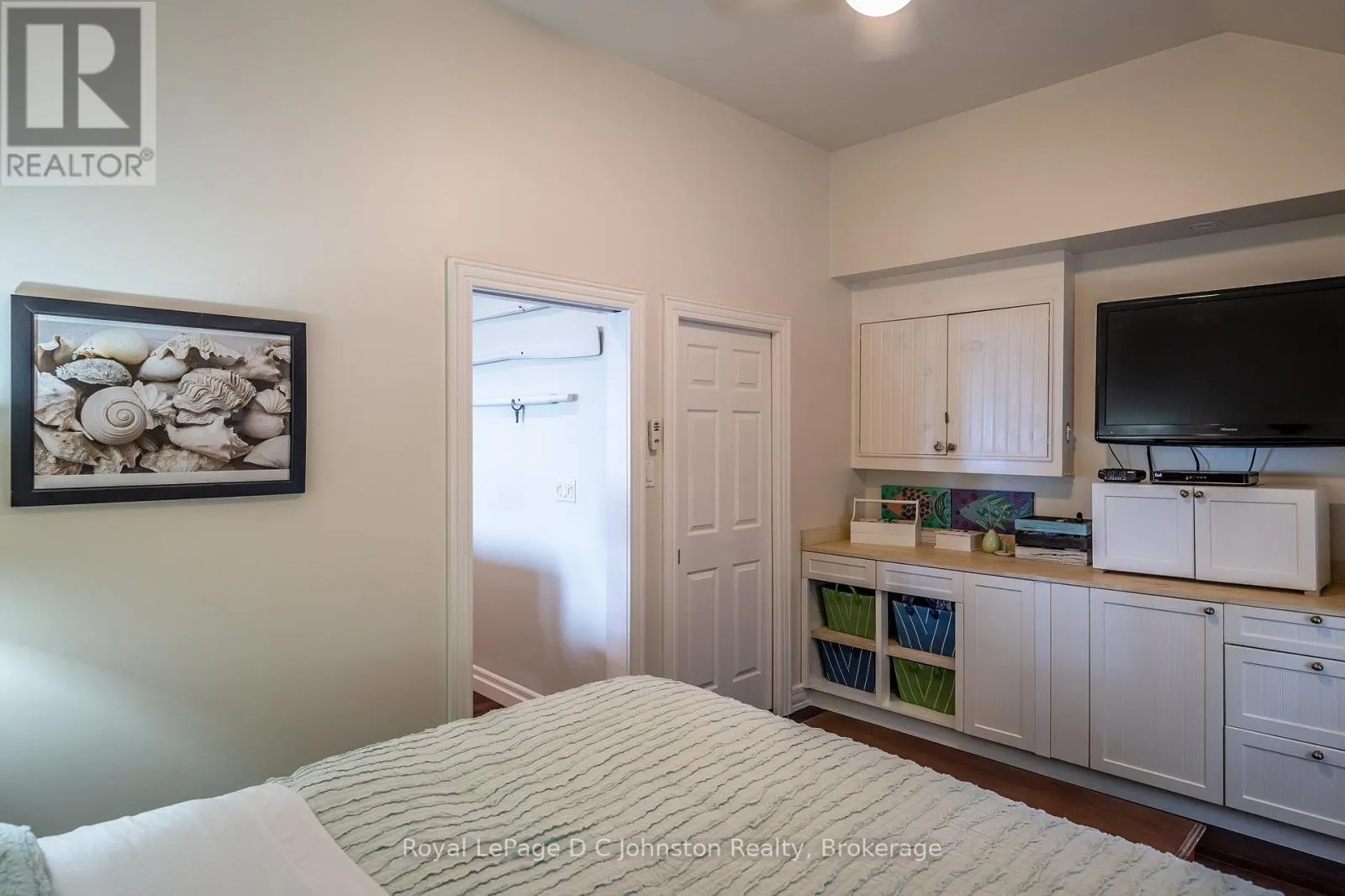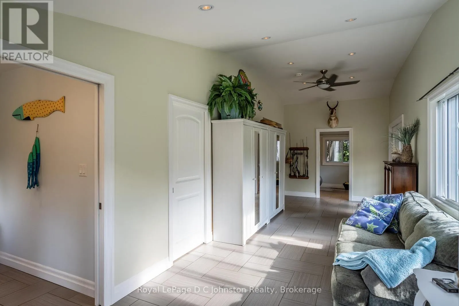Cross Streets: CAW Road. ** Directions: From Highway 21 South of Port Elgin, West on CAW road, turn left at the water to Saugeen Beach Road turn left and follow the road to #103 on the right side. Dream Beachfront Retreat in Port Elgin. This is an unparalleled opportunity to own a piece of Saugeen Beach Road's coveted shoreline, nestled in the trees along the enclave known locally as Eidt's Grove. This property boasts a generous 111 foot frontage of sandy Lake Huron shoreline, offering spectacular panoramic views and sunsets. The large, private lot is a natural oasis, featuring a charming babbling stream that meanders through the property. The fully renovated 1,800 square foot year-round home or vacation hideaway (fully updated in 2010) is designed for comfort and style. Inside, the home is anchored by a rustic stone fireplace in the main living area, complemented by engineered hickory wood floors and a bright, functional kitchen featuring whitewashed poplar cabinetry, a large island, and stainless steel appliances. With three bedrooms, a large entrance foyer, and a main-floor laundry room, this home is as practical as it is beautiful. Step outside to exceptional outdoor living spaces, including stunning exposed aggregate concrete walkways and patios that lead directly to the white sand beach. The property is complete with an oversized, detached 24 x 30 foot insulated garage/workshop, a woodshed, a 7 x 11 foot bunkie, and a refreshing outdoor shower, making this a truly turn-key lakefront gem. (id:27476)