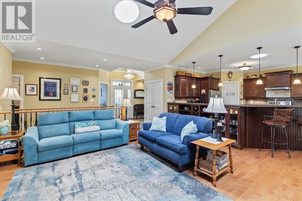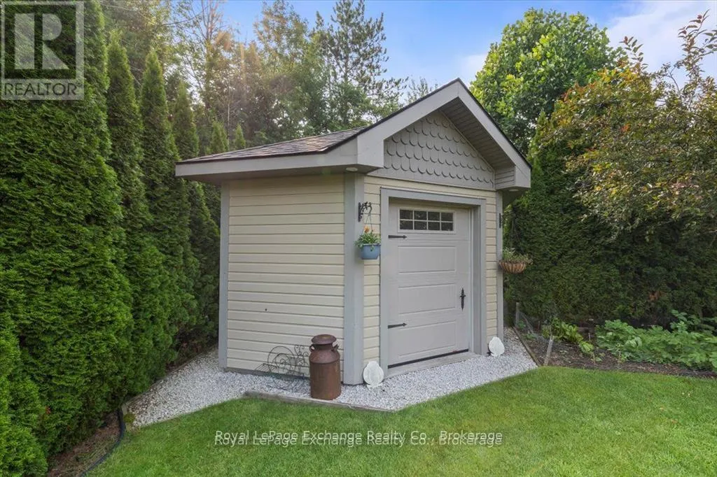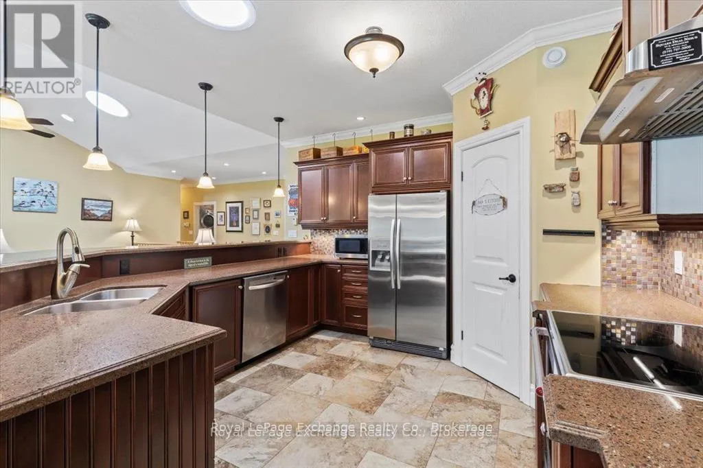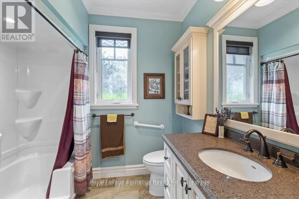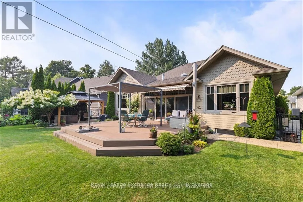 Cross Streets: Eastgate Drive. ** Directions: Off Highway 21. Beautifully updated and meticulously maintained bungalow built by respected local builder Derek Christie. Nestled in one of Southamptons most sought-after neighbourhoods, this home offers a functional layout with 4 bedrooms and 3 full bathrooms, making it ideal for families, retirees, or anyone looking to enjoy the relaxed, lakeside lifestyle. With a separate entrance from the garage and rough-ins for a kitchen and bathroom, there is excellent potential for a future in-law suite.The main floor features a bright and welcoming living space, a cozy breakfast nook or dining area, and direct access to a private backyard perfect for entertaining or unwinding. You'll also find 3 generous bedrooms, 2 full bathrooms, a designated laundry room, and tasteful details throughout, including crown moulding, ceiling accents, and quality flooring.The fully finished lower level extends your living space with a spacious family room, a full bathroom ensuite, and ample storage. Whether for guests, recreation, or future conversion, the lower level offers flexibility to suit your needs. Outside, enjoy a fully fenced backyard with mature trees, a large deck, and a spacious shed for added storage. Beyond the shed, a peaceful retreat awaits, offering views of the tranquil ravine this property backs onto. A rare and thoughtful feature: this home has been fragrance and chemical-free for the past five years, ideal for those with sensitivities or anyone seeking a cleaner, healthier living environment. Located just minutes from Lake Hurons sandy beaches, schools, trails, and the hospital, this move-in-ready home offers the perfect blend of comfort, convenience, and nature. Prefer a different paint palette? A professional quote of $4,500+HST is available for repainting the main living areas to suit your style. Other notable features; NG Generator for almost full house, irrigation system, landscape lighting, 3 solitude tubular skylights. (id:27476)