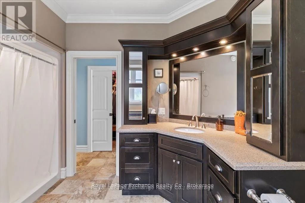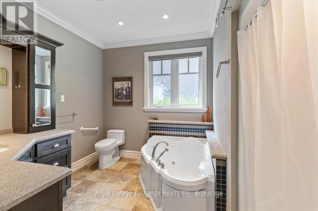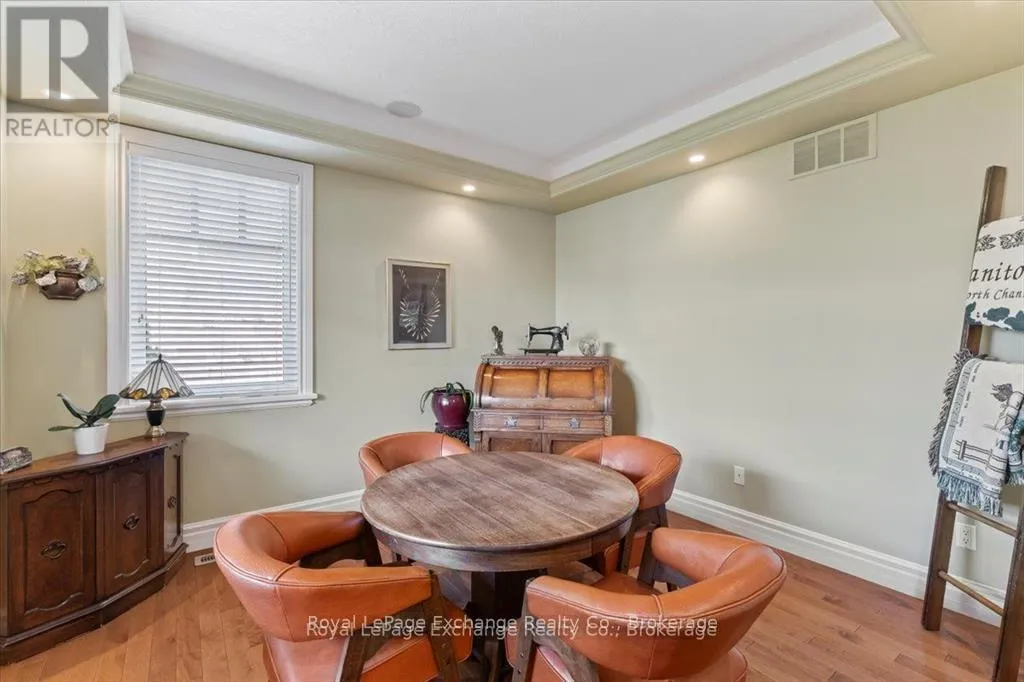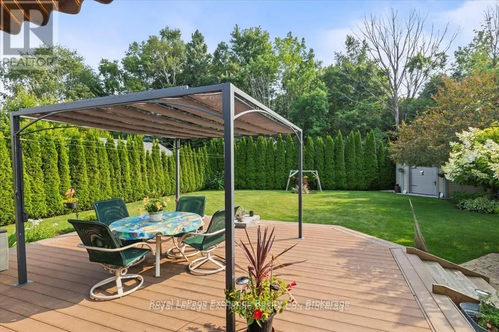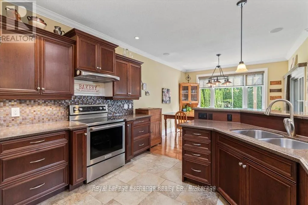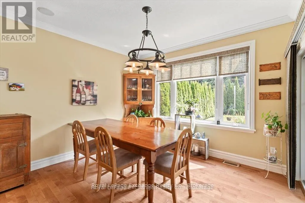 Cross Streets: Eastgate Drive. ** Directions: Off Highway 21. Beautifully updated and meticulously maintained bungalow built by respected local builder Derek Christie. Nestled in one of Southamptons most sought-after neighbourhoods, this home offers a functional layout with 4 bedrooms and 3 full bathrooms, making it ideal for families, retirees, or anyone looking to enjoy the relaxed, lakeside lifestyle. With a separate entrance from the garage and rough-ins for a kitchen and bathroom, there is excellent potential for a future in-law suite.The main floor features a bright and welcoming living space, a cozy breakfast nook or dining area, and direct access to a private backyard perfect for entertaining or unwinding. You'll also find 3 generous bedrooms, 2 full bathrooms, a designated laundry room, and tasteful details throughout, including crown moulding, ceiling accents, and quality flooring.The fully finished lower level extends your living space with a spacious family room, a full bathroom ensuite, and ample storage. Whether for guests, recreation, or future conversion, the lower level offers flexibility to suit your needs. Outside, enjoy a fully fenced backyard with mature trees, a large deck, and a spacious shed for added storage. Beyond the shed, a peaceful retreat awaits, offering views of the tranquil ravine this property backs onto. A rare and thoughtful feature: this home has been fragrance and chemical-free for the past five years, ideal for those with sensitivities or anyone seeking a cleaner, healthier living environment. Located just minutes from Lake Hurons sandy beaches, schools, trails, and the hospital, this move-in-ready home offers the perfect blend of comfort, convenience, and nature. Prefer a different paint palette? A professional quote of $4,500+HST is available for repainting the main living areas to suit your style. Other notable features; NG Generator for almost full house, irrigation system, landscape lighting, 3 solitude tubular skylights. (id:27476)