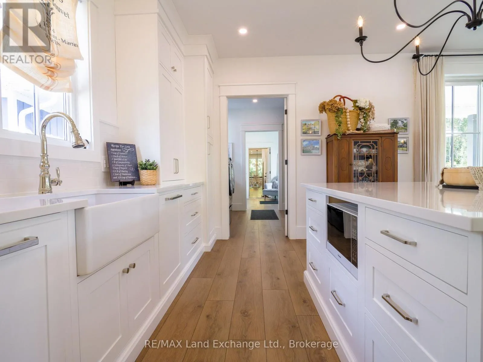 Cross Streets: Highway 21 and McNabb St. ** Directions: From Highway 21, East on McNabb St, South on Lakeforest Drive. Welcome to 15 Lakeforest Drive, a craftsman-style bungalow built in 2022 by Alair Homes, move-in ready and loaded with upgrades throughout. Thoughtfully designed with a self-contained legal one-bedroom apartment, this 2,498 sq. ft. home offers exceptional versatility ideal for families, income potential, or multigenerational living. Set on a 55' x 167' lot backing onto mature trees, the property offers both serenity and convenience, just a short walk to the shores of Lake Huron and the charming core of Southampton. The exterior features a concrete wrap-around porch, low-maintenance gardens, and an oversized single-car garage with a long driveway and parking pads accommodating up to seven vehicles. Inside, the main floor showcases stunning decor, an open-concept layout, and high-end finishes throughout. The fabulous kitchen features premium cabinetry, quality appliances, and a large island perfect for casual dining. The adjoining dining and living area includes a beautiful fireplace and walkout to a covered porch ideal for seasonal relaxation. The main level offers two spacious bedrooms, a stylish 4-piece guest bath, and a primary suite complete with a tiled shower and walk-in closet. A convenient laundry and mudroom includes a Murphy bed cabinet for overflow guests. The self-contained apartment mirrors the quality of the main home with a modern galley kitchen, open dining and living space, spacious bedroom, and in-suite laundry. Both living areas enjoy complete privacy with separate entrances, outdoor spaces, parking pads, furnaces, on-demand water heaters, air conditioners, and individual utility meters. A full crawl space runs beneath the entire home, and is over 5' high, providing ample utility access and storage. Located in the desirable Southampton Landing community among other fine homes, this property is truly a rare find. Explore the 3D tour and book your showing today to experience it in person. (id:27476)
