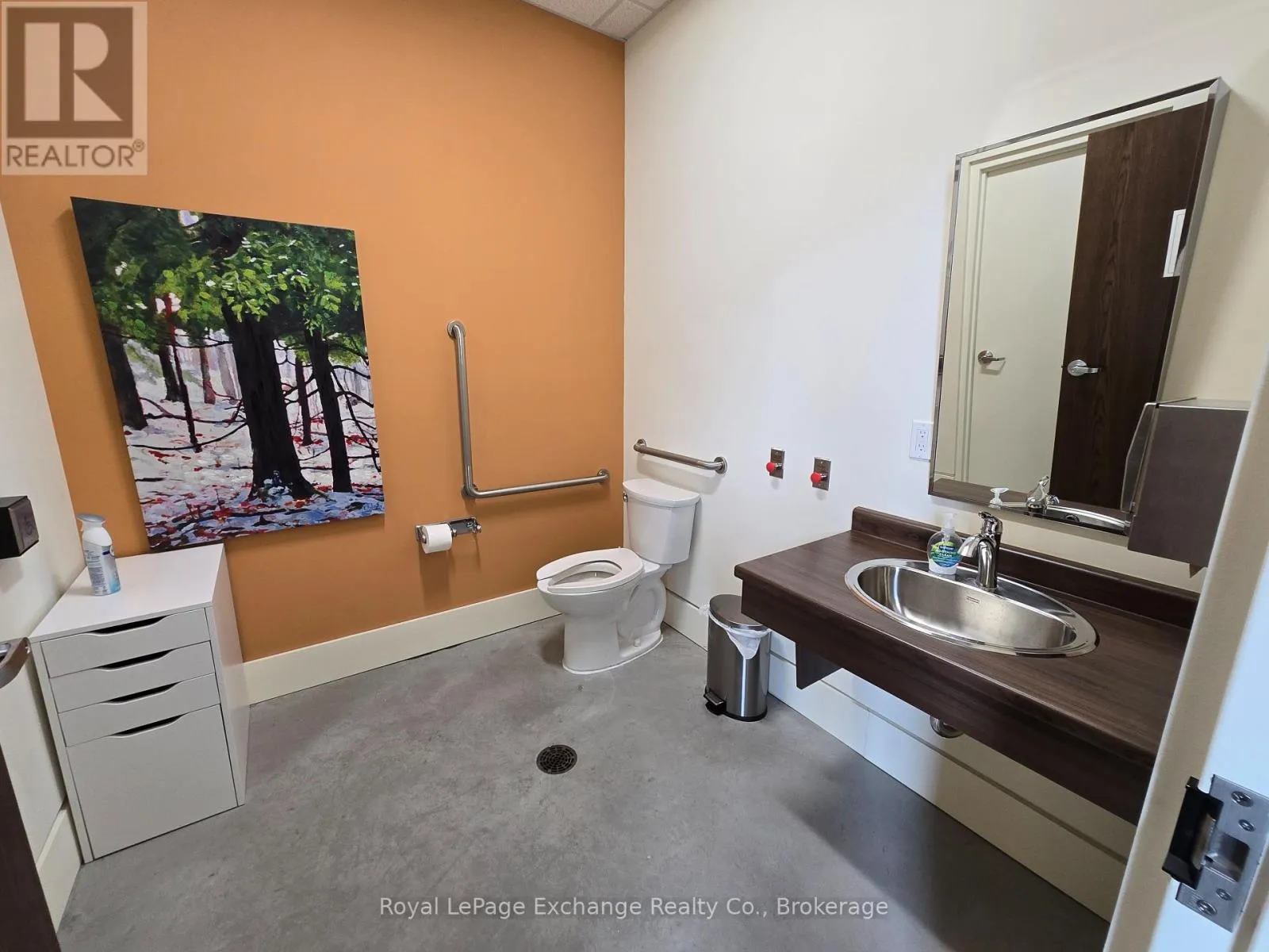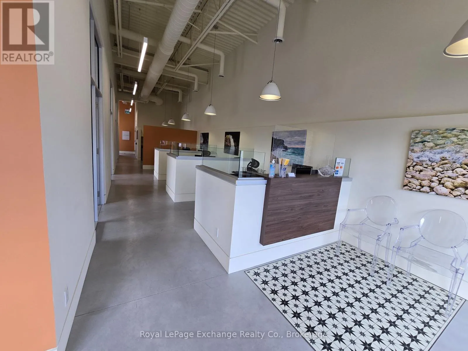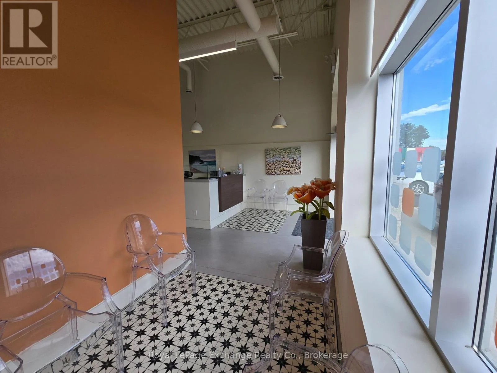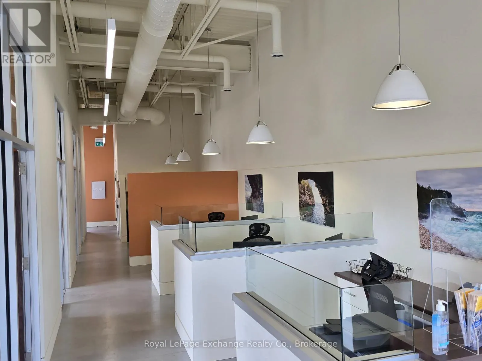 Cross Streets: Concession Rd 10. ** Directions: North End of Port Elgin next to 3 Sheets Brewing Co. Discover a stylish 1,600 sqft commercial space in the heart of Port Elgins business area perfectly configured for office or retail use. An END UNIT flooded with natural light through expansive windows, this turnkey unit features: Open concept floor plan including 4 rooms / offices / stations etc with high ceilings and polished concrete floors. Equipped kitchen area with modern cabinetry. Private washroom finished with contemporary fixtures. Wheelchair accessible entry and washroom for effortless compliance. Premium signage opportunities on a high-traffic thoroughfare. Positioned alongside established retailers and steps from the Municipal Building, community plex and the new Aquatic & Wellness Centre, your business will benefit from constant foot traffic and excellent visibility. Whether you're launching a boutique showroom, professional office, wellness studio or fast food chain, this space offers a sophisticated canvas ready for your brands signature touches. Schedule your private viewing today and see how this coveted Port Elgin address can elevate your enterprise. (id:27476)
