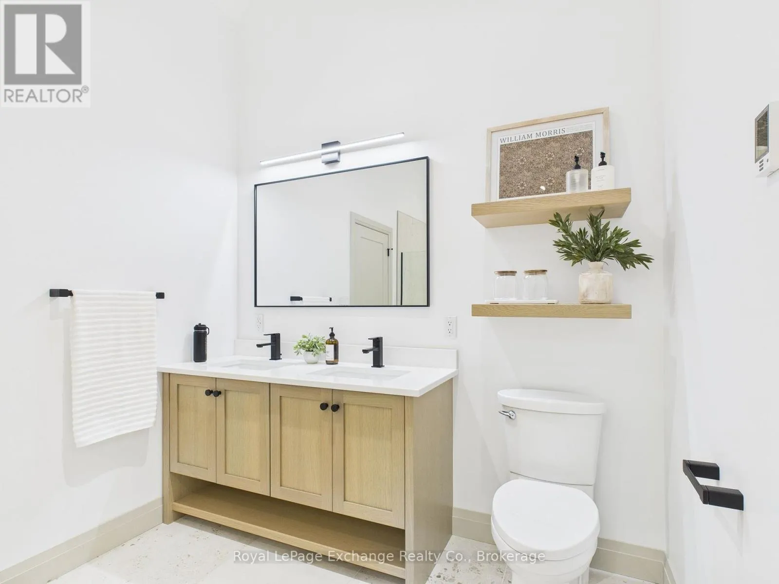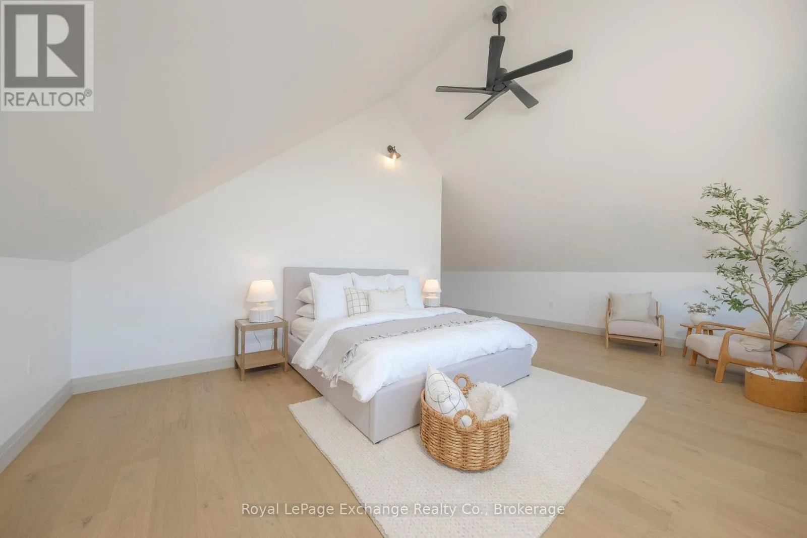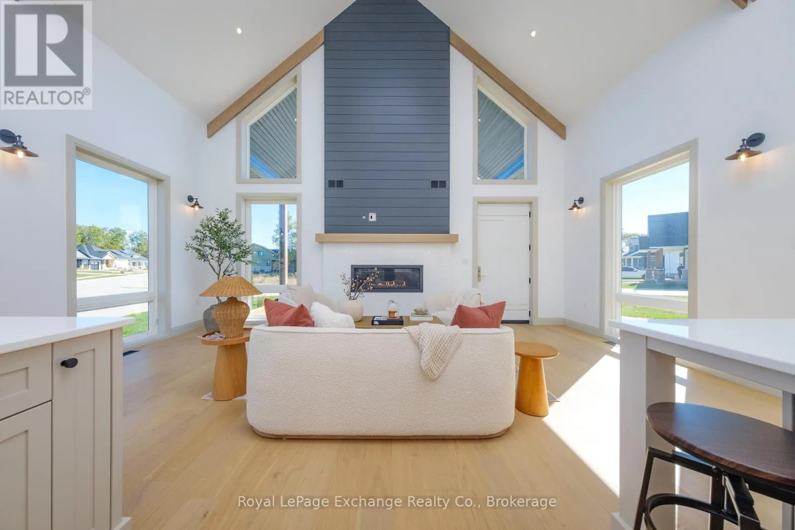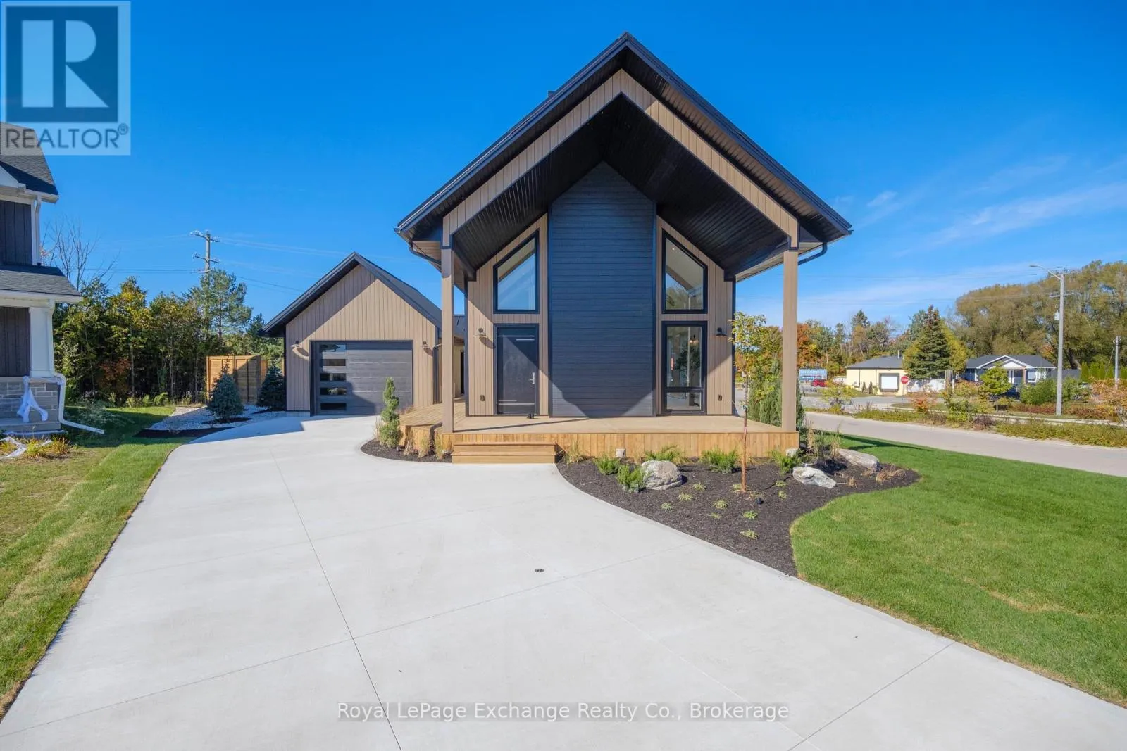 Cross Streets: McNabb St. ** Directions: 2 Marshall Pl, Southampton. A Modern Coastal Retreat at Southampton LandingThis striking, custom-built home blends coastal charm with contemporary design in one of Saugeen Shores' most desirable communities Southampton Landing. Step inside to soaring vaulted ceilings, oversized windows, and an open-concept main floor drenched in natural light. The designer kitchen is a showstopper! Featuring custom cabinetry, quartz countertops, pot filler, two large islands with seating, and seamless flow into the living area anchored by a sleek linear fireplace. The main floor offers two bedrooms that share a stylish full bath, a convenient powder room, main floor laundry, and a built-in mudroom with custom cabinetry leading to the garage and 4' crawl space for extra storage. The upper-level loft-style primary suite offers a true sanctuary with dramatic architectural windows, warm wood flooring, and a spa-inspired ensuite complete with a soaker tub, walk-in shower, and dual vanity. Every detail has been thoughtfully designed. Outdoors, the steel roof and steel siding provide long-term durability and low maintenance, allowing you to spend more time enjoying life near the lake. A detached garage with covered breezeway adds both style and function, while the manicured landscaping and concrete driveway complete the clean modern aesthetic. Located steps to trails, beaches, and everything Southampton has to offer. This home is a perfect mix of sophistication, comfort, and easy living. (id:27476)