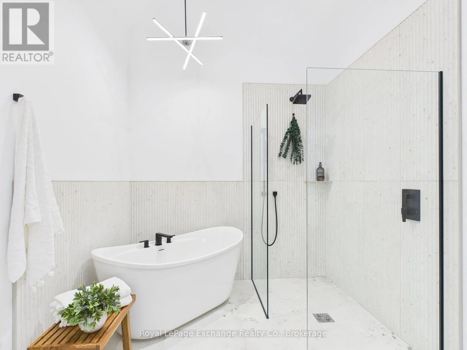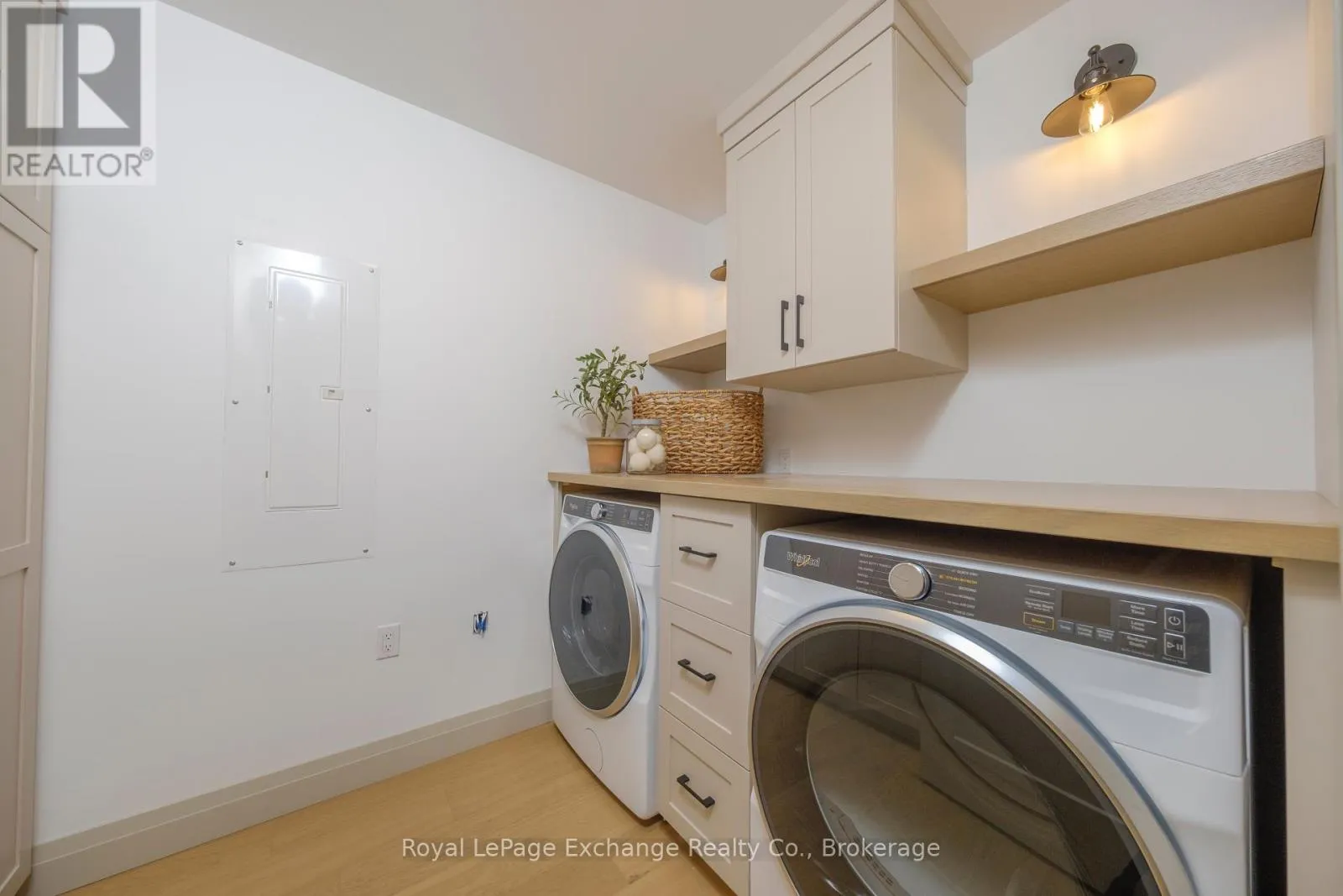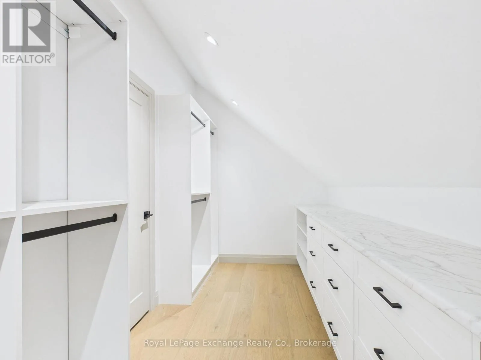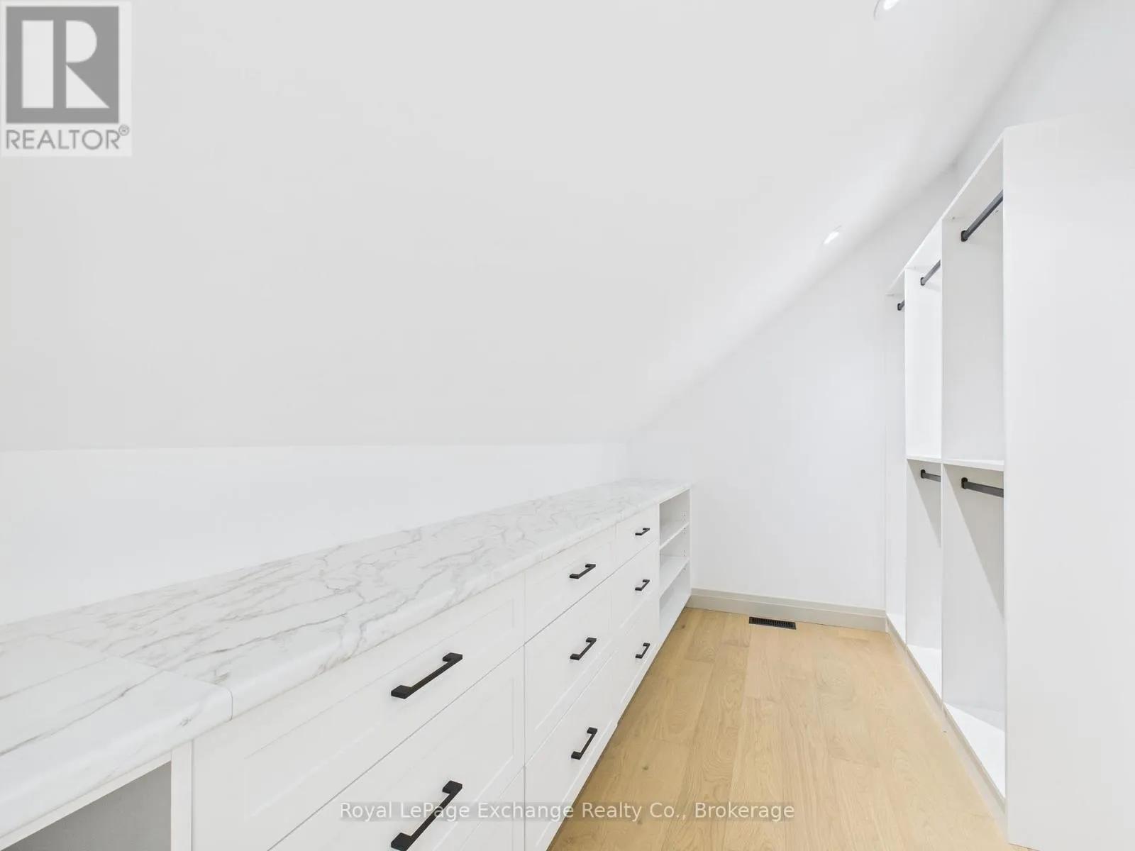 Cross Streets: McNabb St. ** Directions: 2 Marshall Pl, Southampton. A Modern Coastal Retreat at Southampton LandingThis striking, custom-built home blends coastal charm with contemporary design in one of Saugeen Shores' most desirable communities Southampton Landing. Step inside to soaring vaulted ceilings, oversized windows, and an open-concept main floor drenched in natural light. The designer kitchen is a showstopper! Featuring custom cabinetry, quartz countertops, pot filler, two large islands with seating, and seamless flow into the living area anchored by a sleek linear fireplace. The main floor offers two bedrooms that share a stylish full bath, a convenient powder room, main floor laundry, and a built-in mudroom with custom cabinetry leading to the garage and 4' crawl space for extra storage. The upper-level loft-style primary suite offers a true sanctuary with dramatic architectural windows, warm wood flooring, and a spa-inspired ensuite complete with a soaker tub, walk-in shower, and dual vanity. Every detail has been thoughtfully designed. Outdoors, the steel roof and steel siding provide long-term durability and low maintenance, allowing you to spend more time enjoying life near the lake. A detached garage with covered breezeway adds both style and function, while the manicured landscaping and concrete driveway complete the clean modern aesthetic. Located steps to trails, beaches, and everything Southampton has to offer. This home is a perfect mix of sophistication, comfort, and easy living. (id:27476)