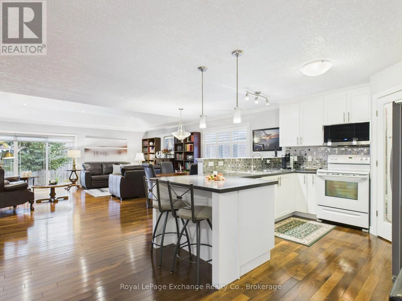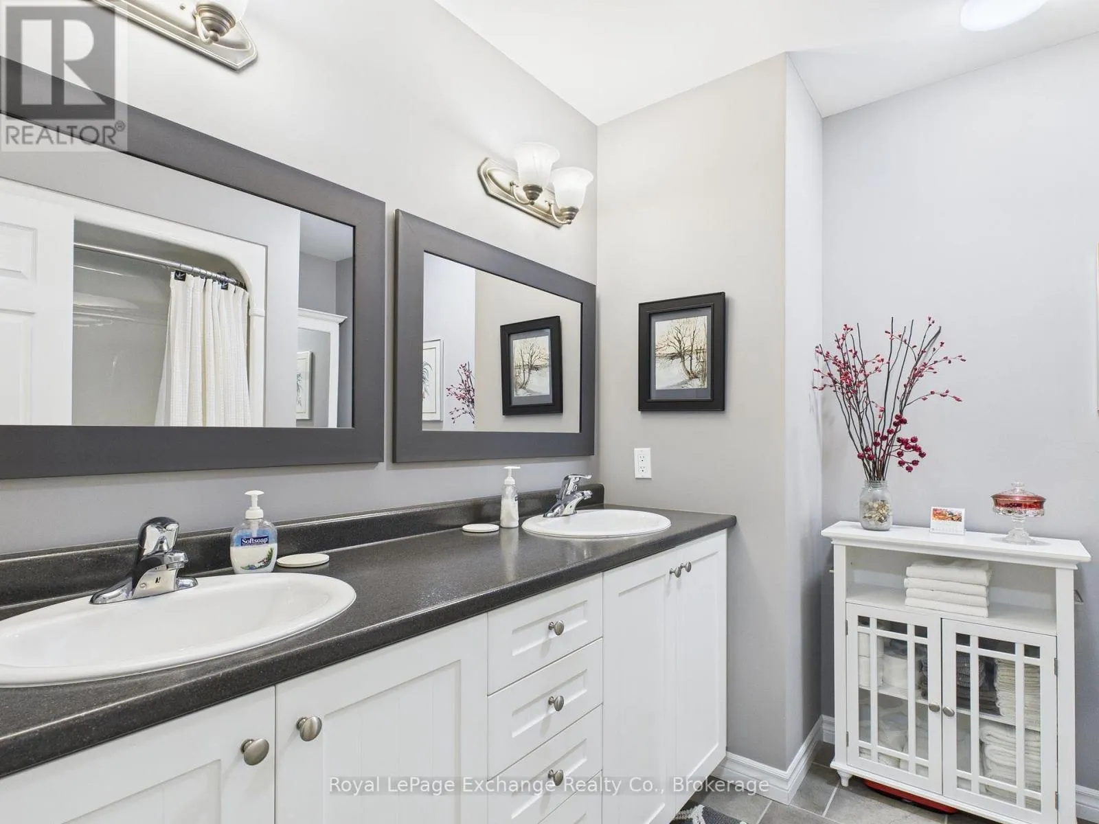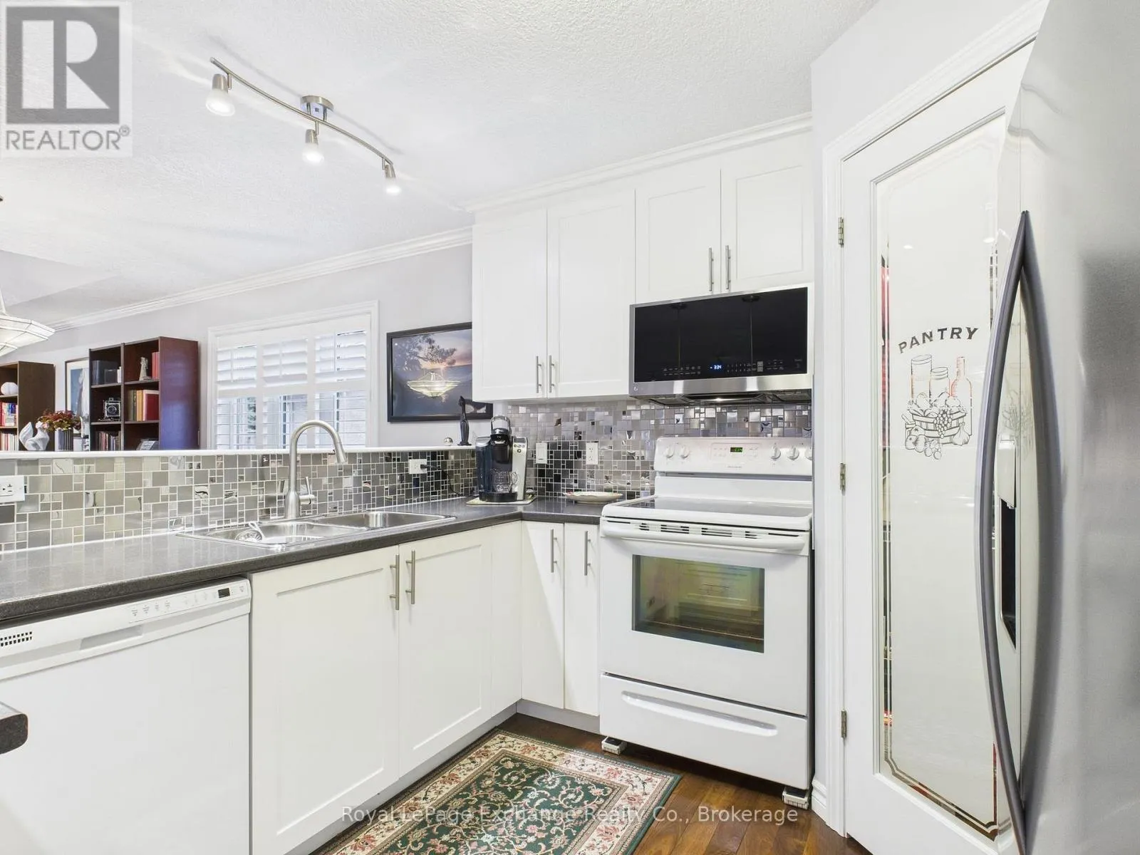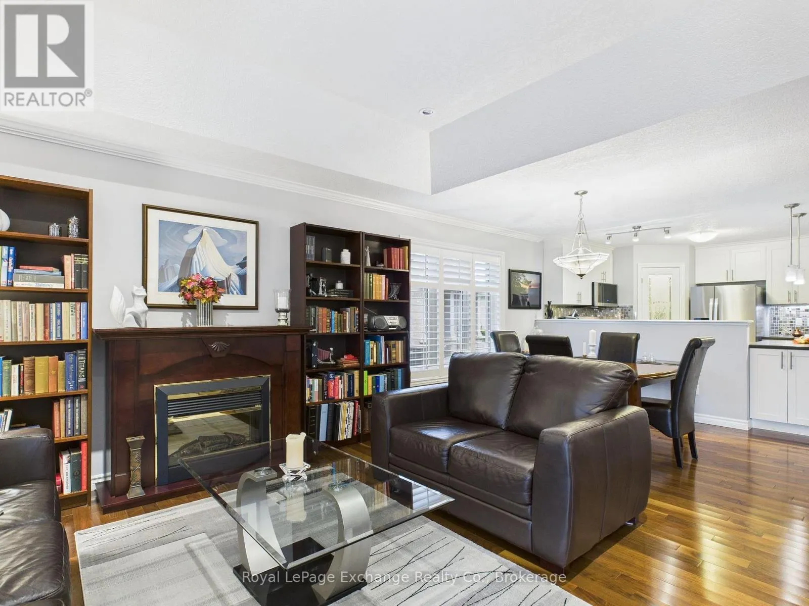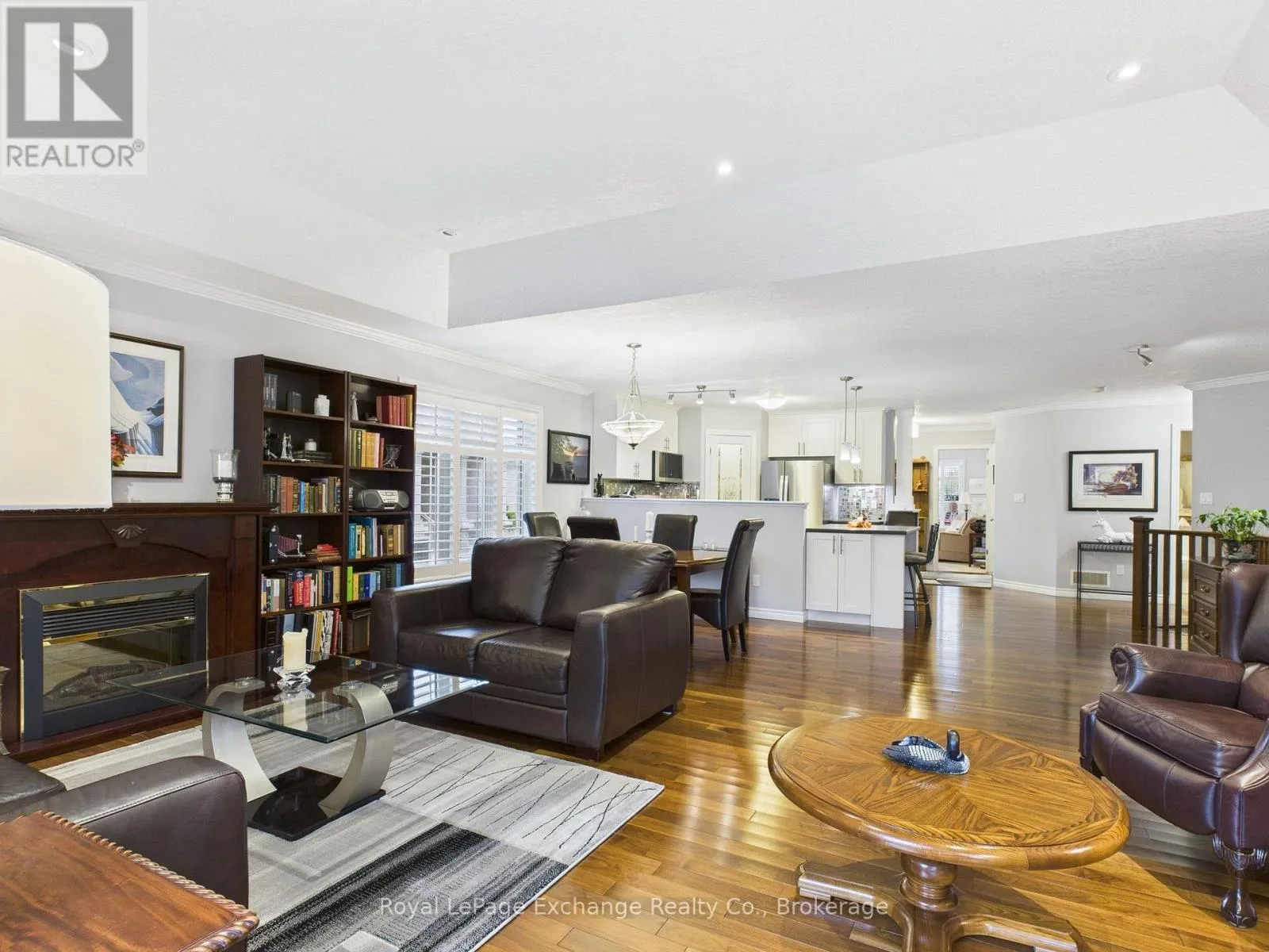 Cross Streets: Bruce. ** Directions: 395 Joseph St Port Elgin #8. Exceptional quality and open space living can be yours in this beautifully appointed 2 bedroom condominium with full basement. Designed for entertaining, this home features rich walnut flooring and open concept kitchen, living and dining room space. The galley kitchen overlooks the dining and living area and has a walk in pantry for all your cooking needs. Enjoy the living room with tray ceiling and relax on the beautifully landscaped private rear patio. The front bedroom is currently a tv/den room flooded with natural light from the south facing windows complete with California shutters. The spacious master bedroom has his and hers closets as you enter the lovely 5pc ensuite. The unfinished basement has had a large storage closet built and the rest can be designed to fit your needs. Complete with a double car garage and private double concrete driveway, this perfectly located home can by your oasis for care free living! (id:27476)