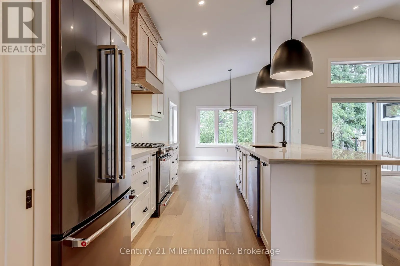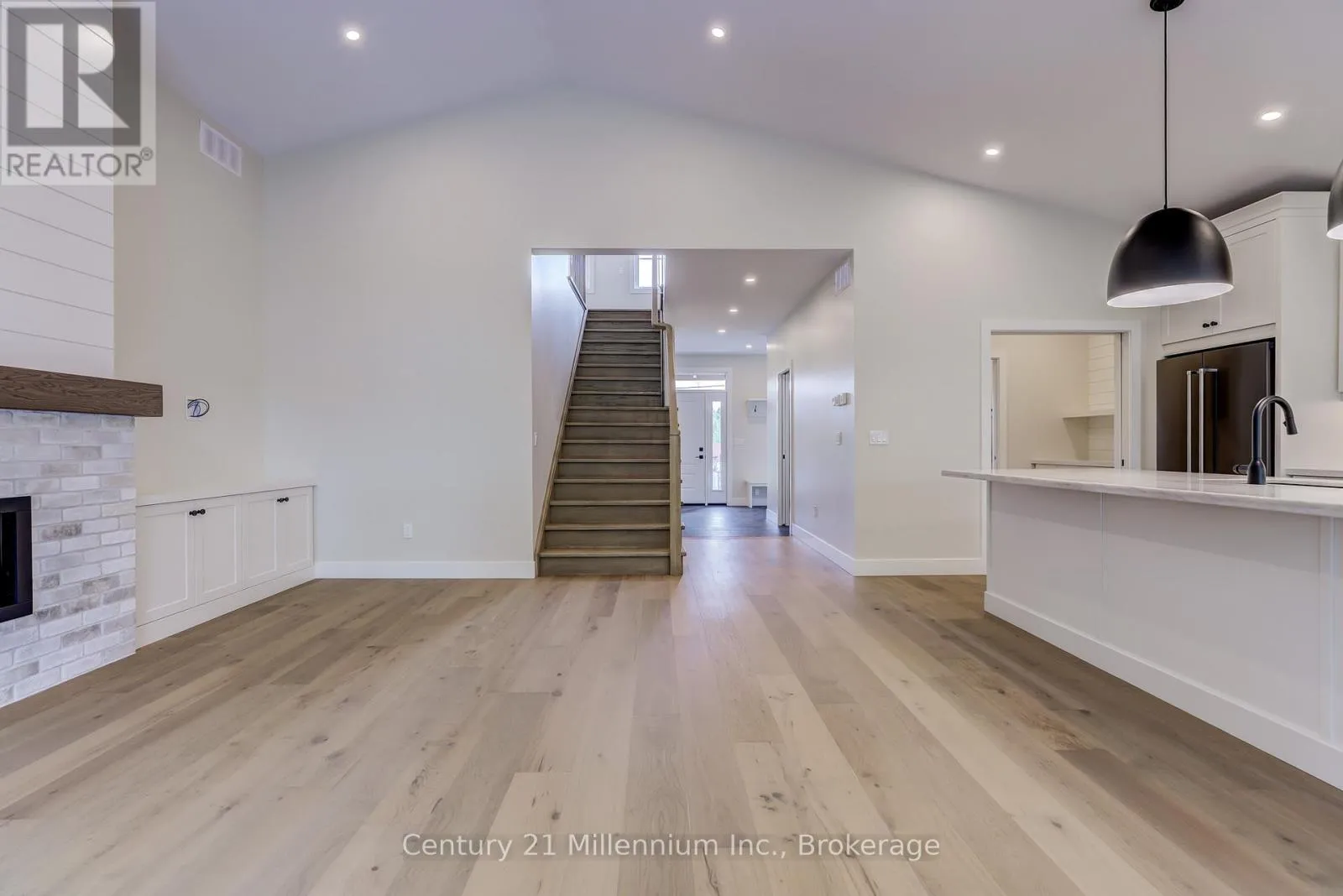 Grenville & High Now featuring LP SmartSide Siding & Trim on the exterior, paired with decorative shale stone! The open-concept living area boasts an island breakfast bar, natural gas fireplace, patio doors, and cathedral ceilings leading to a covered rear patio that backs onto a tree-lined forest. The generous open living and dining room overlooks the private, glass-paneled covered patio with cedar decking, perfect for al fresco dining. The dream kitchen includes an oversized island, solid-surface countertops, a designer range hood, and ample storage, making it an absolute delight. A separate laundry room and walk-in pantry, conveniently located between the foyer and kitchen, are discreetly tucked away to keep groceries and chores out of sight. Enjoy main-floor living with a spacious primary suite featuring a luxurious 5-piece ensuite with a glass shower, freestanding soaker tub, and custom walk-in closet. Oversized windows and patio doors food the home with natural light. The second-floor family room showcases a wall of west-facing windows. The second bedroom, complete with a walk-in closet, and the third, with a wall-to-wall closet, provide comfort and storage for children or extended family. A full 4-piece bath completes the upper level. Subtle earth tones tie this spectacular home together from engineered hardwood and a custom range hood to the accent island top, vertical shiplap, and modern hardware, light fixtures, and ceiling fans. The basement features oversized, above-grade windows that bathe the space in natural light. Designed to accommodate two additional bedrooms, a roughed-in bathroom, and a large recreation room, this level offers the potential for an extra 1,100 sq.ft. of living space. The builder will gladly finish it to suit your needs. Additional features include a concrete driveway, fully sodded lawn, and rough-in for a natural gas generator. Launch Custom Homes builds houses you'll be proud to call home. Upgrade options include Maibec wood siding. (id:27476)