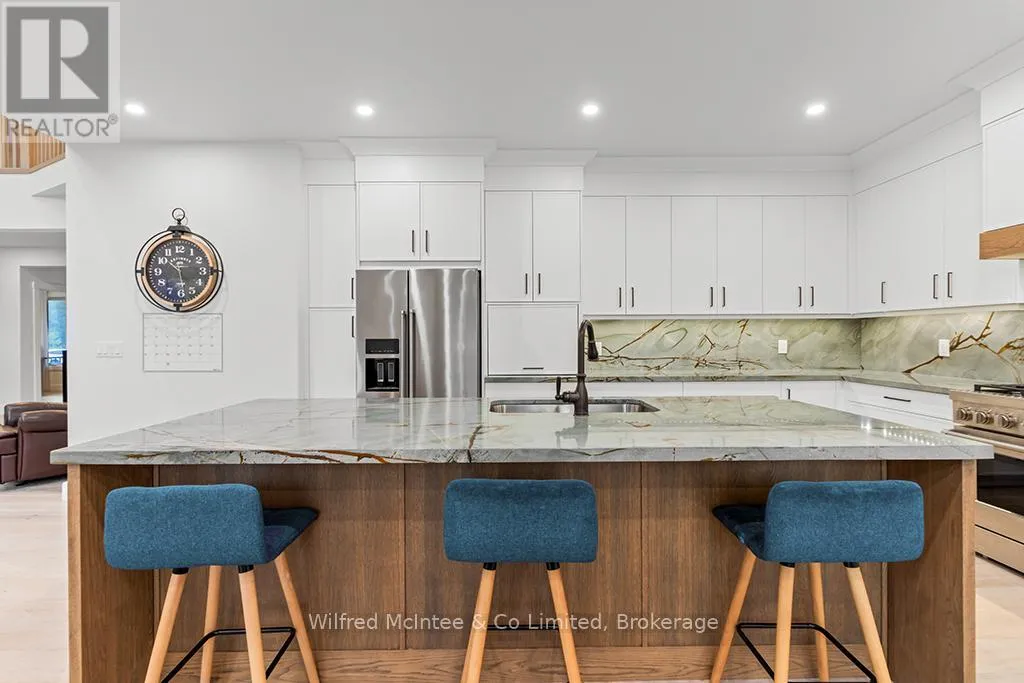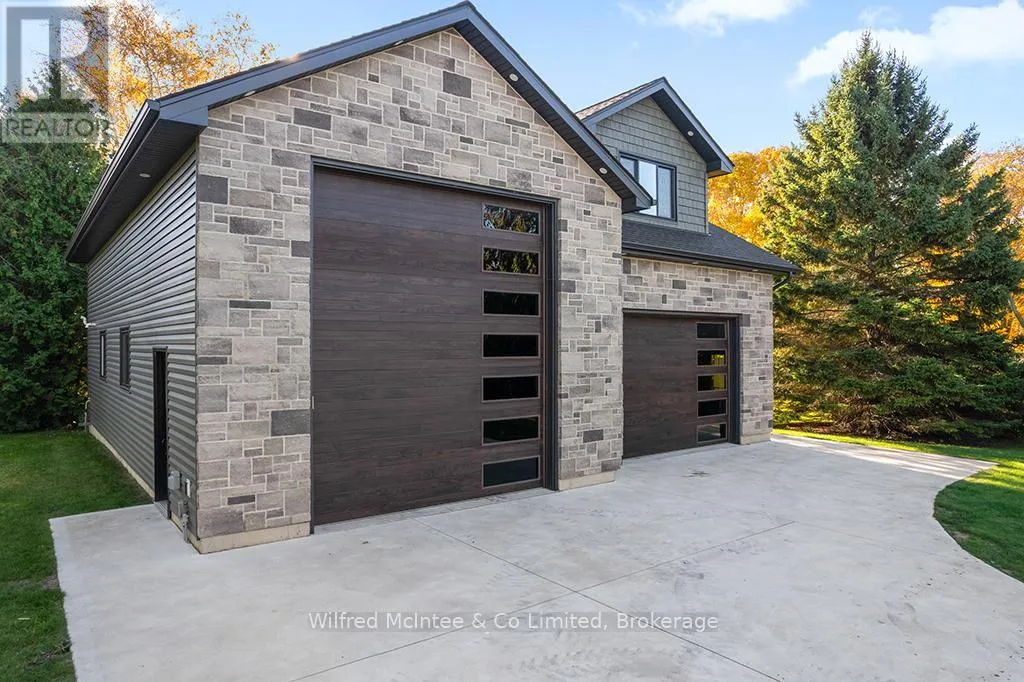 Cross Streets: Victoria St. S. & Palmerston St. ** Directions: From Hwy 21 go East on High St to Victoria St S, go South on Victoria St S to #72 on East side. Come discover this executive two-storey home at 72 Victoria St S in the heart of Southampton. Offering almost 4,300 sq ft of living space across three levels, this stunning residence features 4+1 bedrooms, 3.5 bathrooms, an attached two-car garage, and a hard-to-find (in town) 1600 sq ft detached workshop with a one-bedroom apartment above - all on a premium 73.5ft x 250ft lot just steps from downtown shopping and dining, Jubilee Park, the hospital, public school, arena, and Southampton's famous sandy beach. The all-stone exterior and tidy landscaping deliver exceptional curb appeal, complemented by a triple wide concrete driveway and laneway leading to the shop out back. Inside the home, you are greeted by a great room w/18ft ceiling and soaring stone fireplace that anchors the open-concept main floor with engineered hardwood throughout. The gourmet kitchen boasts white thin framed shaker cabinetry for a refined and elegant look, distinctive quartzite counters and backsplash, and a wood-tone island. A bright dining area opens to the rear deck, while a home office, powder room, and mudroom with storage closets and heated floors complete the level. Upstairs, the oak staircase leads to four spacious bedrooms, including a luxurious primary suite with coffered ceiling, spa-like ensuite w/dual vanities, soaker tub, expansive tiled shower w/rain shower head, tile accent wall and large walk-in closet. The fully finished basement adds a 5th bedroom, large rec space, family room w/gas fireplace, 3-piece bath w/laundry, and utility room w/forced-air furnace, air exchanger, and on-demand hot water heater. The insulated 1600 sq ft dream shop is perfect for the contractor/tradesperson or hobbyist and offers oversized doors (one that is perfect for the RV/boat), Trusscore walls for easy cleaning, and radiant in-floor heat. Above the shop is a stylish one-bedroom apartment-ideal for guests, family, or income potential. Enjoy luxury, space, and lifestyle-all in one perfect package! (id:27476)