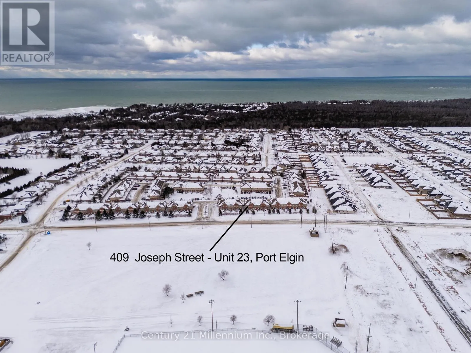 Cross Streets: Bruce & Joseph. ** Directions: From Bruce St. to visitor parking. Unit is to the right. Welcome to Number 23 at 409 Joseph St.-a bright, well-kept 2-storey townhouse condominium offering 3 bedrooms, 3 baths, and three compelling reasons to make it yours. First, it's freshly painted in neutral tones with updated carpet, making it truly move-in ready. Second, it's vacant, allowing for immediate or flexible possession. Third, the home faces west and backs east toward Bruce St., offering peaceful views of the open greenspace across the road. The open kitchen provides ample room for a future island-ideal for meal prep, entertaining, or casual dining. The living room offers versatile space for relaxing or hosting, with views of the rear patio and the expansive greenspace of Northport School, the Biener ball diamonds, and the Saugeen Shores Cricket Ground. A 2-piece powder room, front foyer and closet complete the main level. Tile flooring spans the entry and kitchen, with updated carpet in the living room and on the stairs. Upstairs, the spacious primary suite features a walk-in closet and 4-piece ensuite. Two additional bedrooms and a full bath complete the upper level. The unspoiled basement includes laundry, rough-in for a future full bath, and plenty of open space-perfect for a family room, home theatre, gym, and storage. Low condo fees cover lawn care, gardens, and exterior maintenance. The built-in single-car garage provides ample storage, plus you have an exclusive parking space out front. Garbage and recycling areas, along with visitor parking, are conveniently close to the unit. Located in a family-friendly neighbourhood near schools, shopping, and just minutes from the sparkling shores of Lake Huron, this home offers comfort, convenience, and excellent value. (id:27476)