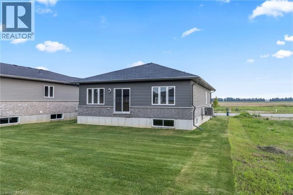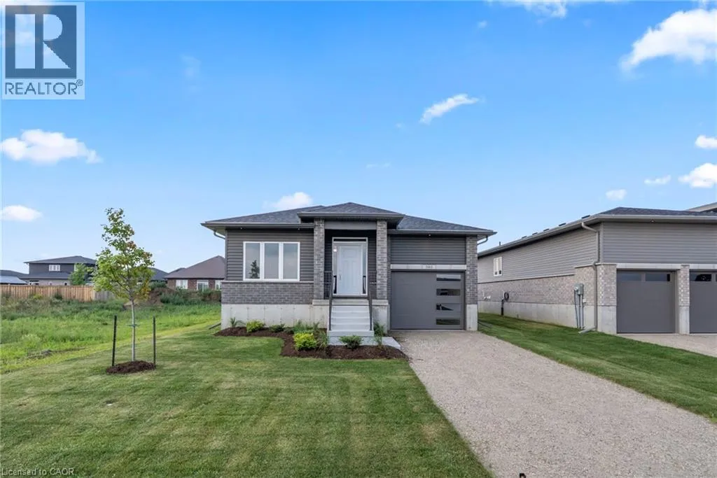 From Highway 21 South, turn onto Devonshire Road. At the roundabout, take the first exit onto Waterloo Street North. Turn left onto Mary Rose Avenue, then right onto Bruce Street, and finally turn left onto Hawthorne Street Be the first to live in this brand-new Dawn model bungalow by Walker Home Ltd, located in Summerside, one of Port Elgin's most desirable neighbourhoods. Offering 1,279 sq. ft. This move-in ready home has been designed for both comfort and flexibility. The main floor showcases an open-concept kitchen, dining, and living area with Canadian-made cabinetry and a peninsula island, ideal for casual meals or entertaining. Hardwood and tile flooring run through the main living spaces, while the bedrooms are carpeted for added comfort. Each of the three bedrooms features a spacious walk-in style closet, and the main bathroom includes a practical split configuration for privacy and convenience. Additional highlights include a 1.5 car garage, a large 1200 sqft of unfinished basement, and a generously sized backyard on a 47 x 124 ft lot. The brick and siding exterior enhances the homes curb appeal. Ideally situated just minutes from Port Elgin's Main Beach on Lake Huron known for its sandy shoreline and world-class sunsets as well as scenic trails, schools, shopping, recreation, and Highway 21. (id:27476)