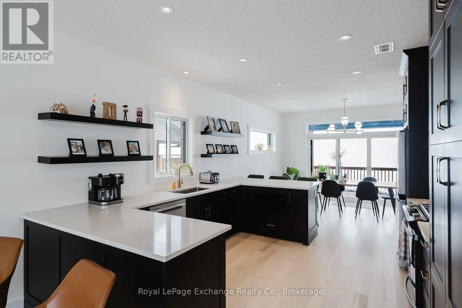 Cross Streets: Ridge St & Amandas Way. ** Directions: Hwy #21, Ivings Dr to Ridge St (R) to 394 on West side. Step into style and comfort in this newly built 2020, 4-bedroom, 3-bath raised bungalow in sought-after Port Elgin, offering approximately 2800 sqft of thoughtfully designed total living space. From the moment you walk in, the open-concept layout, modern fixtures, and quality finishes set the tone. The main living area features sleek hardwood flooring that flows seamlessly through the principal spaces, creating an inviting atmosphere for both everyday living and entertaining. The abundant working kitchen with gas stove, including breakfast bar and dining area with walk out to covered deck blend perfectly with the living room & gas fireplace, ideal for gathering with family and friends. Modern lighting and finishes add to the home's stylish appeal, while the raised bungalow design offers excellent functionality and flexibility. With four generous bedrooms and three well-appointed bathrooms, there's ample space for family, guests, or a home office. The primary suite offers a comfortable retreat with its own ensuite, tiled shower with extra jets, walk in closet with organizers all showcasing the home's modern design and attention to detail. The Lower level massive Great room with four huge windows and separate entrance allows for many uses, spacious gatherings or the potential to complete a secondary unit? Outside, the wide lot provides great curb appeal and extra outdoor space, while the huge garage offers plenty of room for vehicles, toys, storage, or a workshop. This property is perfectly positioned to enjoy the Port Elgin lifestyle-just minutes to beach access, scenic trails, and the marina, with all amenities, shops, and conveniences close by. Stylish, modern, and move-in ready, this attractive raised bungalow combines contemporary living with an unbeatable location on Ontario's beautiful Lake Huron shoreline. (id:27476)