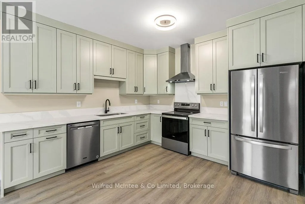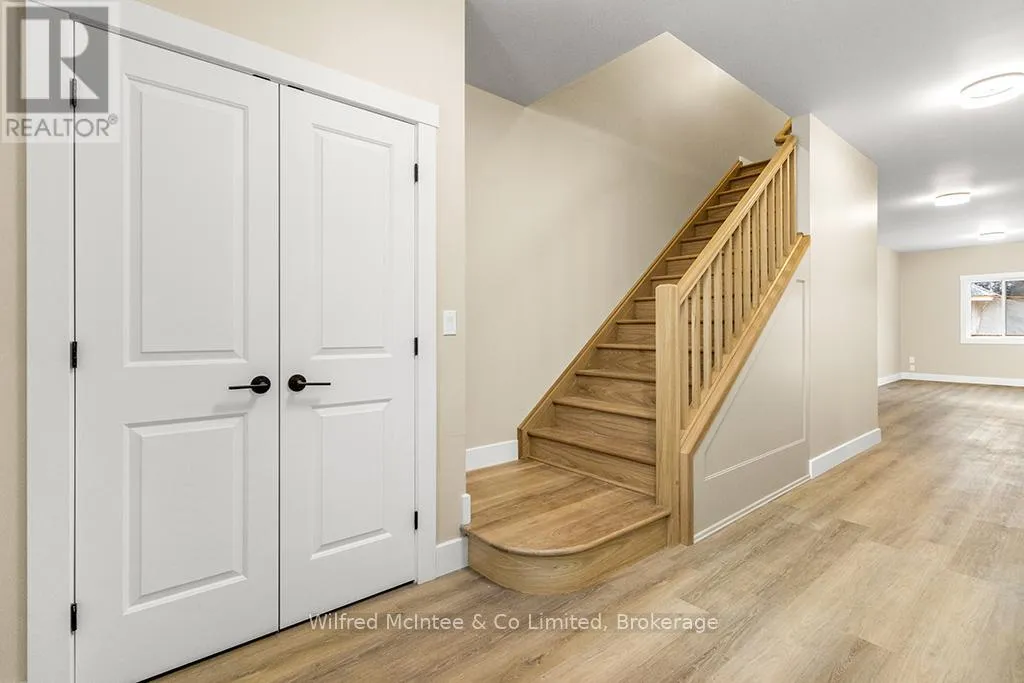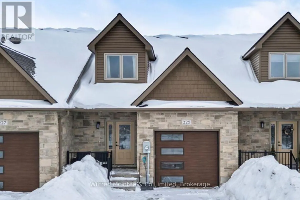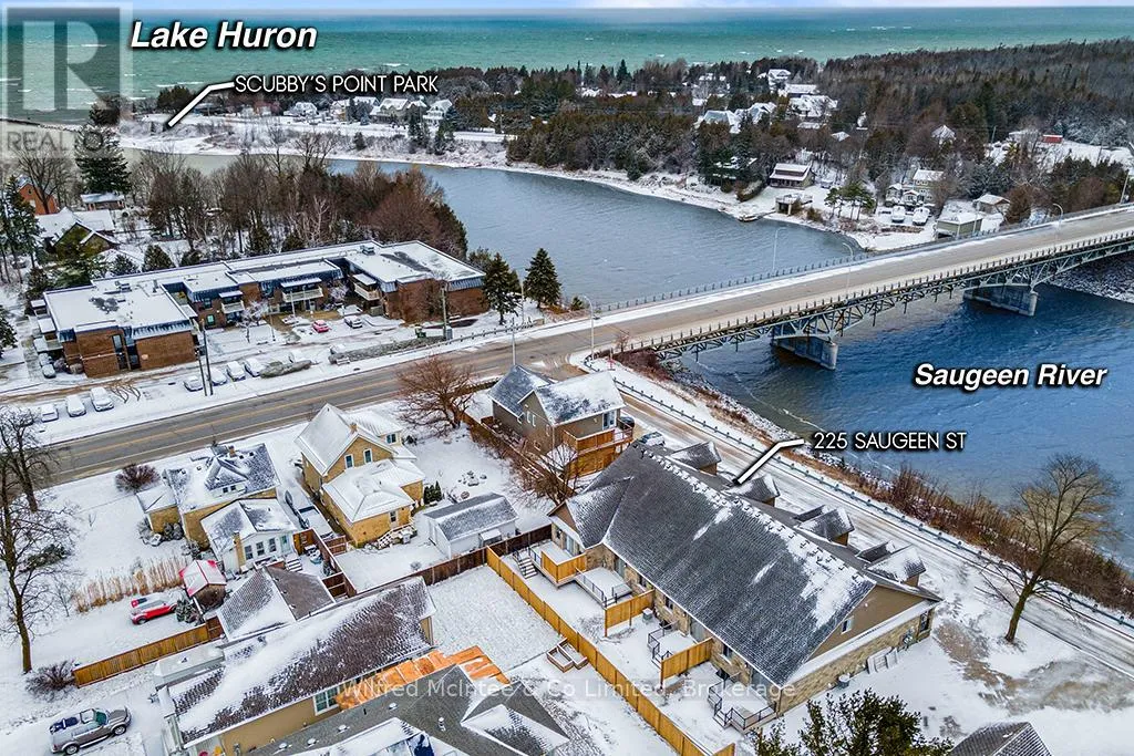 Cross Streets: Hwy 21 & Saugeen St. ** Directions: From High Street, go North on Hwy 21, then right onto Saugeen Street (One way street), just before the bridge. Go to #225. Come see this Southampton riverside townhome, situated along the Saugeen River, just a short stroll to downtown shopping, dining, and Lake Hurons world class sunsets. Spanning over 2,000 sq ft of finished living space (including the full finished basement), you'll love the tasteful finishes throughout, including quality cabinetry, quartz counters, vinyl plank flooring, tiled bath/shower surrounds, LED lighting, and more. The main level offers an open-concept living/dining area with access to your south facing deck, an bright eat-in kitchen with quality ceiling height cabinetry plus included appliances, a spacious main-floor living room and 2-piece bathroom. Upstairs, an office/sitting nook leads to the primary bedroom suite with river vistas through the dormer window, a 4-piece ensuite bath, and a huge walk-in closet. The full finished basement offers the perfect space for family or friends with a second bedroom, 4-piece bathroom, stacked laundry, and good-size family room. Noteworthy features include; efficient natural gas furnace, central air conditioning, concrete driveway, single attached garage, and low maintenance stone exterior. Built just a few years ago, this turn-key townhome is in a must see in a prime location. Waterfront travelled road between. Some photos are virtually staged. Also available for sale is nieghbouring townhome 227 Saugeen St, same quality finishes throughout, but different layout, see MLS #X12766706. (id:27476)