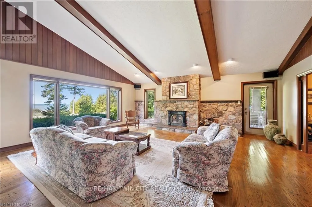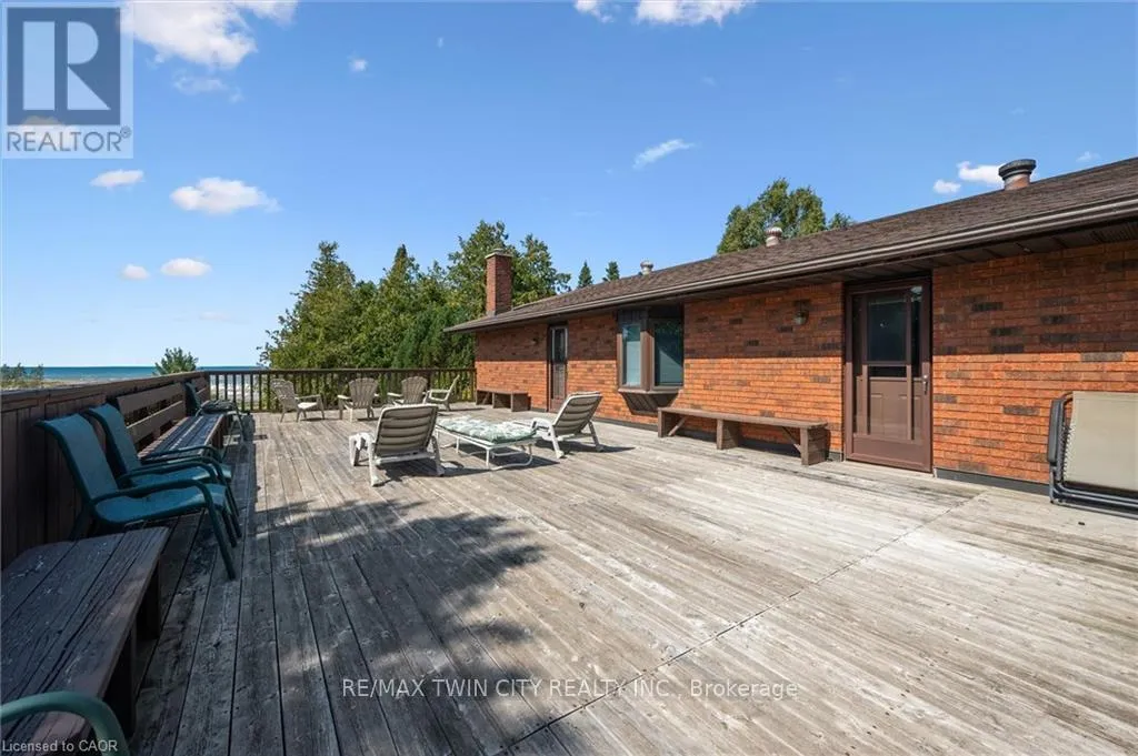 Cross Streets: Concession Road 10. ** Directions: County Road 10 off Highway 21. Welcome to 74 Miramichi Bay Saugeen Shores! Magnificent large side split home sits directly on Miramichi Bay. Panoramic views of Lake Huron on multiple sides. Ample windows bringing in the sunshine. This home was built for entertaining, featuring 5 bedrooms. Wonderful for family and friends. This home has multiple eating areas and outdoor spaces. Approximately 1/3 of acre is beautifully landscaped with mature trees and perennials, interlock driveway, ample parking, concrete walkways, steps and retaining walls.Two storey entry, open to a vaulted Great room accented with a wall to wall stone wood burning fireplace and insert. Accented with custom wood beams , solid oak floors and other mill work. Large picturesque window with breathtaking views, over looking Lake Huron. The formal dining room is open to kitchen and Great room for easy family gatherings for all seasons. The full eat in area allows for dining of 6 and exists directly onto. large covered porch with panoramic lake views. This area has always been the heart of the home! The second level features 3 bedrooms and a large bathroom. One of the bedrooms features a "bunky" for sleepovers. the cozy lower level with wood stove and 2 guest bedrooms on ground level, above grade, one with ensuite bath. There is a huge deck that spans the entire garage area with most magnificent views of the lake, where you can take in the renowned magical sunset views! This home was built to exacting standards, and is heavily insulated to survive the harshest weather to ensure you can enjoy living here year round. There are many trails to hike in the woods directly behind the home as well as the lake trail that runs along the shoreline in front of the home. Port Elgin and Southhampton, shopping, marina and community centres, nearby. Wonderful year around living! (id:27476)