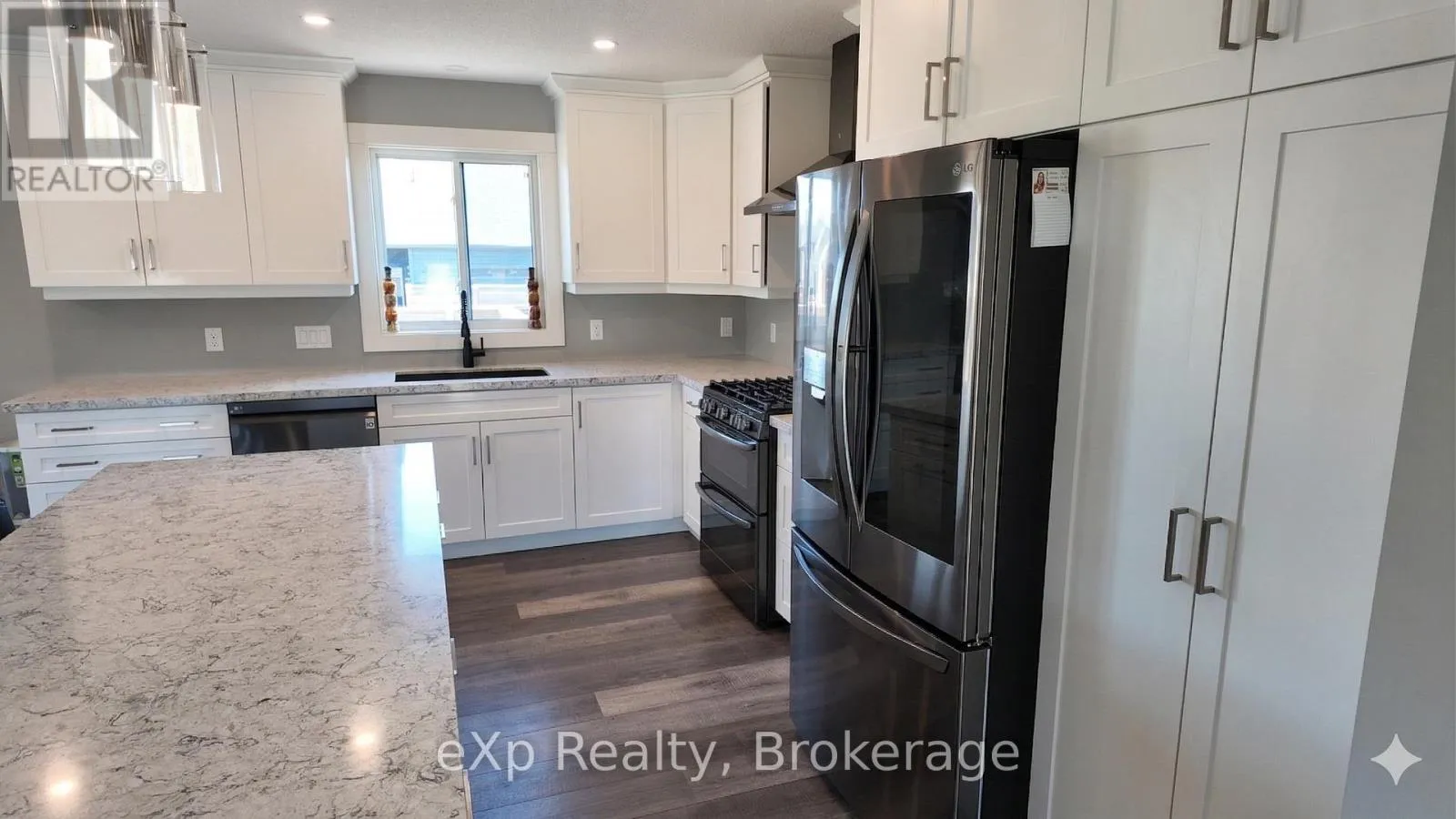 Cross Streets: Peirson Ave. ** Directions: Provincial St, to Bruce St, to Buckby Lane. Welcome to 417 Buckby Lane - a beautifully designed raised bungalow located in one of the area's most desirable neighbourhoods.Situated on a premium corner lot, this modern home offers exceptional versatility and space, making it ideal for families, multi-generational living, or those seeking a potential granny suite setup.Featuring 4 spacious bedrooms and 3 full bathrooms, the layout is thoughtfully designed with both comfort and functionality in mind. The open-concept main level is bright and inviting, perfect for everyday living and entertaining, with contemporary finishes that give the home a clean, modern feel.The lower level adds incredible value with a walk-out basement, offering seamless access to the outdoors and excellent potential for dual living or a private in-law suite. This space includes a generous living area with a cozy family room and fireplace, creating the perfect place to relax and unwind.Outside, the corner lot provides added privacy and curb appeal, while the double car garage and ample driveway space offer plenty of room for vehicles and storage.This is a rare opportunity to own a stylish, move-in-ready home in a sought-after location-perfect for growing families or those looking for flexible living options.Don't miss your chance to call 417 Buckby Lane home. (id:27476)