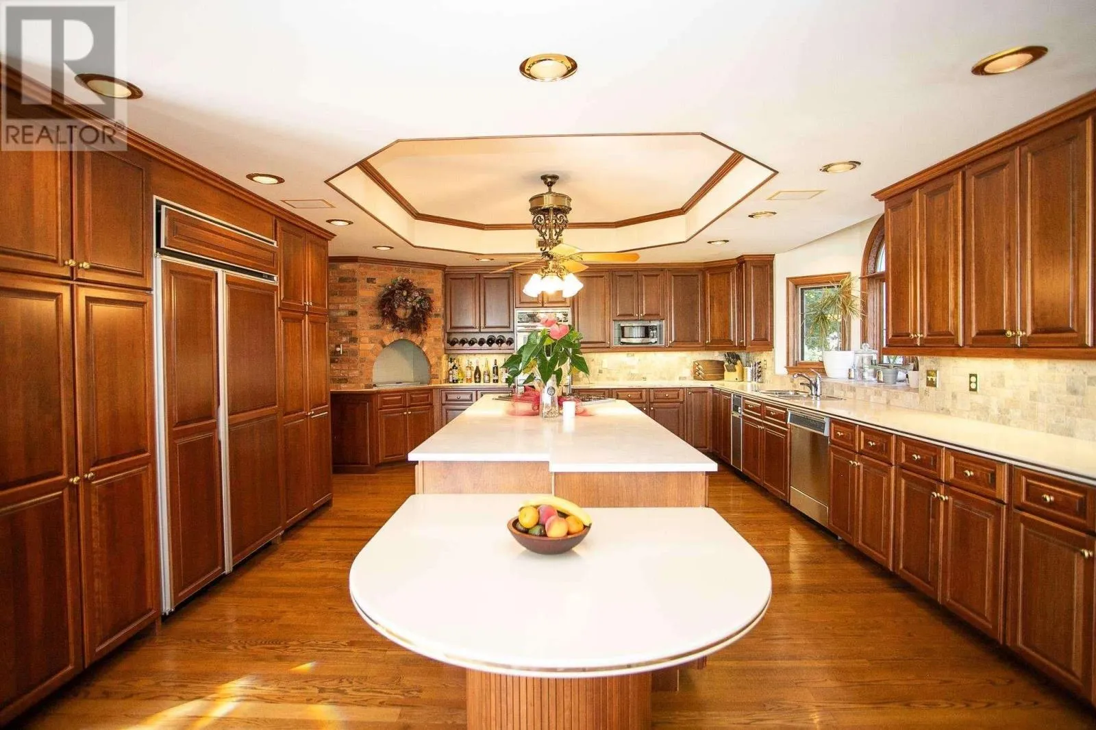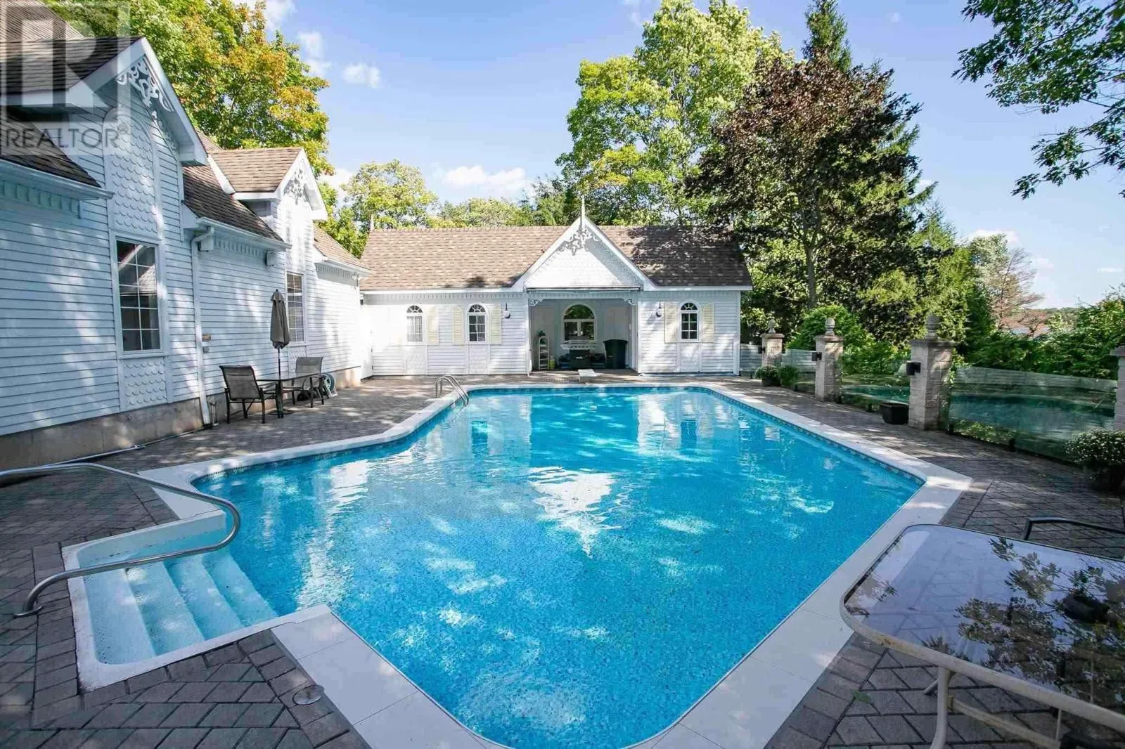 Executive waterfront home in a prime location with 300 feet of waterfront on the St. Maryâs River in the centre of the city. The exterior is professionally landscaped, featuring a circular stamped concrete driveway, a detached six-car garage, and a beautiful inground pool with a convenient pool house. Built in 1992, this custom home boasts 9,181 square feet plus a full basement with a walk-out to the waterfront. The property includes six bedrooms and seven bathrooms, a spacious kitchen with a huge island, built-in appliances, indoor BBQ, large eat-in area, and a butler kitchen. Additional features include main floor laundry, a butler kitchen with a walk-in fridge, a double staircase to the second floor, and an office overlooking the water. There are several rooms for a rec room, family room, games room, and gym. Other amenities include a security system, air conditioning, sauna, and central vac. Don't miss out on this once-in-a-lifetime opportunityâbook your viewing today! (id:27476)