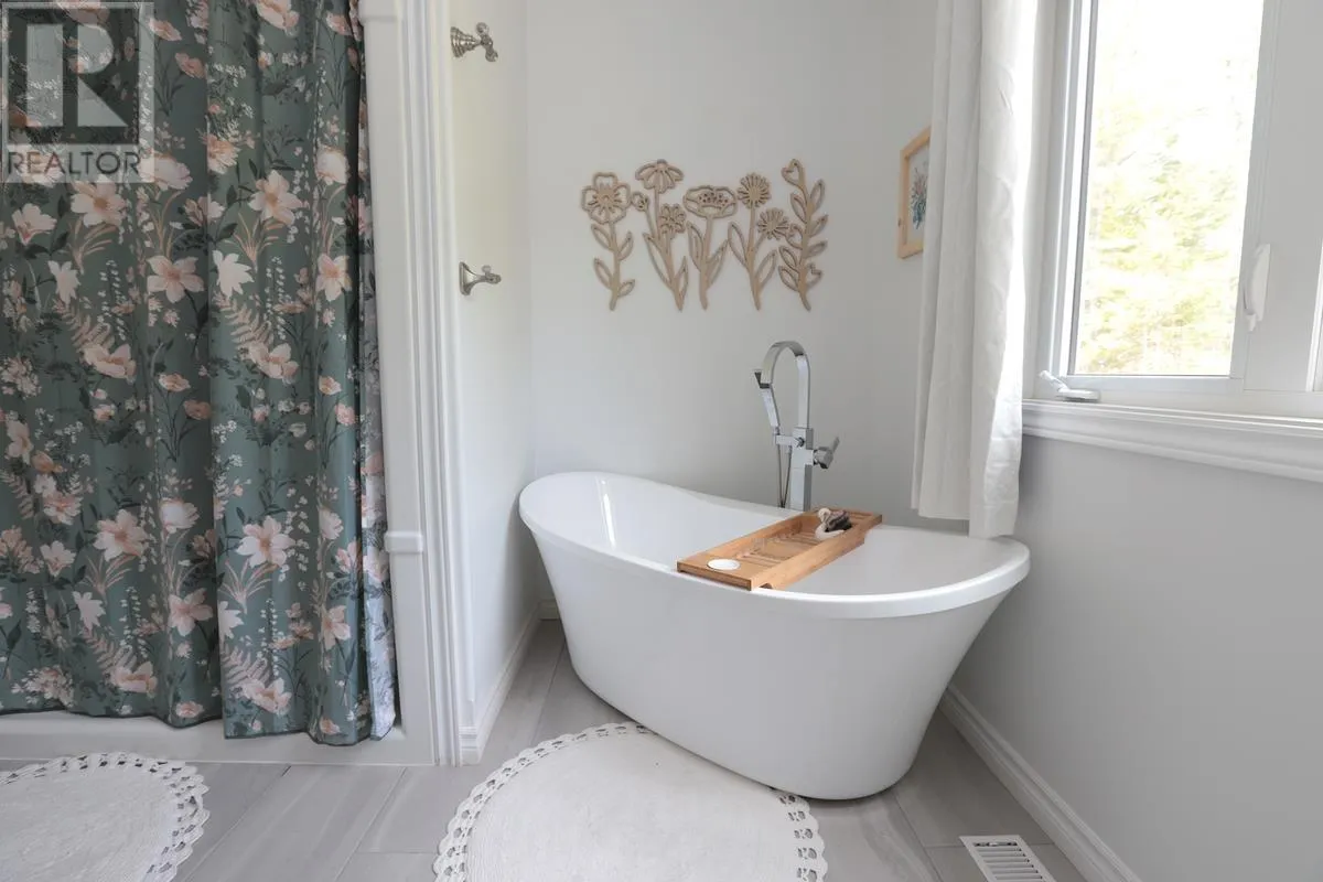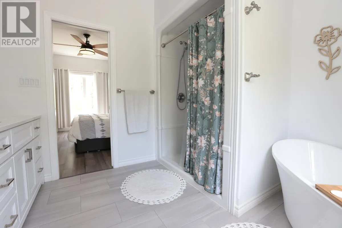 Modern bungalow just 10 minutes from town, features open-concept living, quartz kitchen, hardwood floors, spacious bedrooms, luxurious en-suite, and fully finished basement with separate entrance and office space. Enjoy beautifully landscaped gardens, a 12x16 covered deck, and your own private, separately deeded waterfront lotâperfect for summer fun or peaceful retreats. A rare and versatile opportunityâdonât miss out, book your viewing today! (id:27476)