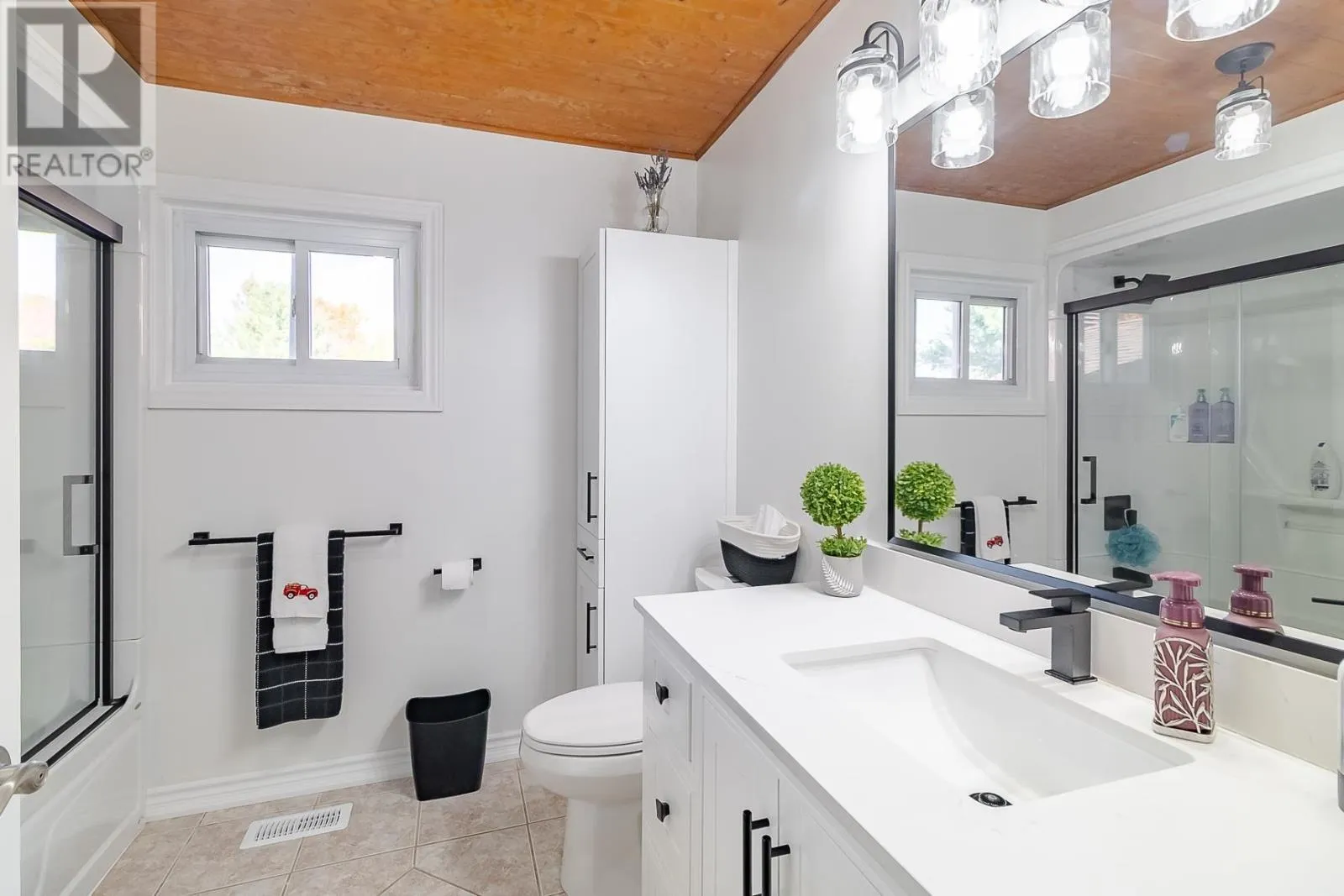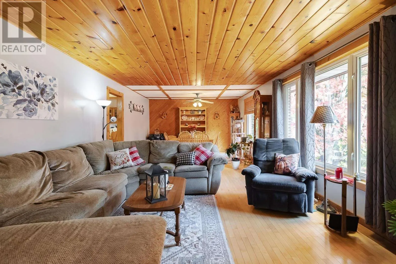 Right off Second Line West or Left off Base Line Breathe in that fresh country air! Spacious 4-level sidesplit, only minutes from the Sault. Kitchen with natural gas range, ample cabinetry, and updated countertops, eat in area has built in dinette for extra storage. Great room with a view spanning the back of the house overlooking the private backyard, this living/dining area is ideal for large family gatherings. Main level has laundry and family room with gas fireplace and patio doors leading to the backyard patio. Second floor has newly renovated 4pce main bath (2025), FOUR bedrooms including a massive primary suite with walk-in closet and renovated modern 3pce ensuite bath (2025). Basement level provides excellent storage space and potential for finishing. Updates include a forced-air natural gas furnace (2018), central air (2018), hot water tank (2018), roof (2017), drilled well (2011), and mostly vinyl windows throughout. Private backyard with firepit, attached double garage, plus detached 24' x 30' garage, and additional 14' x 22' shed. A wonderful family home in a peaceful country setting! (id:27476)