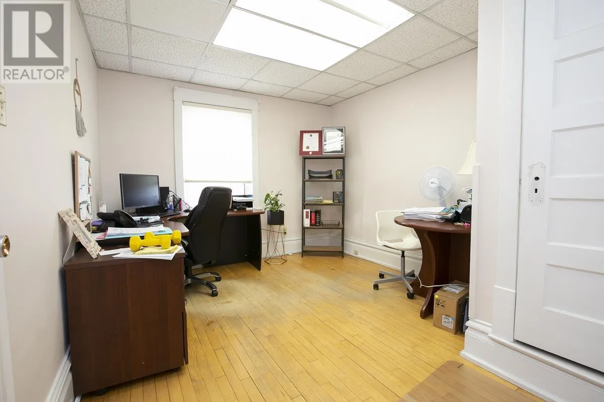 Looking for office space in the downtown core? This very well maintained building has been beautifully updated while still maintaining some of it's original charm and character. Updates include vinyl siding, shingles, front door, gas furnace, vinyl flooring, freshly painted, front reception desk by Maxco and granite counter top, light fixtures and in-ground sprinkler system. Main floor offers a beautiful reception area with waiting room, board room, copier room, back porch and beautiful front porch; 2nd floor offers three offices, kitchenette and 2pc washroom; 3rd floor offers two more offices or storage space. CT2 zoning ideal for small law or accounting firms, or general office use. Four paved rear parking spots. Don't miss out on this beautiful office building, call today for a viewing! (id:27476)