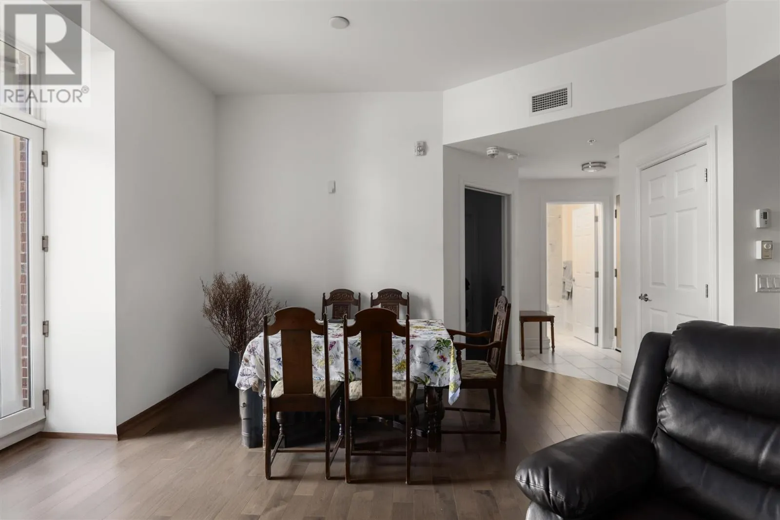 Corner two bedroom deluxe suite at this desirable mid-town location, close to everything! Space enhancing high ceilings, quality hard surface floors throughout, two full baths (including ensuite), in-suite laundry, large balcony and quartz countertops in kitchen and baths. Building features two elevators, personal style gym with sauna and steam room. Quality Suite in a quality building! (id:27476)