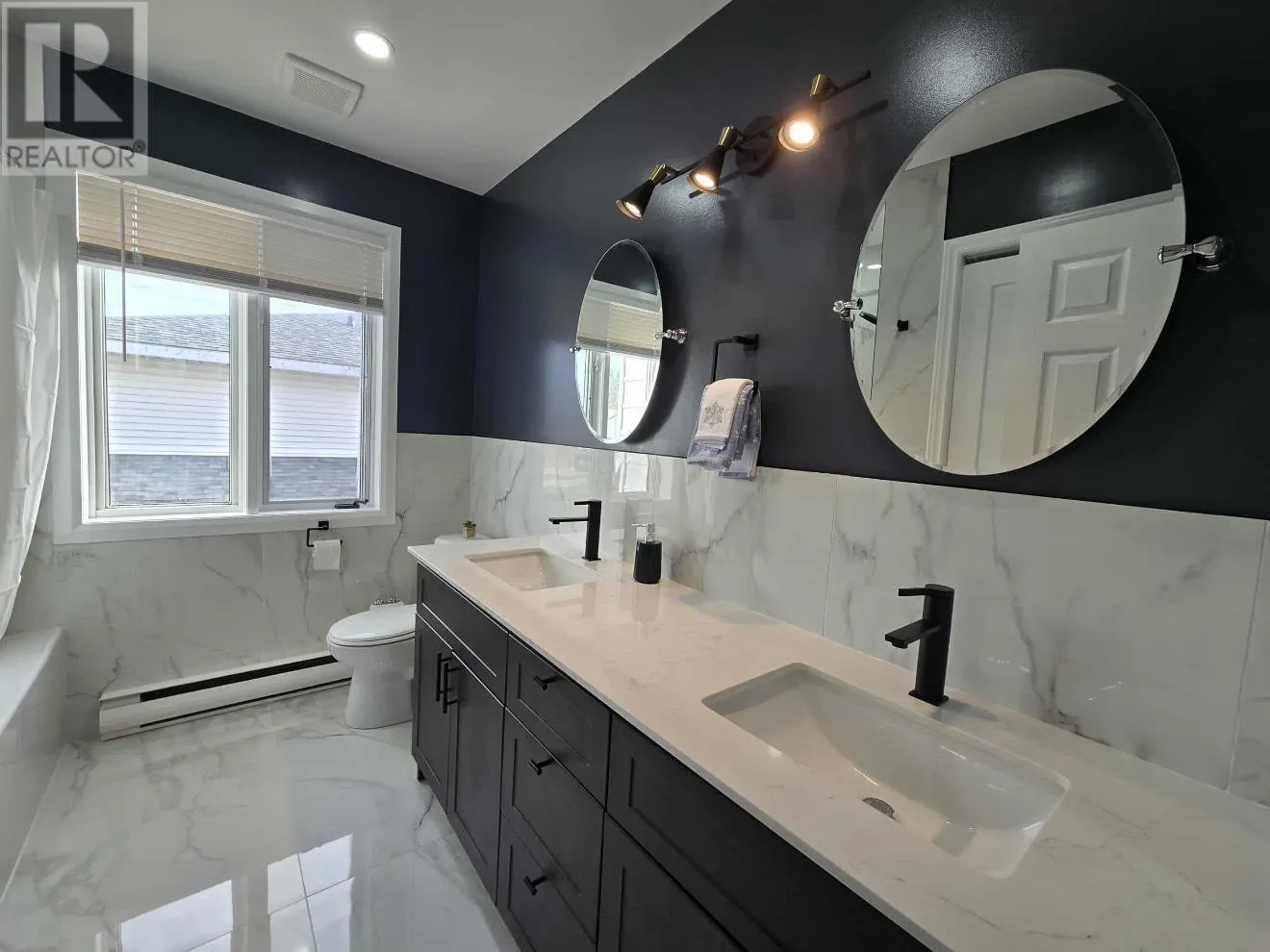 Welcome to 50 Caddy Avenue - situated on a large corner lot in one of the cityâs most sought-after east-end neighbourhoods. This fully renovated 5-bedroom, 4-bathroom home with attached 2 car garage has been completely renovated from top to bottom and is ready for its next owner. Step inside to a spacious, traditional layout featuring a bright open-concept kitchen, dining, and living area complete with gas fireplace - perfect for family life and entertaining. A separate formal dining room, inviting family room, and a convenient powder room complete the main level. Upstairs offers 4 generous bedrooms, including a primary suite with its own 3-piece bath. The large main bathroom features double sinks for added convenience. The finished lower level includes a 5th bedroom, a spacious rec/games room, 3-piece bathroom, laundry, and a 2nd kitchen â making it an ideal in-law suite or extended-family space. Recent updates completed this year include 4 fully renovated bathrooms, all new flooring throughout, pot lighting, shingles, outdoor lighting, fresh paint and more! With its west-facing exposure, this home is filled with natural light and a bright, airy feel. Heating and cooling are efficiently managed through ductless heat/AC pumps and wall furnace in the basement - baseboard heating can be used as a backup option. Located close to the university, golf course, elementary and secondary schools, fitness facilities, and a convenient shopping plaza â this one truly has it all. (id:27476)