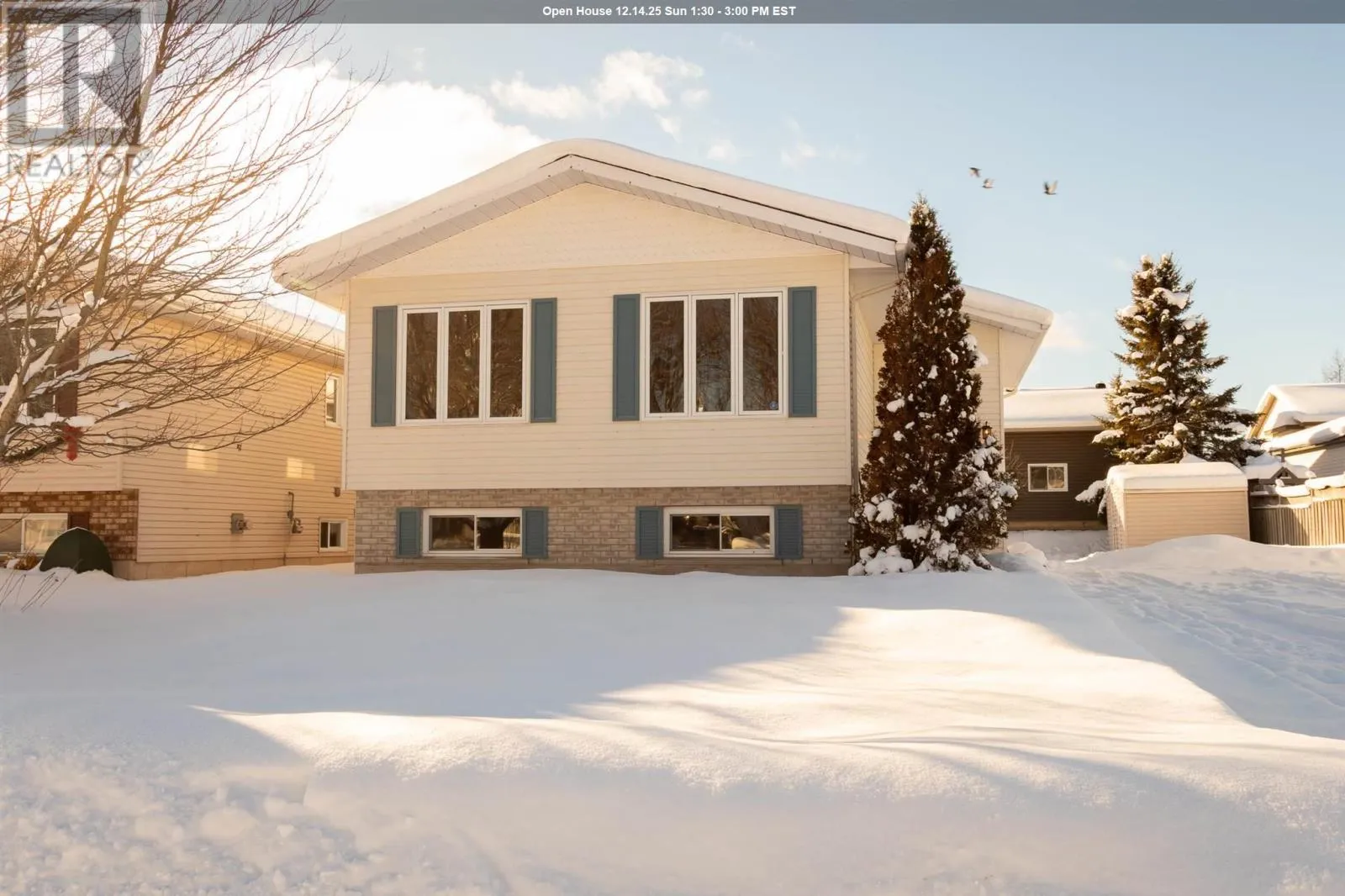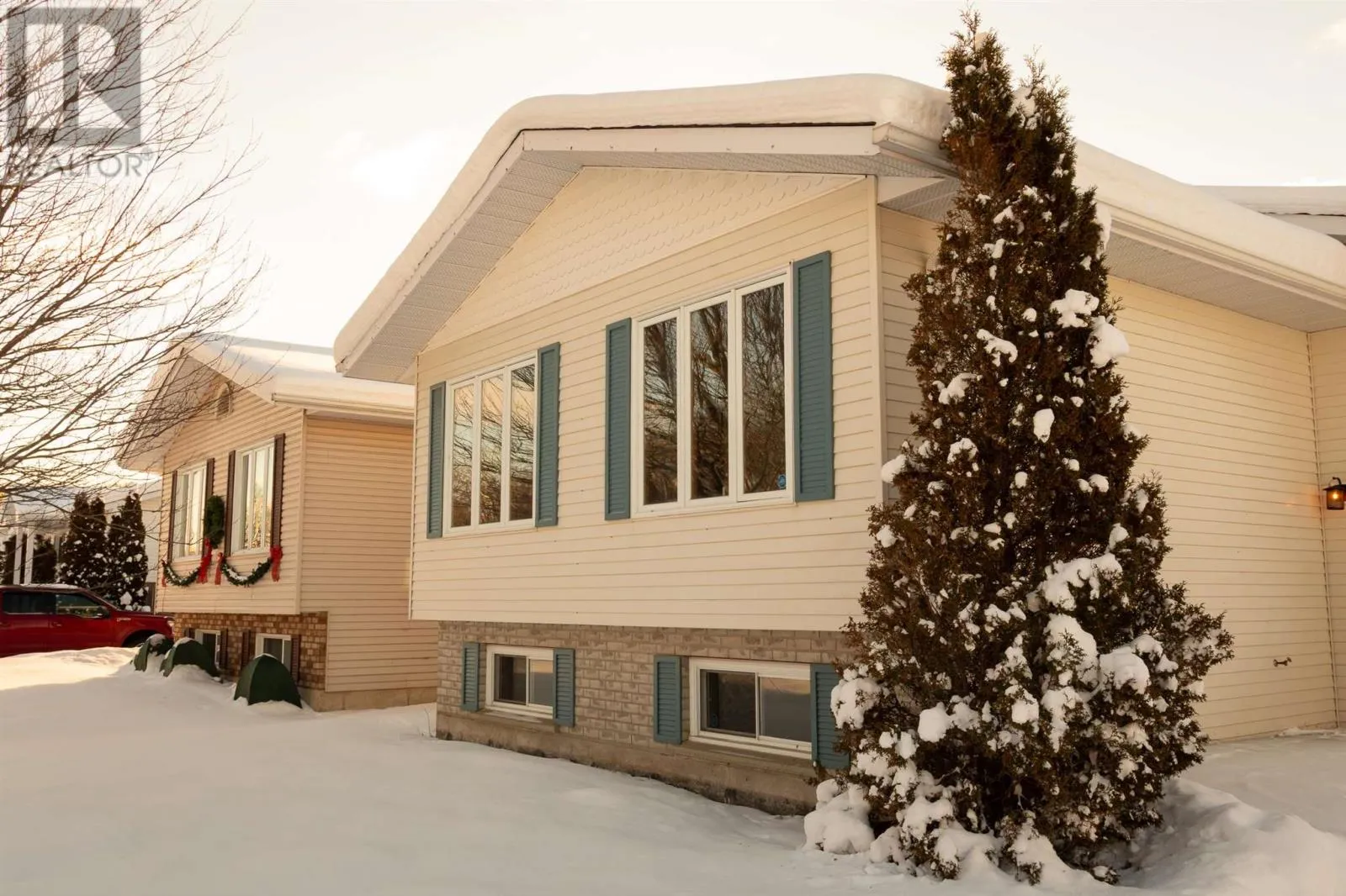 This quiet East End location offers a great family neighbourhood close to schools and snowmobile trails. Not only is this home available immediately, it is fresh and ready to move in! This high-rise bungalow features 3 bedrooms + 1 bathroom upstairs and a large, bright rec room with a warm inviting fireplace. Second bathroom and 4th bedroom on the lower level. Gas forced air heat and central air keep you comfortable year round. With a double-wide driveway, there is no need to shuffle cars and plenty of room for a future garage. Book your showing today! (id:27476)