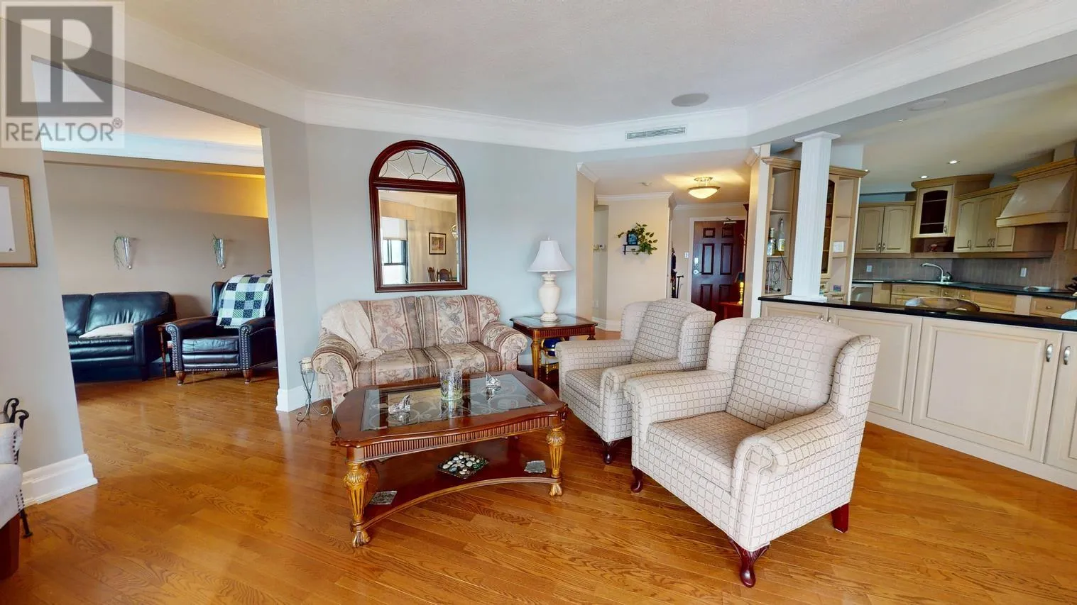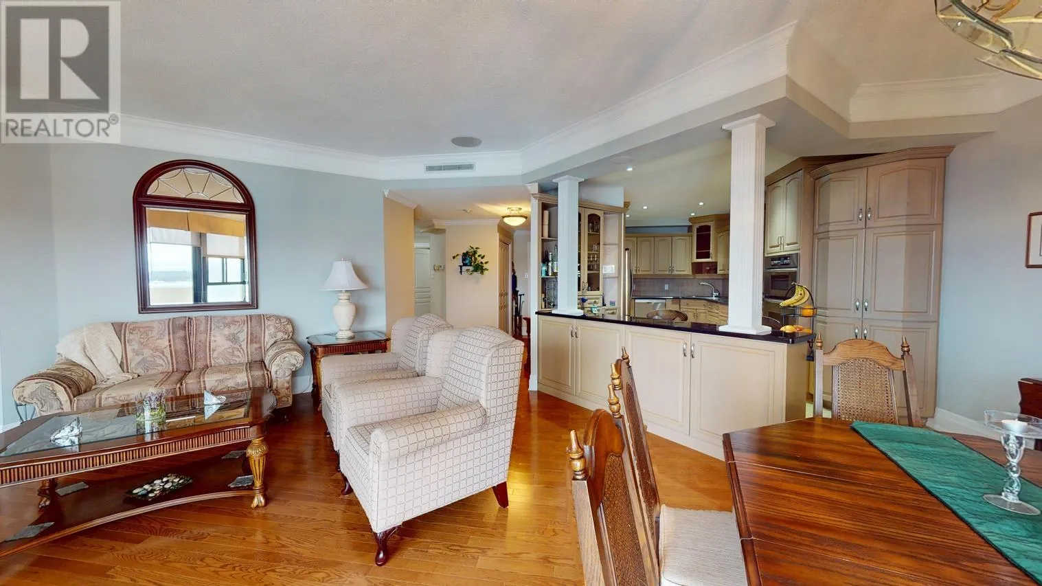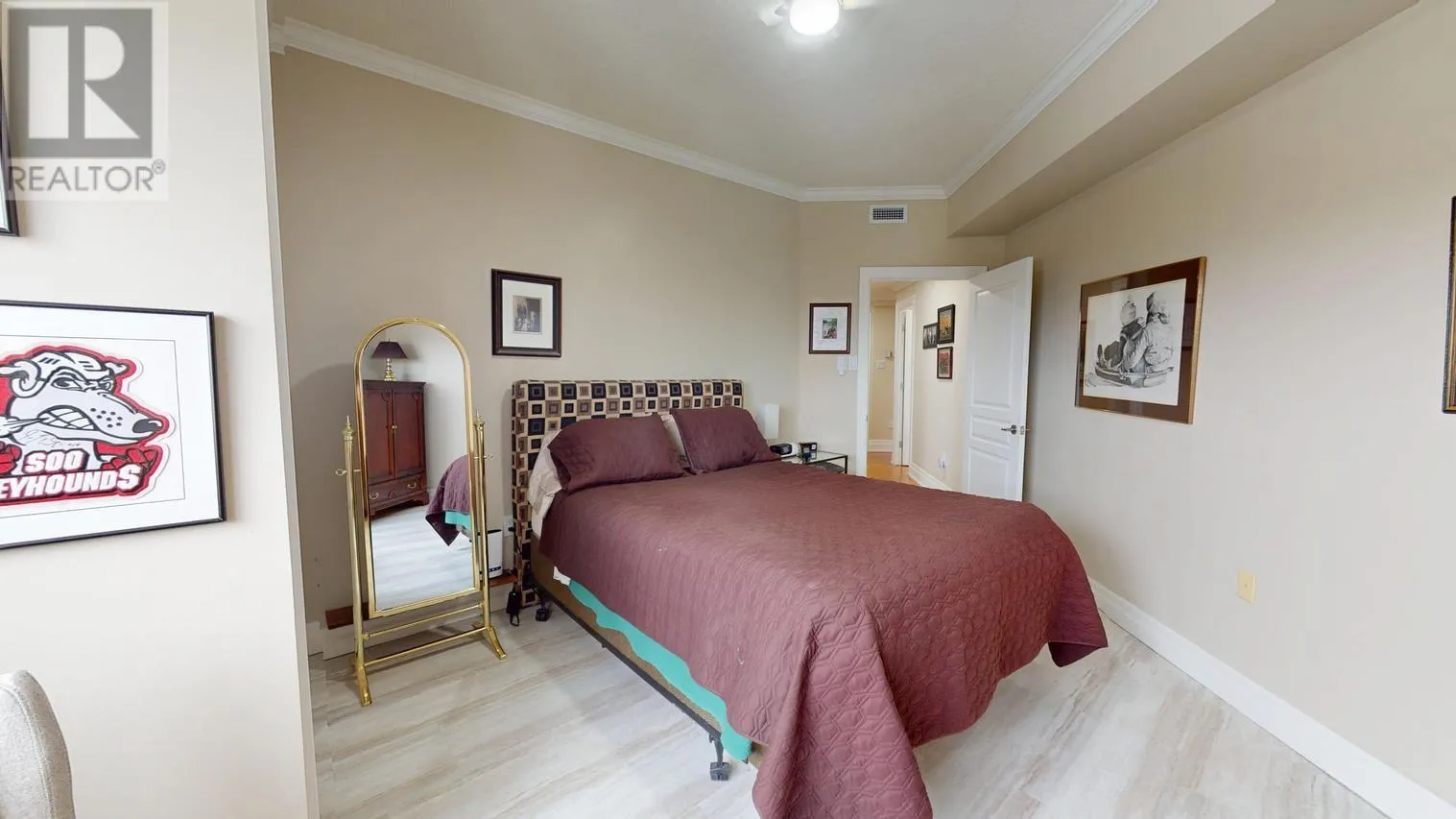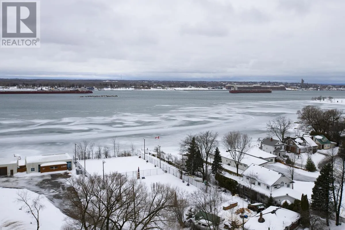 Highlighted by the most spectacular panoramic waterfront view in all of Sault Ste. Marie stretching as far as the eye can see, this 1845 sq ft Penthouse Condominium features 2-large south facing balconies, professionally redesigned open-concept living space w/ 9â ceilings and high-quality custom finishes plus 3 spacious bedrooms with primary ensuite bath, in unit laundry, central A/C and 2 side-by-side owned parking spaces in the secure parking garage. Be sure to take the visual tour, ask your agent for the detailed feature package and book your appointment to view. This is truly a one-of-a-kind opportunity!! (id:27476)