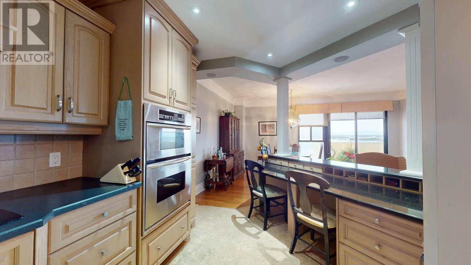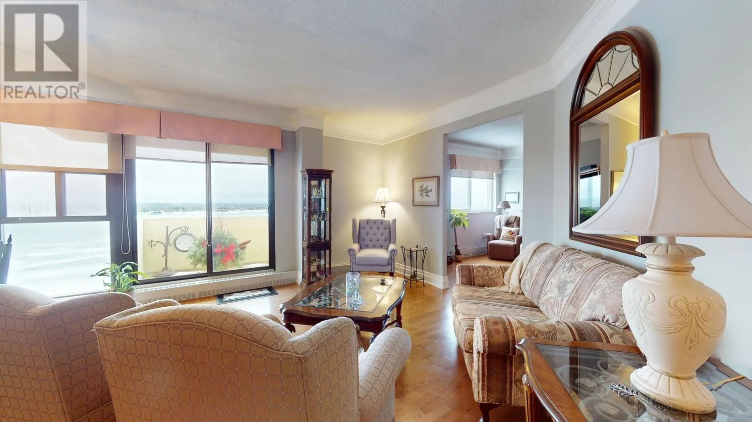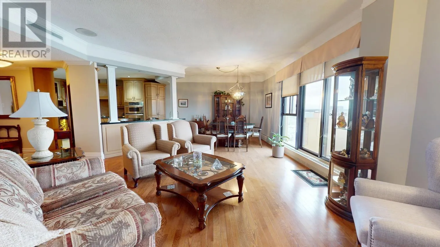 Highlighted by the most spectacular panoramic waterfront view in all of Sault Ste. Marie stretching as far as the eye can see, this 1845 sq ft Penthouse Condominium features 2-large south facing balconies, professionally redesigned open-concept living space w/ 9â ceilings and high-quality custom finishes plus 3 spacious bedrooms with primary ensuite bath, in unit laundry, central A/C and 2 side-by-side owned parking spaces in the secure parking garage. Be sure to take the visual tour, ask your agent for the detailed feature package and book your appointment to view. This is truly a one-of-a-kind opportunity!! (id:27476)
