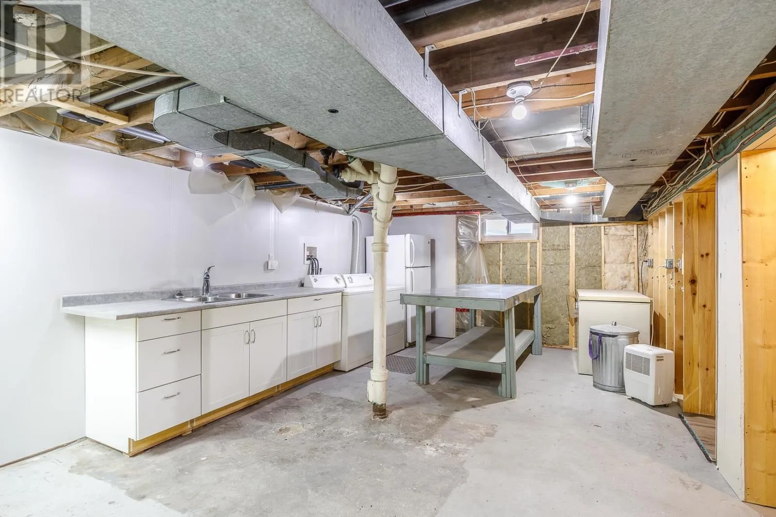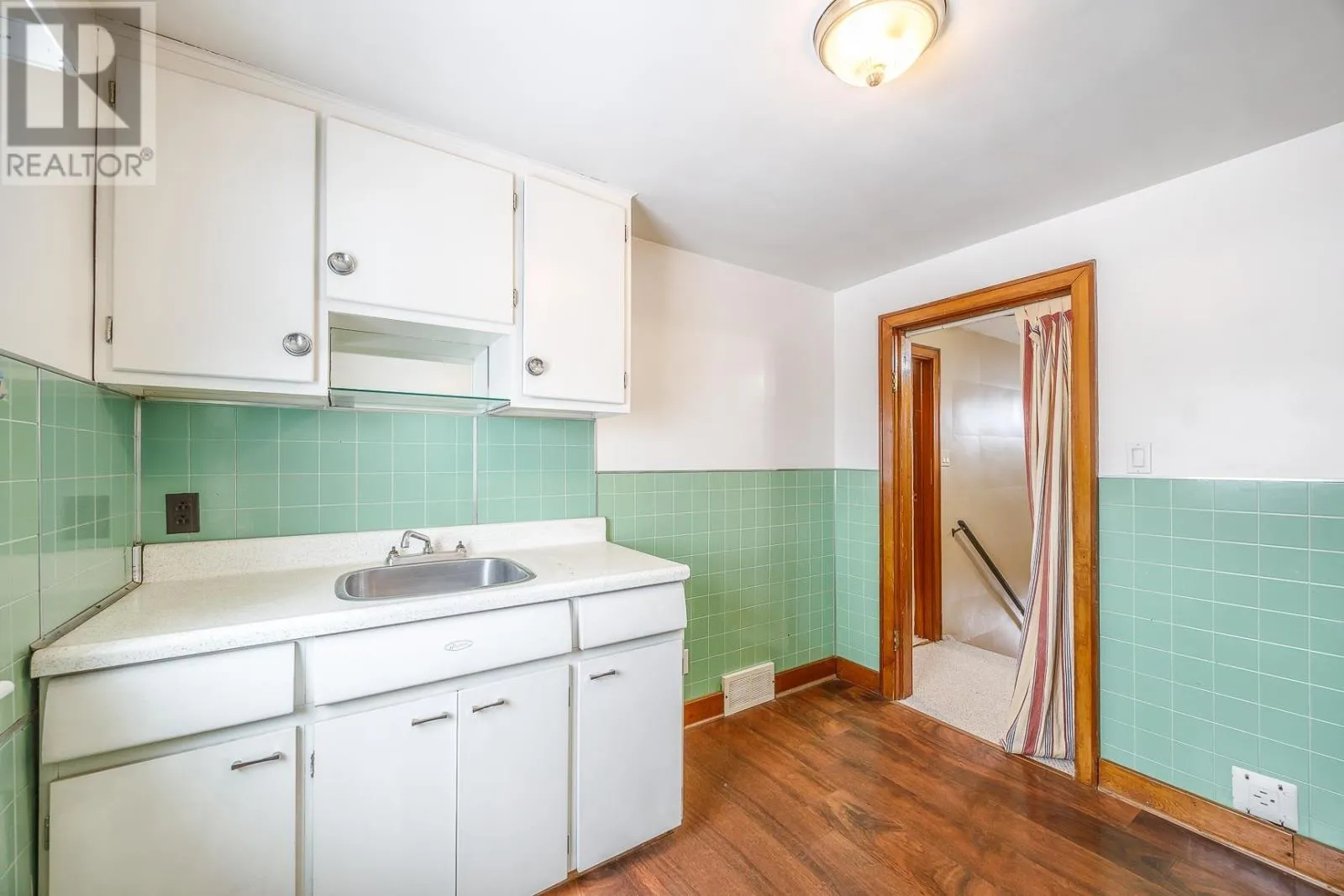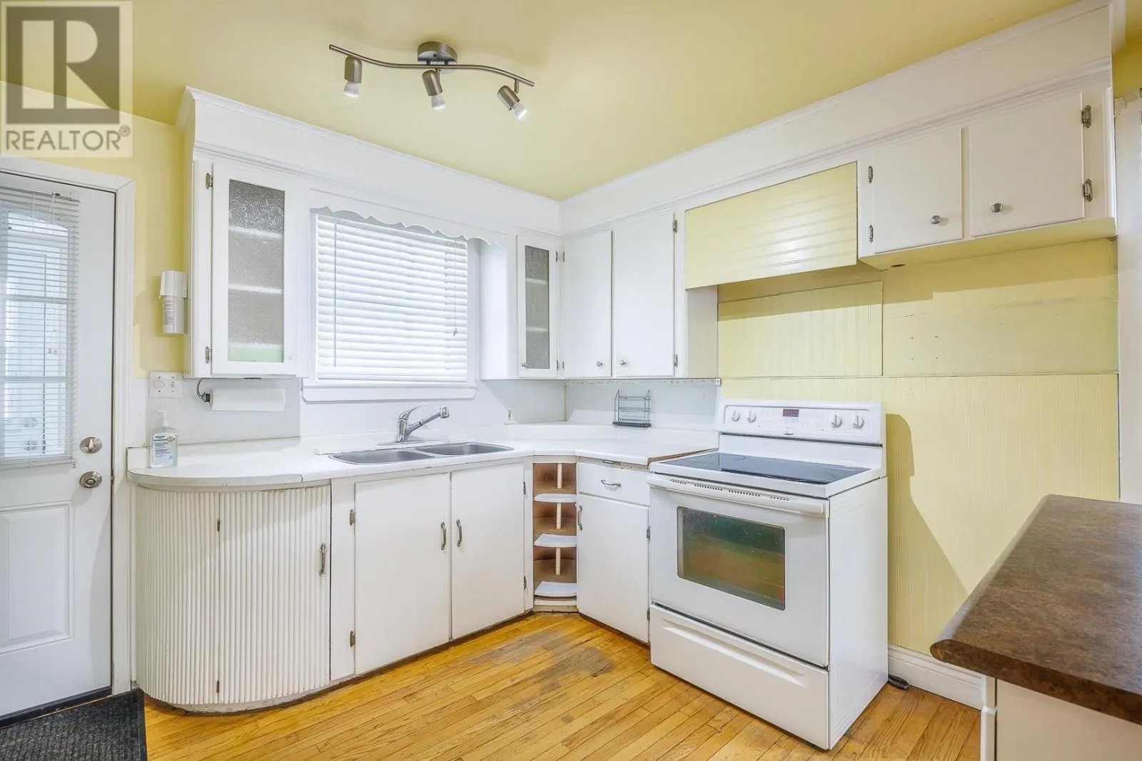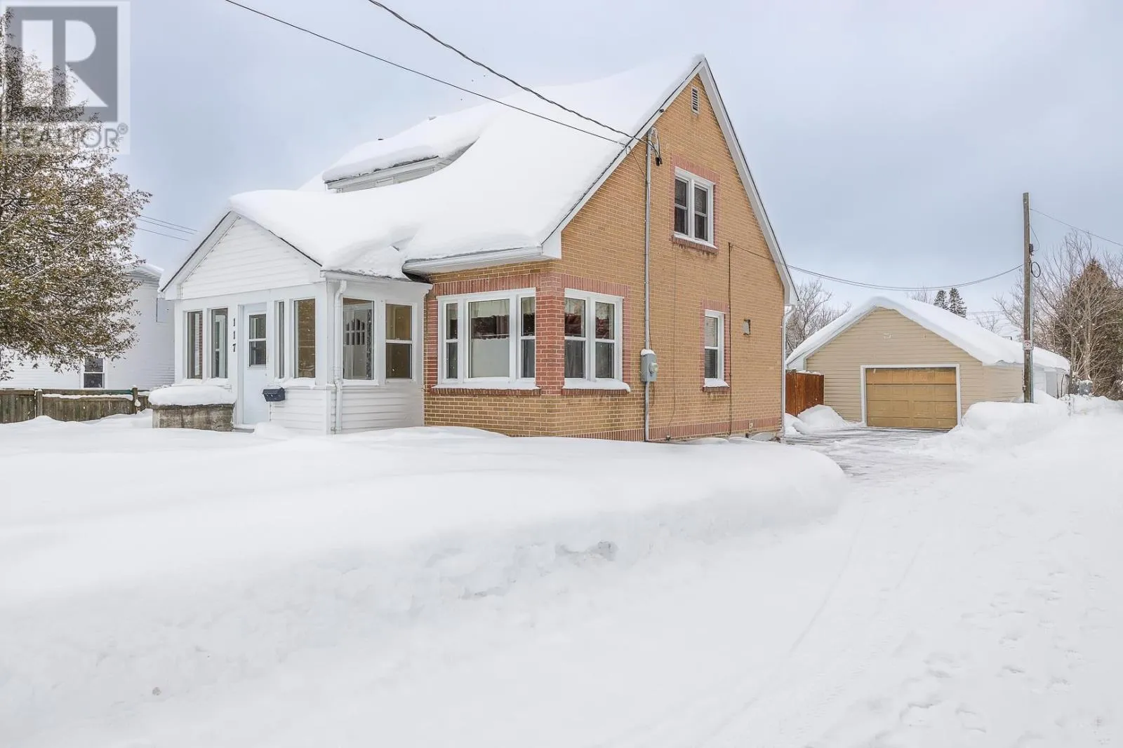 Across from Wilcox Park Brick home with detached garage in a family-friendly neighbourhood, priced to help you enter the market. Enjoy a fully fenced yard, spacious rear deck, and charming covered front porch. Currently used as a single-family home but **zoned duplex** with easy conversion potential by separating the front entry. An upper kitchen is already in place, offering excellent in-law or income possibilities. The main floor features a quaint kitchen, main floor laundry, one bedroom, and a bathroom. Upstairs offers two additional bedrooms and a second full bath. Some original hardwood adds character throughout. The finished basement provides extra living space and could serve as a rec room, office, or potential additional bedroom. Gas forced air heating and laundry also in the basement. **3 bedrooms, 2 bathrooms, and great future flexibility in a desirable area.** (id:27476)