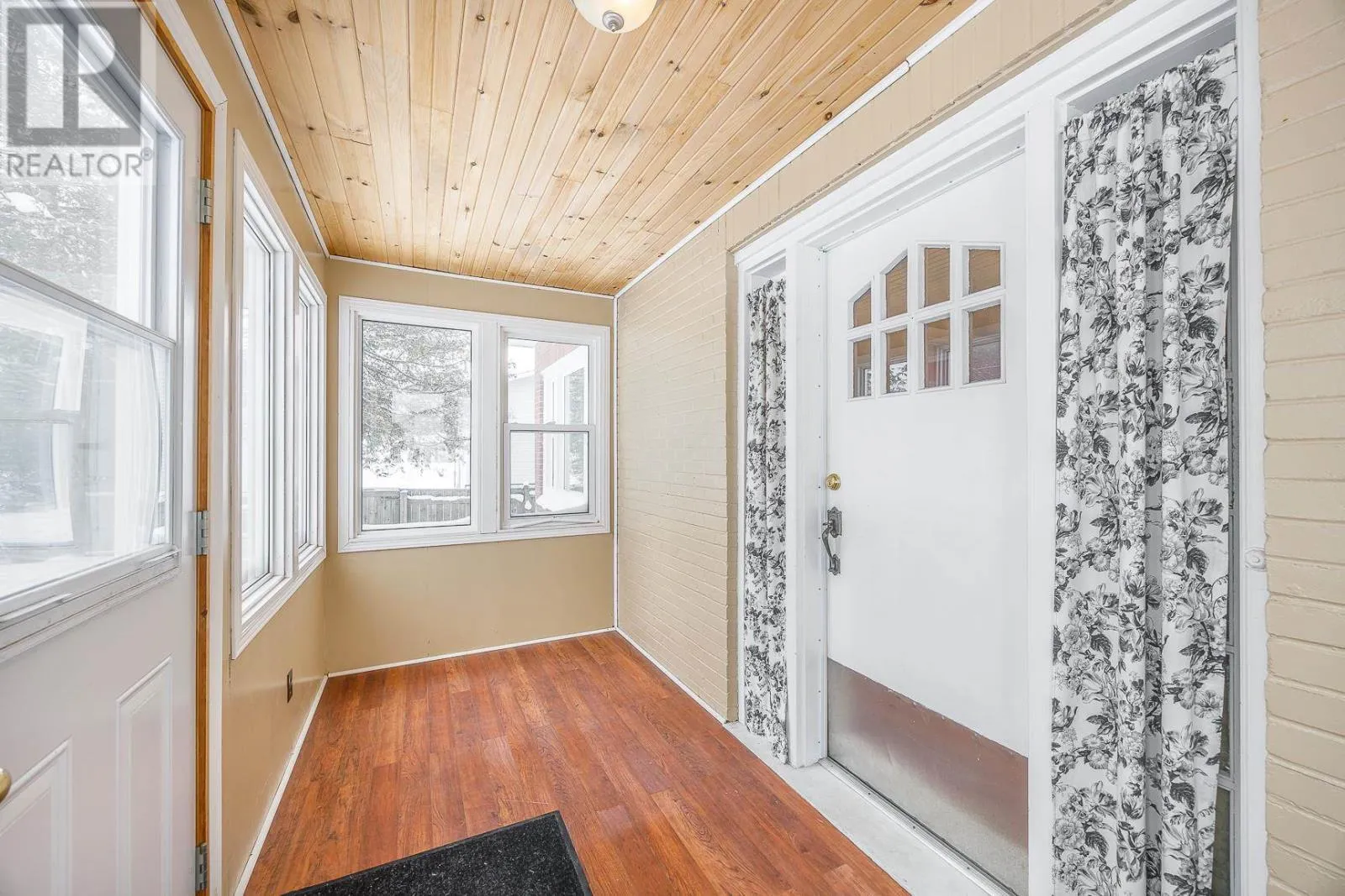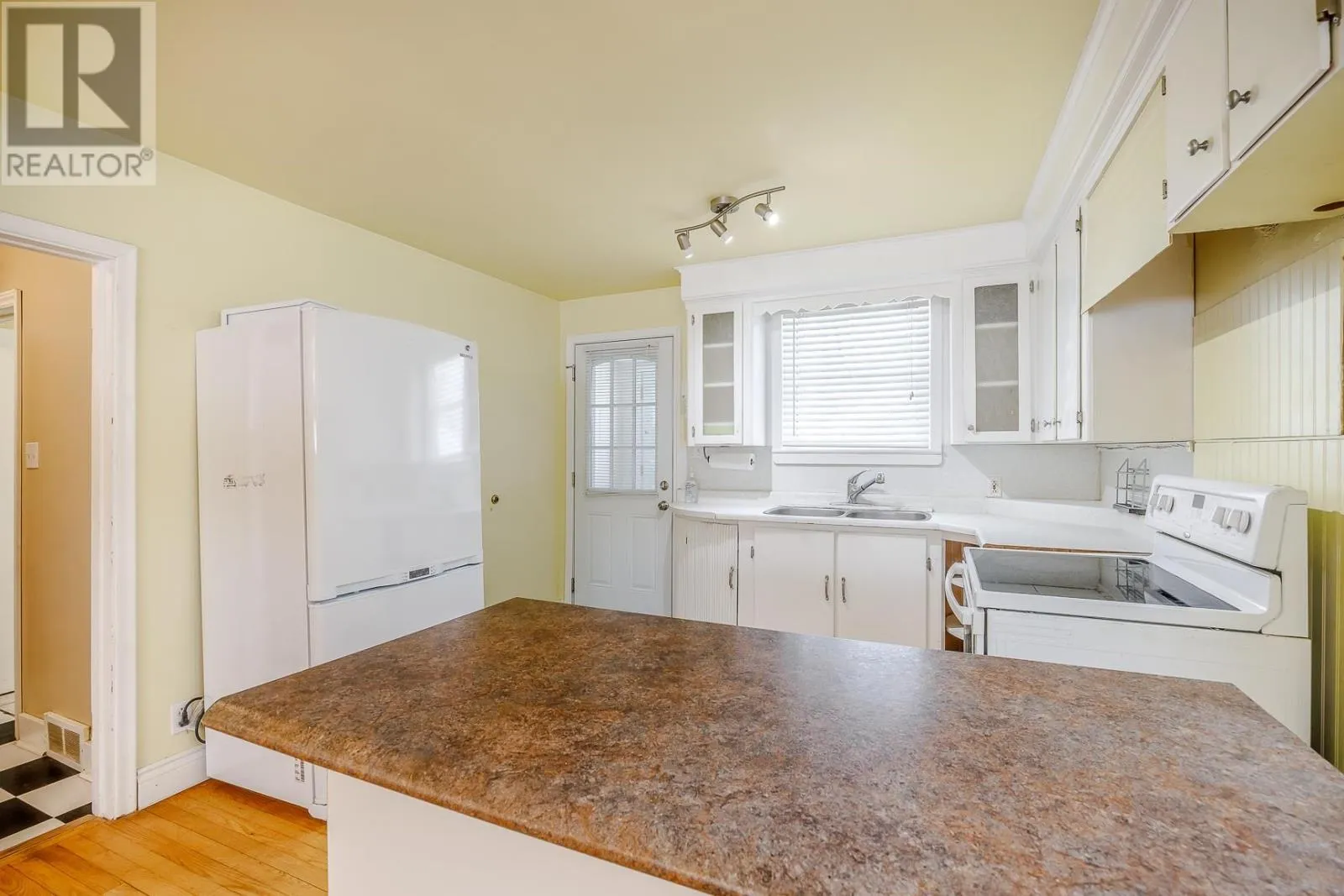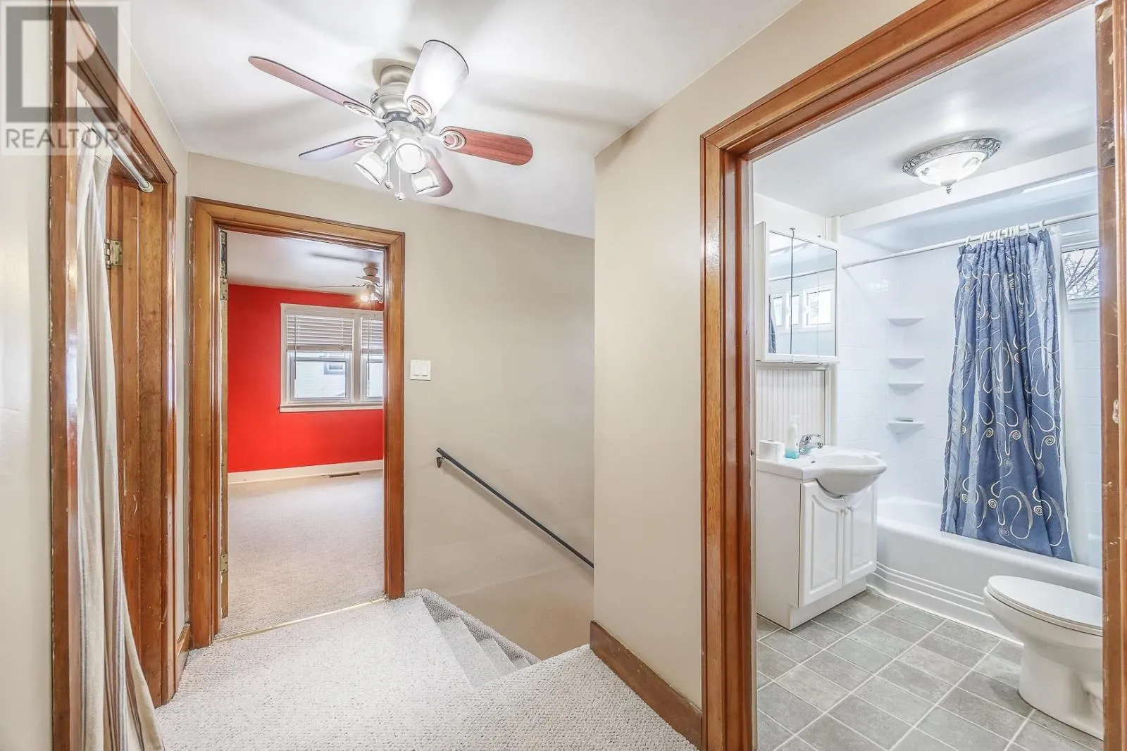 Solid brick home with detached garage in a family-friendly neighbourhood, priced to help you enter the market. Enjoy a fully fenced yard, spacious rear deck, and charming covered front porch. Currently used as a single-family home but **zoned duplex** with easy conversion potential by separating the front entry. An upper kitchen is already in place, offering excellent in-law or income possibilities. The main floor features a quaint kitchen, main floor laundry, one bedroom, and a full bath. Upstairs offers two additional bedrooms and a second full bath. Some original hardwood adds character throughout. The finished basement provides extra living space and could serve as a rec room, office, or potential additional bedroom. Gas forced air heating. **3 bedrooms, 2 bathrooms, and great future flexibility in a desirable area.** Listed also as single family (id:27476)