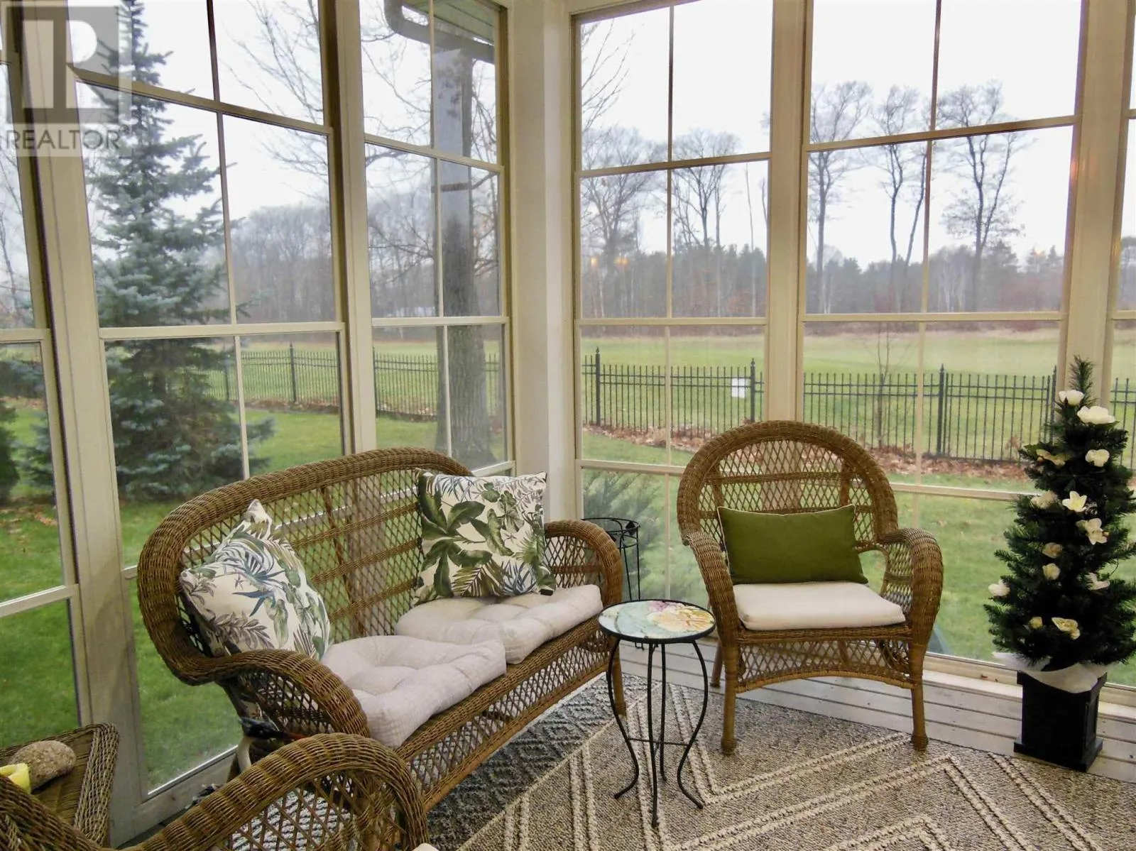 Fourth Line to Crimson Ridge Drive Welcome to this stunning bungalow situated along the prestigious Crimson Ridge Golf Course on 71' x 130' lot. This impeccable home showcases high-end finishings throughout. The open concept main floor features 9' ceilings and seamlessly connects the kitchen, dining and living areas, creating an ideal space for everyday living and entertaining. The gourmet kitchen features a large island, granite countertops, premium cabinetry and modern appliances. All 3 full bathrooms continue the luxurious theme with granite surfaces and quality fixtures. The primary bedroom boasts a gorgeous ensuite bath and a spacious walk-in closet. A second bedroom, 2nd bath and a convenient main floor laundry add to the home's thoughtful layout on the main floor. In addition, enjoy sunset views from the west-facing 14' x 10' three-season room with shatter proof glass, a perfect place to unwind and take in the serene 12th hole of the golf course backdrop. The fully finished lower level completes the 2600 square feet of living space this home offers with two additional bedrooms, a gorgeous bathroom, a huge recreation room featuring an electric fireplace, a built-in office area and a wet bar. There's also an extra deep two car garage, offering ample room for vehicles and additional storage. Condo fee includes snow removal of driveway and road, front yard grass cutting, garbage and recycling pick up and road maintenance. This home truly embodies luxury and comfort in a spectacular setting. (id:27476)