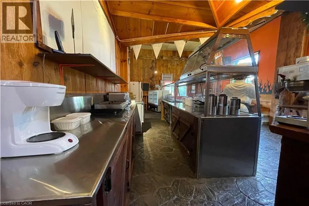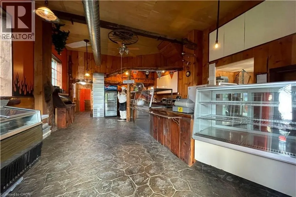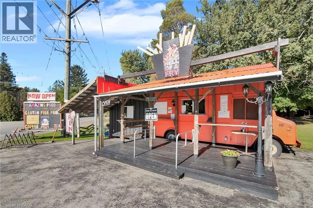 Go North on Bruce Road 10 to Scone, corner of Grey Bruce Line and Grey Road 25. Welcome to The Harley Blues Cafe, easily one of the most lucrative investment properties you could add to your portfolio this year. What you get here are three streams of income wrapped into one: A 6800 Square-foot two-level residential/commercial building complemented by a highly successful French Fry Shack. The ground floor of the building features a turnkey restaurant space with everything you need to run a dine-in eatery as well as operate a takeout counter or convert to Convenience Store with LCBO. Both the restaurant and French Fry shack had their last health inspection September 2025 - and all equipment is in optimal condition. The upper floor features a 5-bedroom home separated into two units, each with their own kitchen and bathroom. Owner residence or rent rooms out to employees of Aecon and Bruce Power (by the week in off-season), or the opportunity to rent on Airbnb during tourist season and keeping the rooms full in the off-season with tradesmen. Situated next to a beautiful Saugeen River, which is just a few steps from the house, this picturesque property is a fantastic place to live and run a business. Swimming, Fishing, Canoeing, Kayaking, Hiking, Snowshoeing, Cross-country Skiing & Snowmobiling right out your back door. No expense was spared on renovations, decorations and equipment. Book your private showing today to see all the potential for yourself. (id:27476)