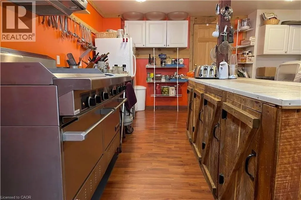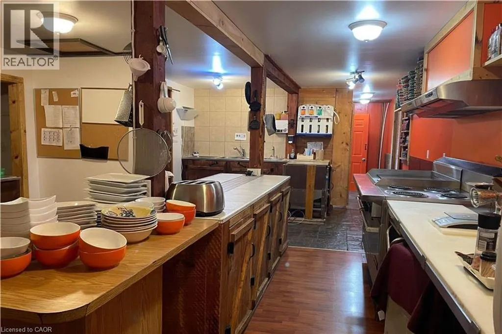 Go North on Bruce Road 10 to Scone, corner of Grey Bruce Line & Grey Road 25. Here is your opportunity to get out of the city! Welcome to The Harley Blues Café, easily one of the most lucrative investment properties you could add to your portfolio this year. What you get here are three streams of income wrapped into one: A 6800 square-foot two-level residential/commercial building complemented by a highly successful French Fry Stand. The ground floor of the building features a turnkey restaurant space with everything you need to run a dine-in eatery as well as operate a takeout counter or change over to Convenience Store with LCBO. Both the restaurant and French Fry Stand had their last health inspection September of 2025; Water Test (0-0 rating) just completed September 2025 - and all equipment is in optimal condition. The upper floor features a 5-bedroom home separated into two units, each with their own kitchen and bathroom. Owner residence or rent rooms out to employees of Aecon and Bruce Power (by the week in off-season), or the opportunity to rent on Airbnb during tourist season and keeping the rooms full in the off-season with tradesmen. Situated next to a beautiful Saugeen River, which is just a few steps from the house, this picturesque property is a fantastic place to live and run a business. Swimming, Fishing, Canoeing, Kayaking, Hiking, Snowshoeing, Cross-country Skiing & Snowmobiling right out your back door. No expense was spared on renovations, decorations and equipment. Book your private showing today to see all the potential for yourself. (id:27476)