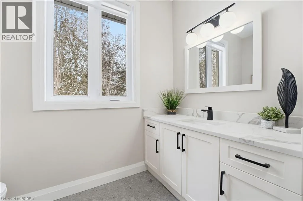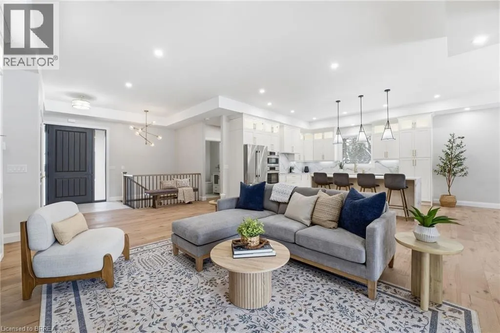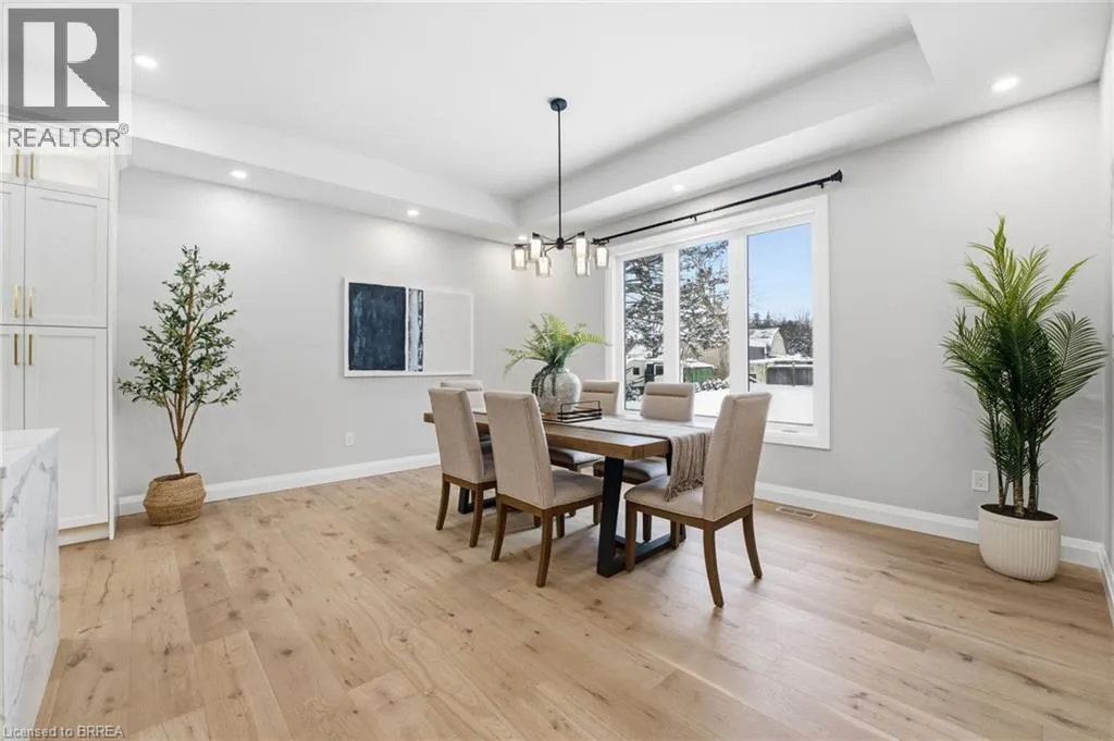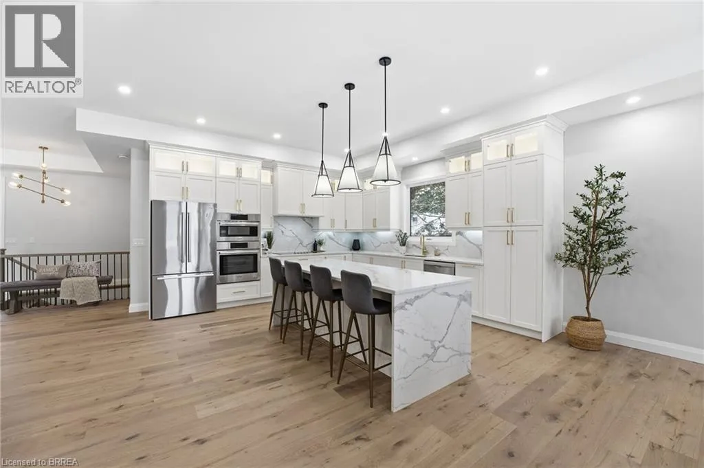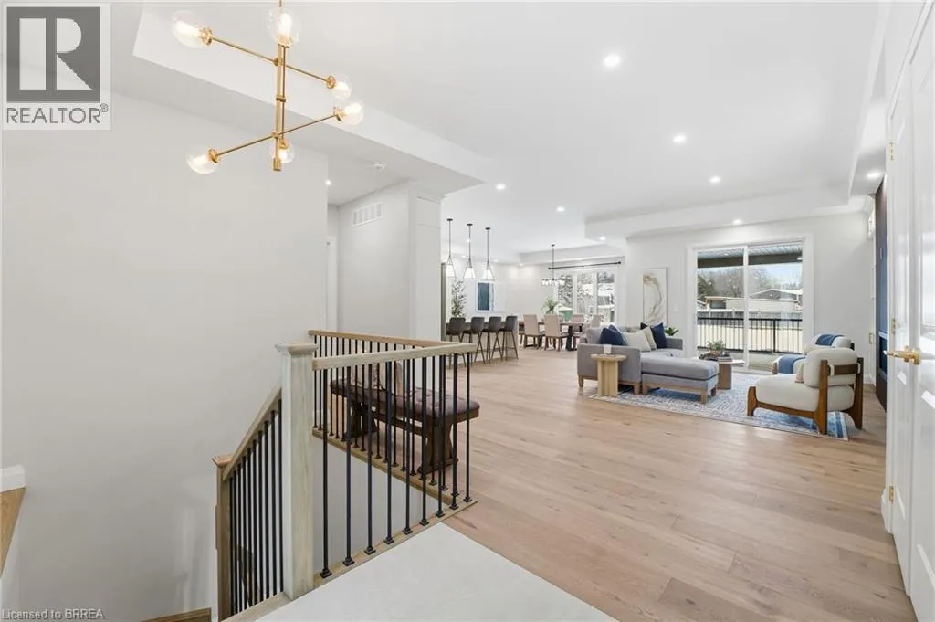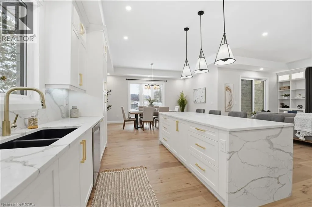 Hwy 24 to Oakland Road to Kings Lane This stunning 2,119 sq ft executive bungalow delivers the perfect balance of luxury finishes, thoughtful design, and peaceful country living minutes from the city! Set on a 0.63-acre lot, this home offers exceptional curb appeal with a 3 car garage and ample parking for vehicles, toys, or trailers. A standout feature is the pull-through door on the back of the garage, perfect for hobbyists, car enthusiasts, or anyone needing extra storage and functionality. Step inside to a bright, sophisticated interior featuring 10ft ceilings, 7ft doors, and engineered hardwood flooring throughout. The stunning chefâs kitchen is thoughtfully designed with high-end appliances, premium cabinetry, and elegant quartz countertops & backsplash. With generous prep space & a layout ideal for entertaining, the kitchen flows effortlessly into the spacious dining area & bright living room. You will find a custom gas fireplace with built-in cabinetry, creating a warm and elevated gathering space. Step onto the covered back porch and take in the peaceful views of your scenic backyard. The home offers 3 bedrooms, including a luxurious primary suite with walk-in closet and spa-like ensuite with double vanity & glass shower. Two additional bedrooms & a 4pc main bathroom provide comfort for family or guests. For everyday convenience, enjoy a large mudroom/laundry room off the garage and a 2pc powder room to complete the main level. The basement offers exceptional future potential with 9ft ceilings, large windows, and garage access, making it ideal for a future in-law suite, additional living space, or custom development. Located in the charming Town of Scotland, this home offers the tranquility of country living with the convenience of being close to the HWY and amenities. A true modern executive bungalow, built with quality, attention to detail, and craftsmanship throughout. This is an amazing opportunity to own a newly built luxury home on a premium lot! (id:27476)