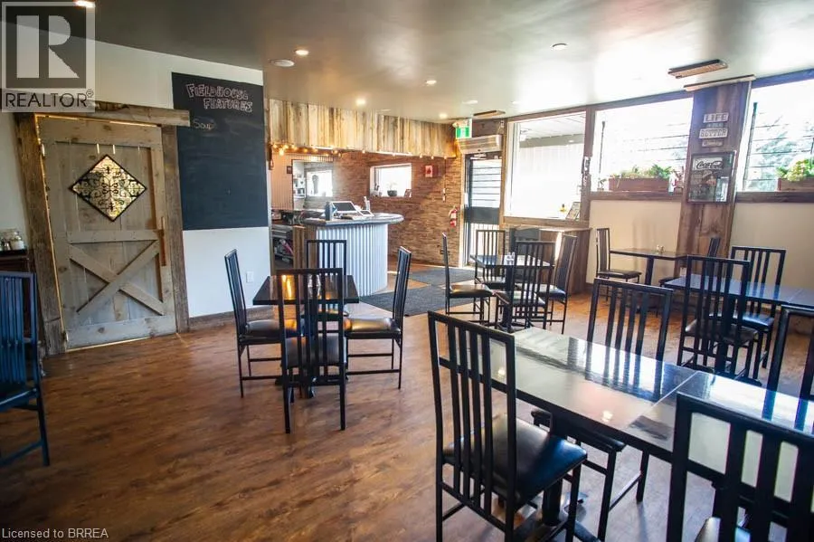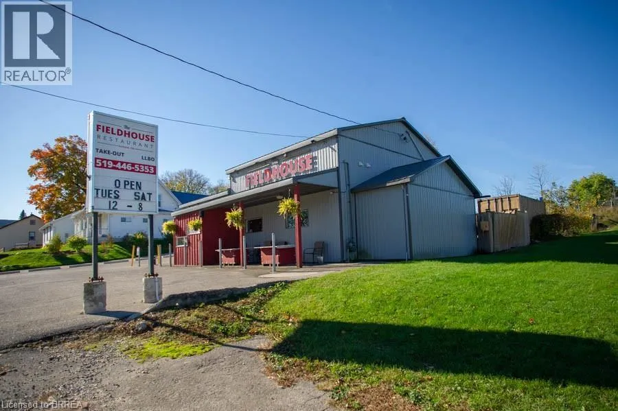 Oakland Rd to Simcoe St An exceptional opportunity awaits in the heart of Scotland. The Field House Restaurant is a well-established, family-run business known for its quality dining experience, welcoming atmosphere, and strong community presence. Proudly owned and operated by the same family, the restaurant has built a loyal clientele by focusing on fresh ingredients and consistently delivering outstanding customer satisfaction. Step inside to discover a warm and inviting interior, thoughtfully updated with a complete renovation in 2016, including both the dining area and kitchen. A striking stone feature wall anchors the bar area, complemented by a beautiful black walnut countertopâcreating a natural gathering space for guests. The main dining room showcases a charming barn board feature wall and offers seating for up to 60 guests, providing both comfort and character. In 2021, an additional dining space was thoughtfully created, ideal for hosting intimate private functions and seamlessly connected to the main dining area. During the warmer months, guests can enjoy the rear patio, which accommodates approximately 20 people, with further potential to expand outdoor seating at the front of the property. The spacious chefâs kitchen is designed for efficiency, offering ample room for food preparation and service, along with extensive indoor and outdoor storage. The property also includes two washrooms, all owned equipment, and generous on-site parking, situated on a sizable 80 ft x 165 ft lot. Ideally located just minutes from Brantford, this turnkey offering presents a rare opportunity to own both a thriving business and the property in the growing community of Scotland. With strong existing operations and room for future growth, this is a standout opportunity for entrepreneurs and investors alike. (id:27476)