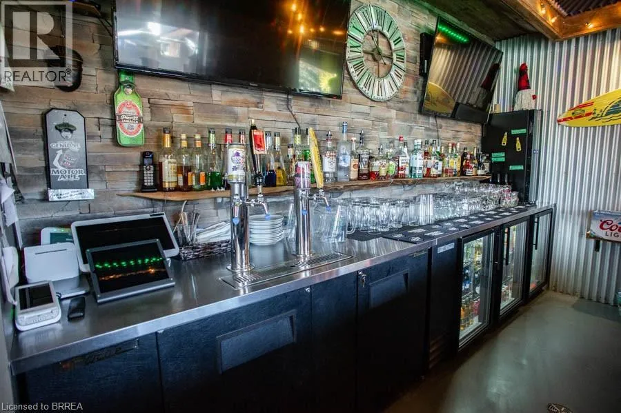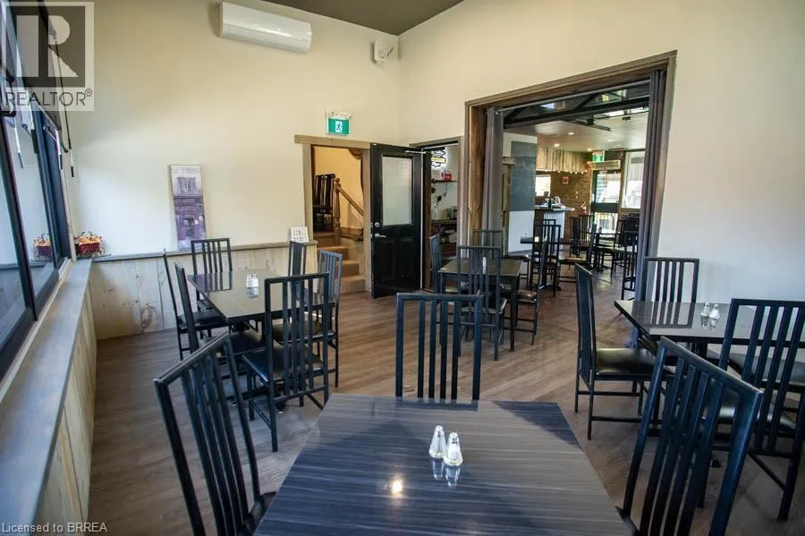 Oakland Rd to Simcoe St An exceptional opportunity awaits in the heart of Scotland. The Field House Restaurant is a well-established, family-run business known for its quality dining experience, welcoming atmosphere, and strong community presence. Proudly owned and operated by the same family, the restaurant has built a loyal clientele by focusing on fresh ingredients and consistently delivering outstanding customer satisfaction. Step inside to discover a warm and inviting interior, thoughtfully updated with a complete renovation in 2016, including both the dining area and kitchen. A striking stone feature wall anchors the bar area, complemented by a beautiful black walnut countertopâcreating a natural gathering space for guests. The main dining room showcases a charming barn board feature wall and offers seating for up to 60 guests, providing both comfort and character. In 2021, an additional dining space was thoughtfully created, ideal for hosting intimate private functions and seamlessly connected to the main dining area. During the warmer months, guests can enjoy the rear patio, which accommodates approximately 20 people, with further potential to expand outdoor seating at the front of the property. The spacious chefâs kitchen is designed for efficiency, offering ample room for food preparation and service, along with extensive indoor and outdoor storage. The property also includes two washrooms, all owned equipment, and generous on-site parking, situated on a sizable 80 ft x 165 ft lot. Ideally located just minutes from Brantford, this turnkey offering presents a rare opportunity to own a thriving business in the growing community of Scotland. With strong existing operations and room for future growth, this is a standout opportunity for entrepreneurs and investors alike. (id:27476)