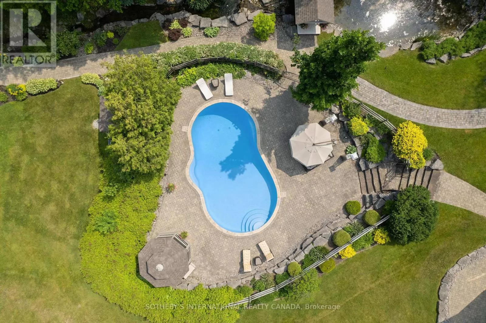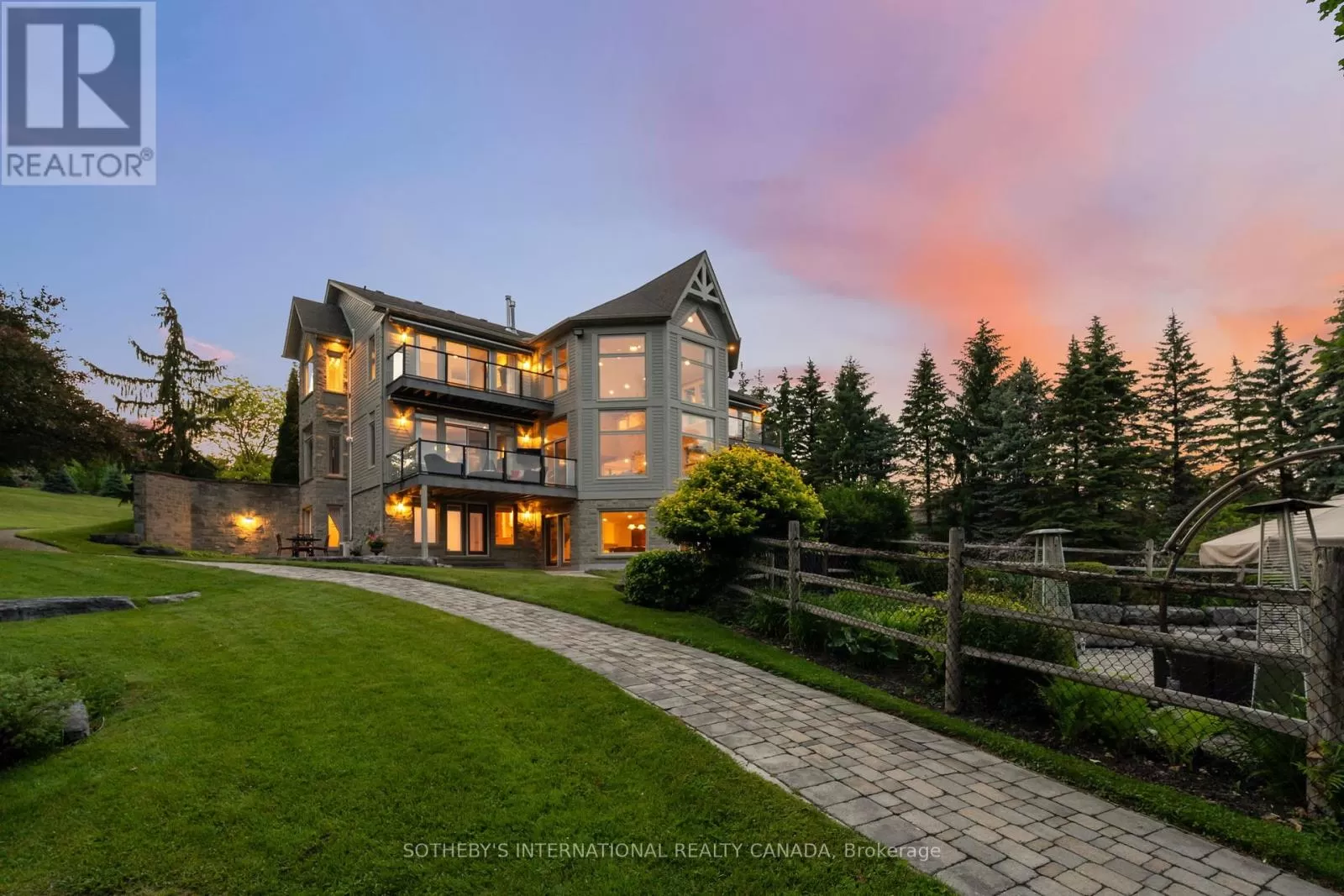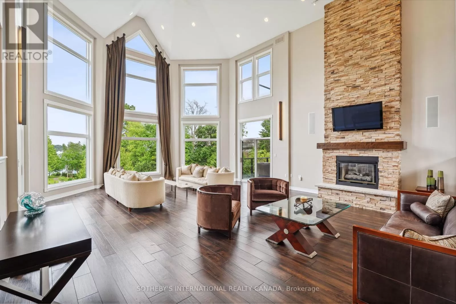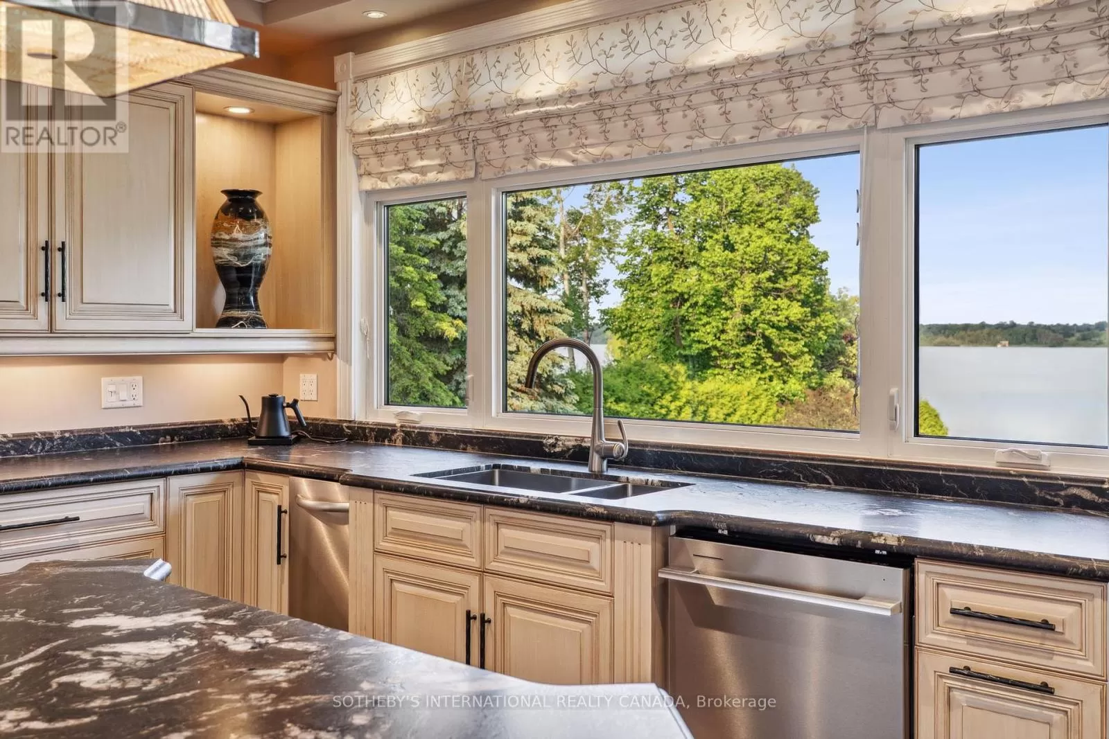 Cross Streets: Simcoe St. and Castle Harbour Dr. ** Directions: Head East on Castle Harbour Dr from Simcoe St. Follow Castle Harbour Drive- turn East on Cawkers Cove Rd. Turn South onto Island View Crt. Home is on your left. Welcome to Cascadia Waters Estate - an exceptional custom-built waterfront estate on the serene shores of Lake Scugog where timeless elegance, refined comfort and the spirit of summer living converge in perfect harmony. Privately gated and masterfully hardscaped, this residence offers an exquisite blend of luxury and lifestyle, nestled just minutes from historic Port Perry and connected Trent-Severn Waterway. Crafted for both grand entertaining and intimate everyday moments, the home showcases a sunken great room crowned by soaring two-storey windows that capture sweeping lake views & flood the space with natural light. The culinary-inspired kitchen, equipped with premium Wolf appliances, flows effortlessly onto an expansive composite deck that is perfect for al fresco dining and sunset gatherings overlooking the water. A formal dining room extends to a sundeck with a built-in fireside table, while a custom-fitted office offers privacy and function in equal measure. Step outside and experience a true summer sanctuary: a heated Gunite pool, pool house, gazebo, and a spring-fed stream that flows through the property, cascading over three waterfalls before settling into three tranquil ponds. Thoughtful touches abound, including a full irrigation system, drip lines for hanging baskets & a mature, professionally designed landscaping. Above the three-car garage, a generous raw loft space offers limitless potential that is ideal for possible future guest suites, fitness studio, kids play area, or additional recreation space.The lower level exudes refined comfort, featuring radiant in-floor heating, an expansive recreation room, a climate-controlled wine cellar with a lounge-style wet bar, and a pool bathroom with direct walk-out access towards the grounds. At this estate, you can boat, entertain, unwind, breath deep and grow roots all against a backdrop of natural beauty and lakeside luxury. This is more than a home. Its a legacy. Welcome to your forever chapter! (id:27476)