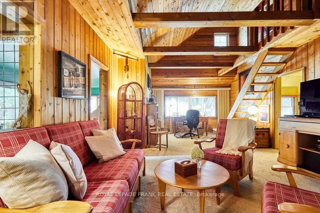 Hwy #57 & Scugog Point Rd Welcome to this perfect waterfront property on Lake Scugog & the Trent Severn Waterway offering a picturesque lifestyle with both westerly & northern exposures & providing breathtaking sunsets and sunrises. Situated on a tranquil private lane, this large, flat, treed lot is perfect for family activities & games on the front yard while the lakefront offers swimming, water sports & fishing in the summer, snowmobiling & ice fishing in the winter. The main house features charming tongue-and-groove cedar walls, a floor to ceiling brick gas fireplace between the kitchen & the spacious living room area that provides a panoramic view giving you the feeling you are sitting on top of the lake when looking out the window. The light filled, welcoming dining area just off the kitchen leads to a cozy family room which has a walkout to the deck overlooking the lake, providing that true cottage feel. Three bedrooms plus a loft allow for plenty of room for family & overnight guests. Complimenting all of this is a cute insulated bunkie with 2 rooms and a 2 pc. washroom. The lovely covered porch on the front of the house allows you to sit and while away the yesteryears while the forced air gas furnace (2018), air conditioner (2020) & electric car charger allow for all the comforts of home. Do not miss the opportunity to own this hidden gem that truly offers you the feeling of northern cottage country while being just a 20 minute drive to the town of Port Perry or 20 minutes to the town of Lindsay, school bus pickup, 12 minutes to Hwy. 35 and all the modern conveniences that being close to town offers you. (id:27476)