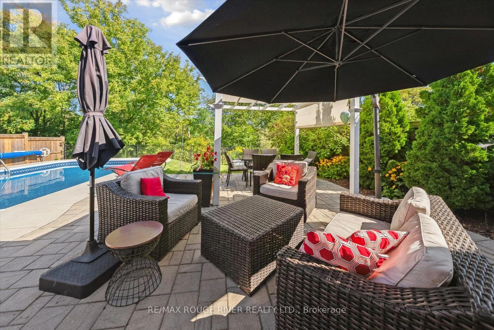 Union / Victoria Step into this beautifully updated 2+1-bedroom, 3-bath bungalow in one of Port Perrys most sought-after neighbourhoods, where thoughtful design meets peaceful pond and green space views. The main floor welcomes you with a bright, open layout, where pillars were removed to create flowing sightlines and new flooring and lighting enhance the airy feel. The primary suite has been expanded for extra comfort, while a former bedroom has been converted into a custom walk-in closet with shelving. A portion of the original primary closet was repurposed into a walk-in pantry, and the kitchen and appliances were thoughtfully updated, making everyday life effortless. All three bathrooms have been enlarged and refreshed with new plumbing and fixtures, offering style and function throughout the home. The walkout basement has been reconfigured from its original layout, now featuring a dedicated family room, added storage, and a newly finished laundry area (2025), creating flexible space for work, hobbies, or family activities. Step outside and the backyard unfolds as a private retreat. Professionally landscaped and fully fenced, it features an inground pool, a pergola, a hot tub with a concrete pad, and a composite deck with glass walls perfect for relaxing or entertaining while enjoying views of the pond and greenspace backing onto the property. Thoughtful, practical upgrades complete the home, including an Enerstar air exchange system, water softener, insulated and drywalled garage with inside entry, replaced basement stairway, California custom blinds, a new asphalt driveway (2021), and a pool heater (2025). Move-in ready and meticulously maintained, this home offers a harmonious blend of comfort, style, and convenience in a truly exceptional Port Perry setting. (id:27476)