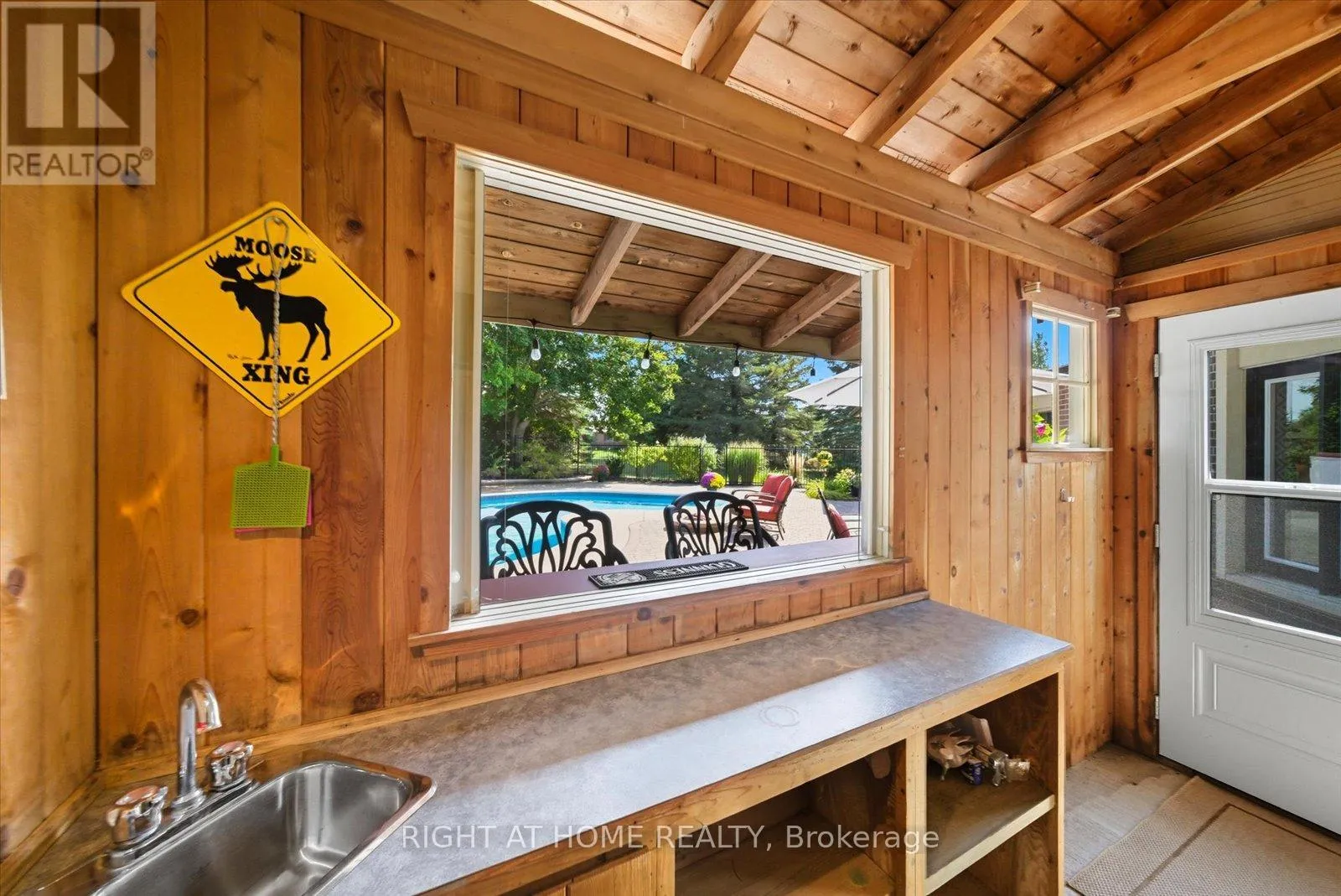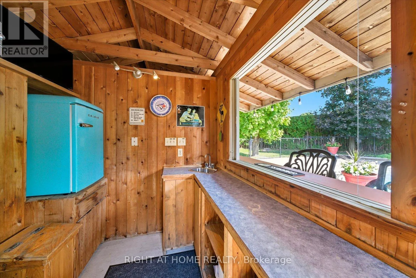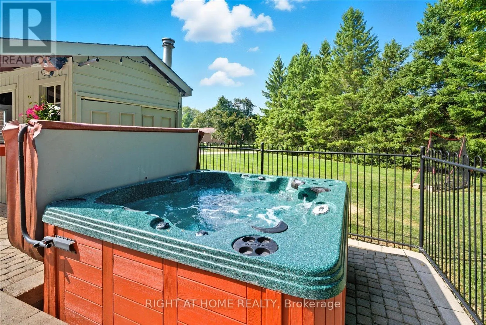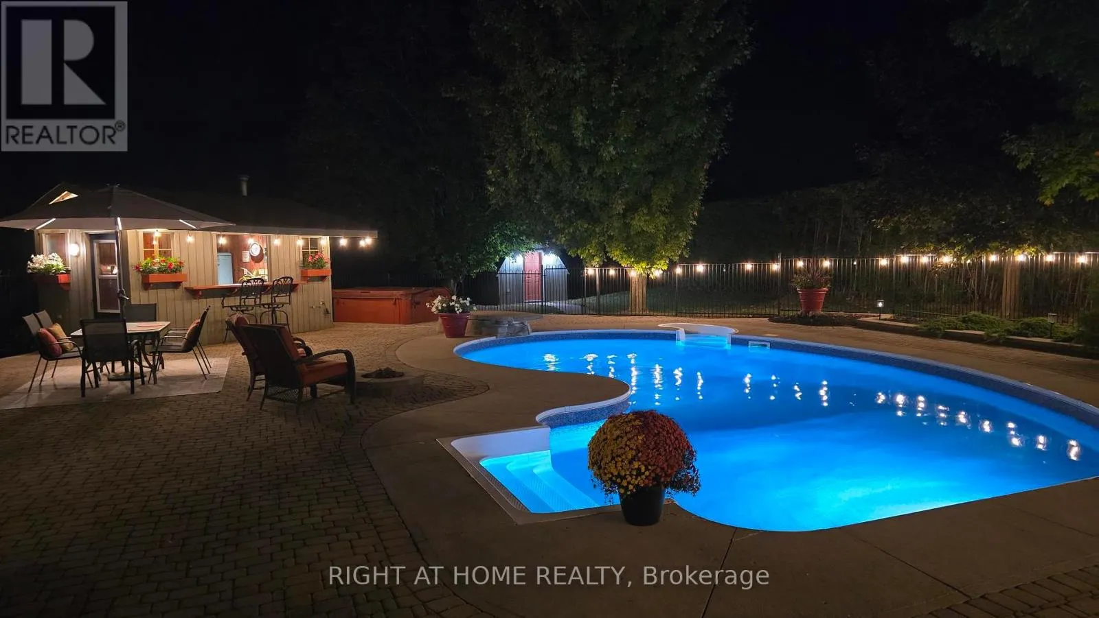 Cross Streets: Old Simcoe and Scugog Street. ** Directions: Old Simcoe Rd to Victoria Street and Victoria to Alma Street. This beautiful all-brick bungalow offers over 3,000 sq. ft. of finished living space on a rare 0.63-acre treed lot, providing privacy and charm in one of Port Perry's most desirable mature neighbourhoods. Perfectly located on a quiet cul-de-sac, it's within walking distance to historic downtown, schools, shopping, parks, and the waterfront. A large, inviting front porch welcomes you inside to a bright open-concept layout featuring a custom kitchen with abundant cabinetry, built-in stainless steel appliances, gas cooktop, double and prep sinks, and a breakfast bar. The kitchen flows into a spacious dining area with a walkout to the pool and a sunken family room overlooking the backyard, complete with a cozy gas fireplace. A large front-facing living room offers extra space for gatherings or quiet relaxation. The main level includes three bedrooms and two full baths, including a beautifully renovated main bath. The primary suite features a private ensuite, walk-in closet, and walkout to the pool area-perfect for morning coffee or an evening swim. A convenient main-floor laundry completes this level. The fully finished basement expands the living space with a large rec room featuring a pool table, gas fireplace, wet bar, gym area, an additional bedroom, 3-piece bath, new walk-in closet for extra wardrobe or storage space, and a second storage room. A side entrance through the garage provides direct access to the basement. The backyard oasis includes a 36-ft heated humpback pool with rock-style diving board and waterfall, brand-new liner (2024), hot tub, and an 8x16 Western Red Cedar cabana with 2-piece bath, sink, and gas hookups. Wrought iron fencing secures the pool area, and a garden shed with hydro provides extra storage. Large lot with no sidewalks. (id:27476)