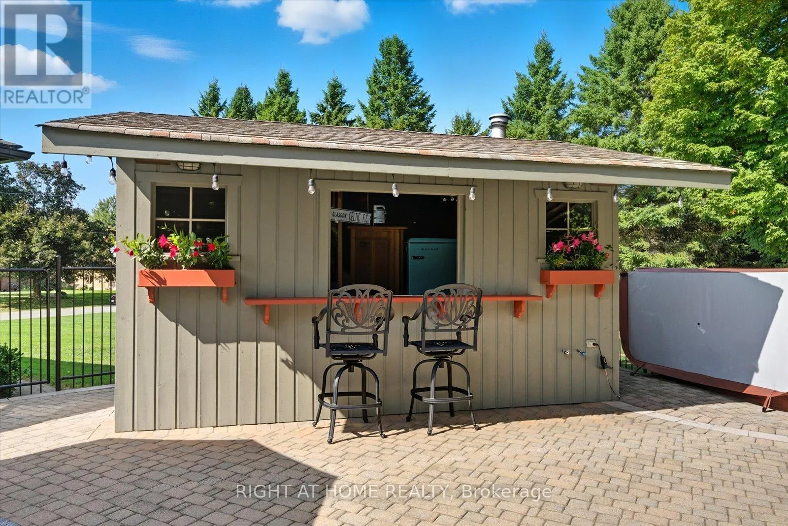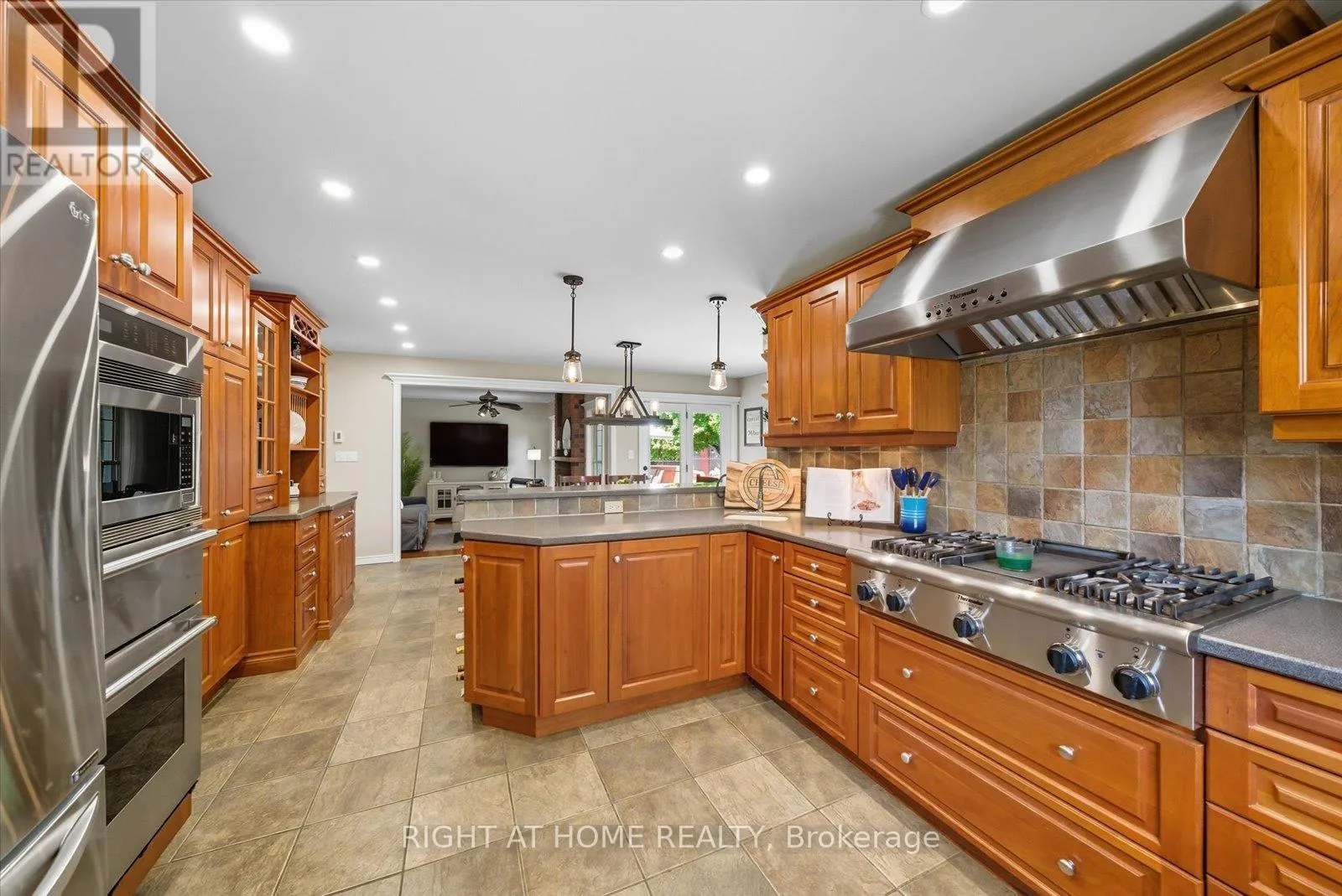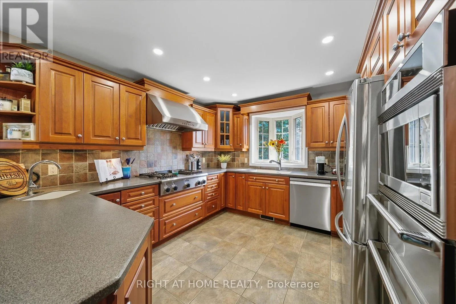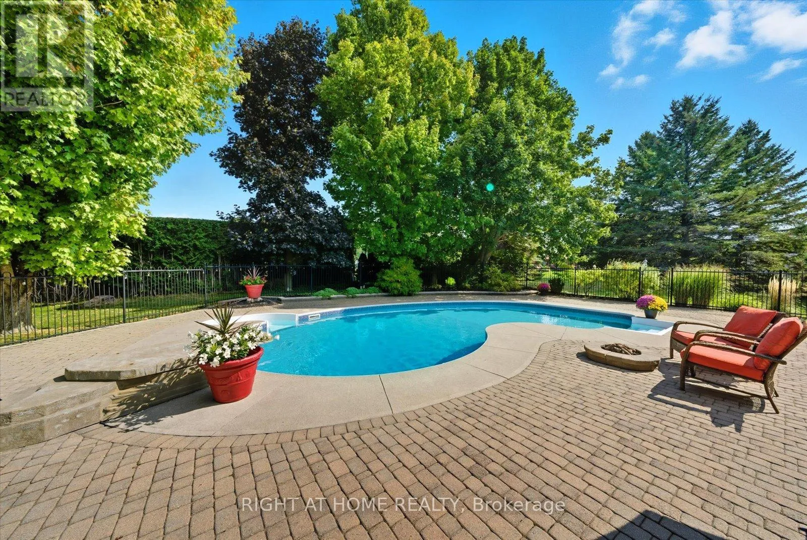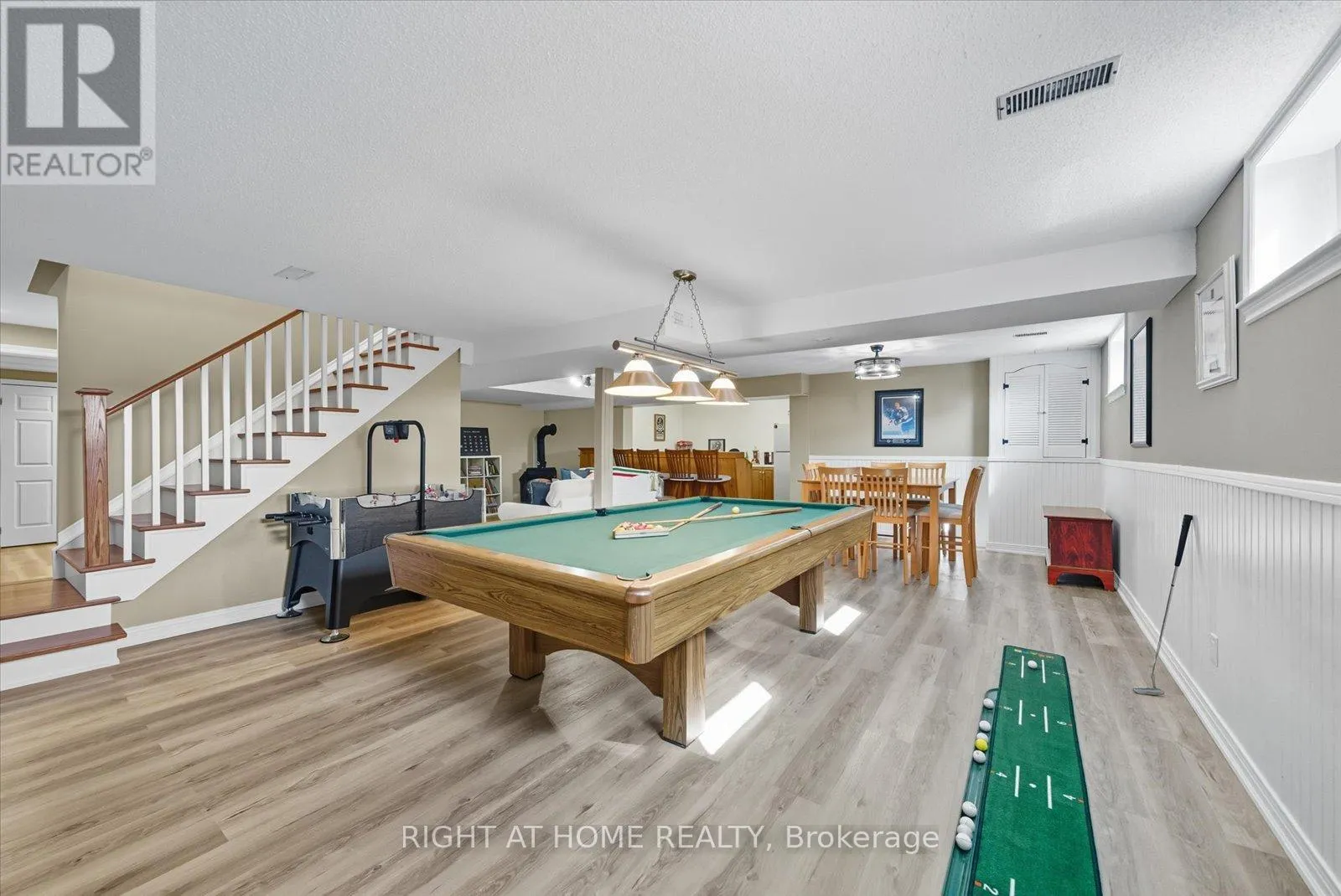 Cross Streets: Old Simcoe and Scugog Street. ** Directions: Old Simcoe Rd to Victoria Street and Victoria to Alma Street. This beautiful all-brick bungalow offers over 3,000 sq. ft. of finished living space on a rare 0.63-acre treed lot, providing privacy and charm in one of Port Perry's most desirable mature neighbourhoods. Perfectly located on a quiet cul-de-sac, it's within walking distance to historic downtown, schools, shopping, parks, and the waterfront. A large, inviting front porch welcomes you inside to a bright open-concept layout featuring a custom kitchen with abundant cabinetry, built-in stainless steel appliances, gas cooktop, double and prep sinks, and a breakfast bar. The kitchen flows into a spacious dining area with a walkout to the pool and a sunken family room overlooking the backyard, complete with a cozy gas fireplace. A large front-facing living room offers extra space for gatherings or quiet relaxation. The main level includes three bedrooms and two full baths, including a beautifully renovated main bath. The primary suite features a private ensuite, walk-in closet, and walkout to the pool area-perfect for morning coffee or an evening swim. A convenient main-floor laundry completes this level. The fully finished basement expands the living space with a large rec room featuring a pool table, gas fireplace, wet bar, gym area, an additional bedroom, 3-piece bath, new walk-in closet for extra wardrobe or storage space, and a second storage room. A side entrance through the garage provides direct access to the basement. The backyard oasis includes a 36-ft heated humpback pool with rock-style diving board and waterfall, brand-new liner (2024), hot tub, and an 8x16 Western Red Cedar cabana with 2-piece bath, sink, and gas hookups. Wrought iron fencing secures the pool area, and a garden shed with hydro provides extra storage. Large lot with no sidewalks. (id:27476)