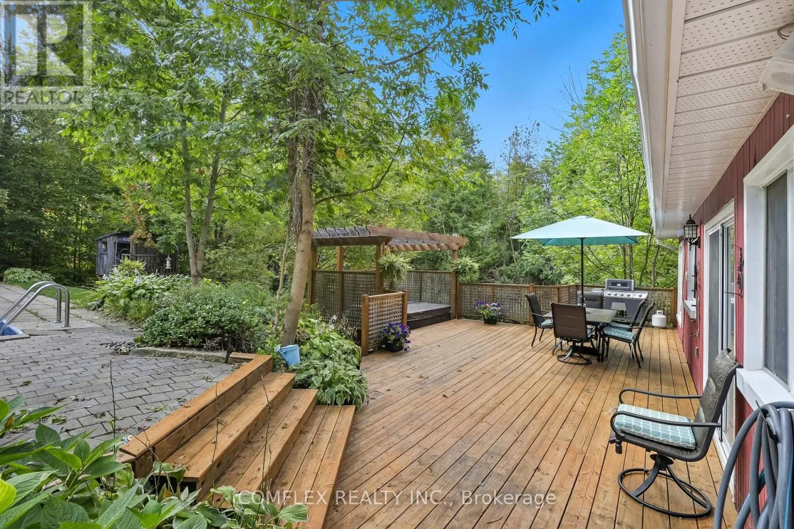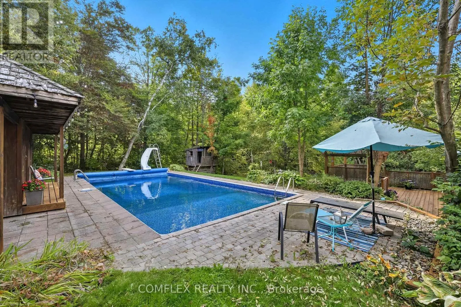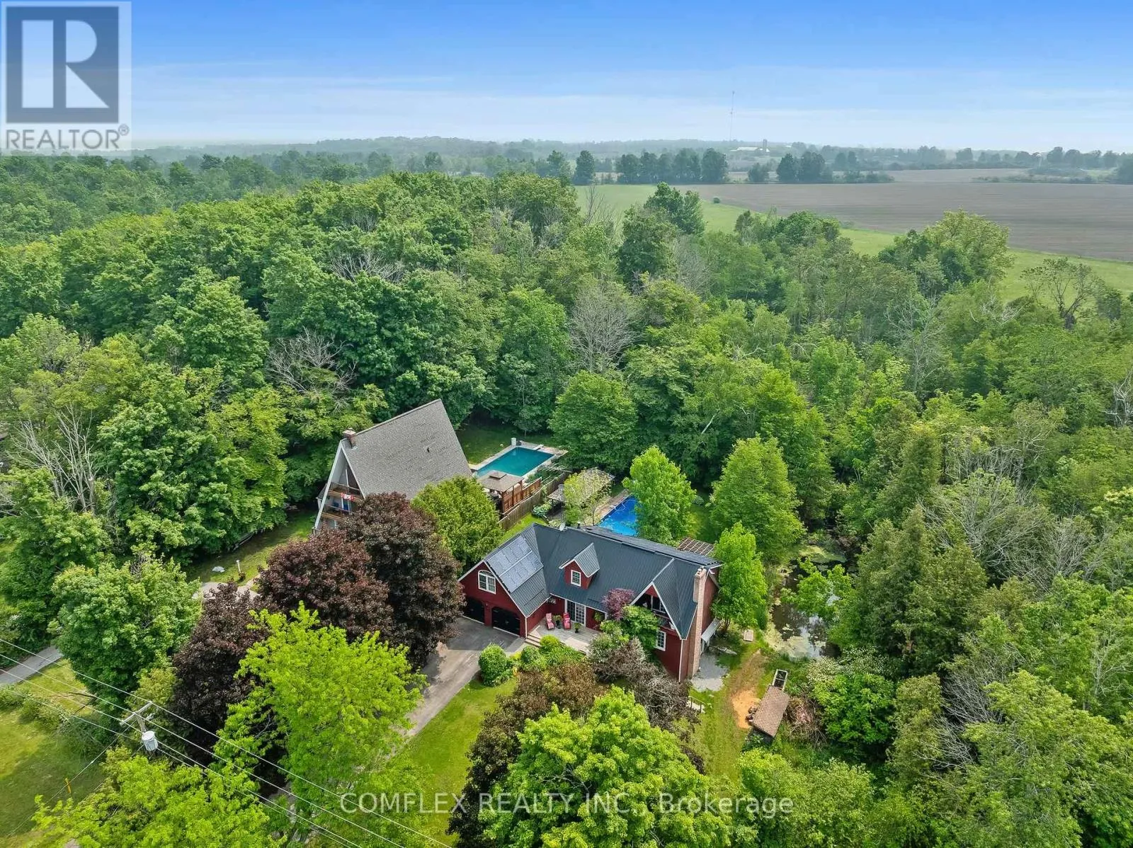Cross Streets: Island Road/Fralicks Beach Road. ** Directions: Island Rd then turn on Fralicks Beach Rd. Tucked away in a sought-after Lake Scugog community, this striking custom-built home combines elegance, space, and privacy all just minutes from Port Perry. With captivating curb appeal and a layout designed for flexibility, this property truly has it all.Inside, you'll find a bright, open-concept kitchen outfitted with granite countertops and stainless steel appliances, flowing seamlessly into a cozy family room . Two separate staircases lead upstairs, where four generous bedrooms and a dramatic loft with vaulted ceilings (perfect as a home office or studio) await. The primary bedroom includes a walk-in closet with a barn door, a semi-ensuite bath, and its own private balcony ideal for soaking in sunset views over the lake.Downstairs, the fully finished walkout basement offers exceptional potential for in-law or multi-generational living. It features a spacious rec room with a wood-burning fireplace, a fifth bedroom, and a full 3-piece bathroom plus a separate entrance from the garage for added privacy.Set on a large, private lot that backs onto mature forest, the backyard is a true retreat with an in-ground pool, hot tub, and tranquil pond. The oversized driveway accommodates up to 8 vehicles in addition to the attached double garage.Whether you're looking for a peaceful lifestyle close to nature, or a spacious home to share with family, this exceptional property delivers. All within easy reach of lake access, local shops, restaurants, and downtown Port Perry. (id:27476)