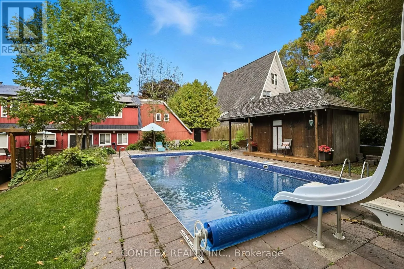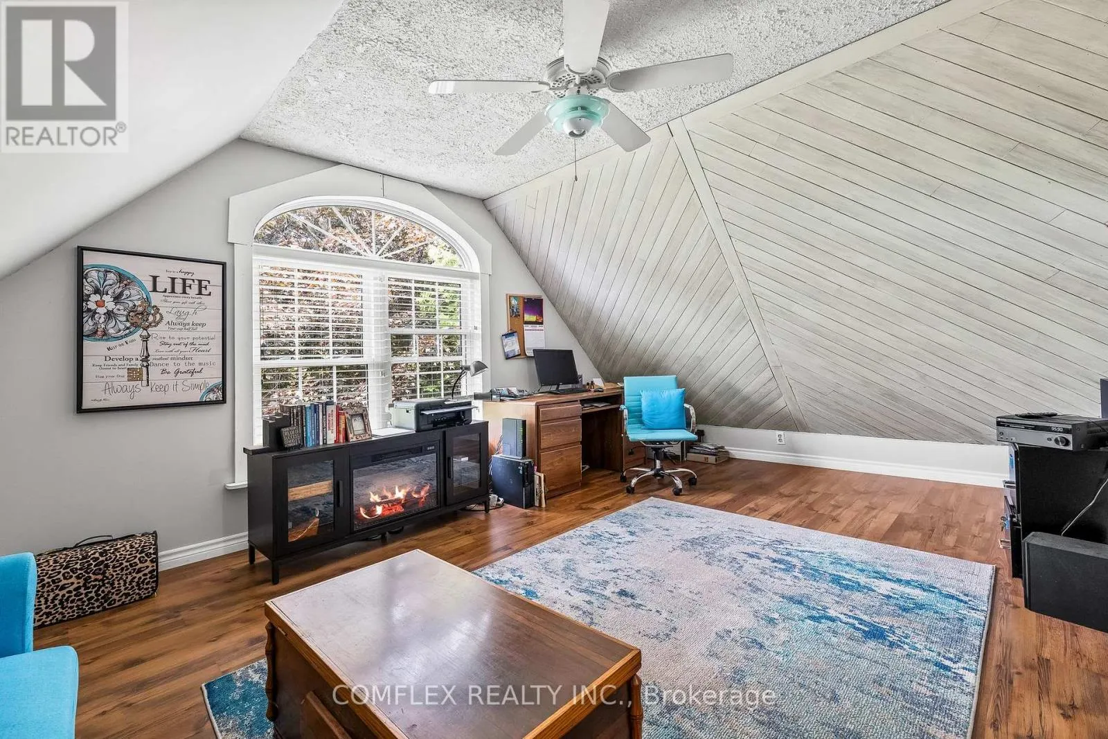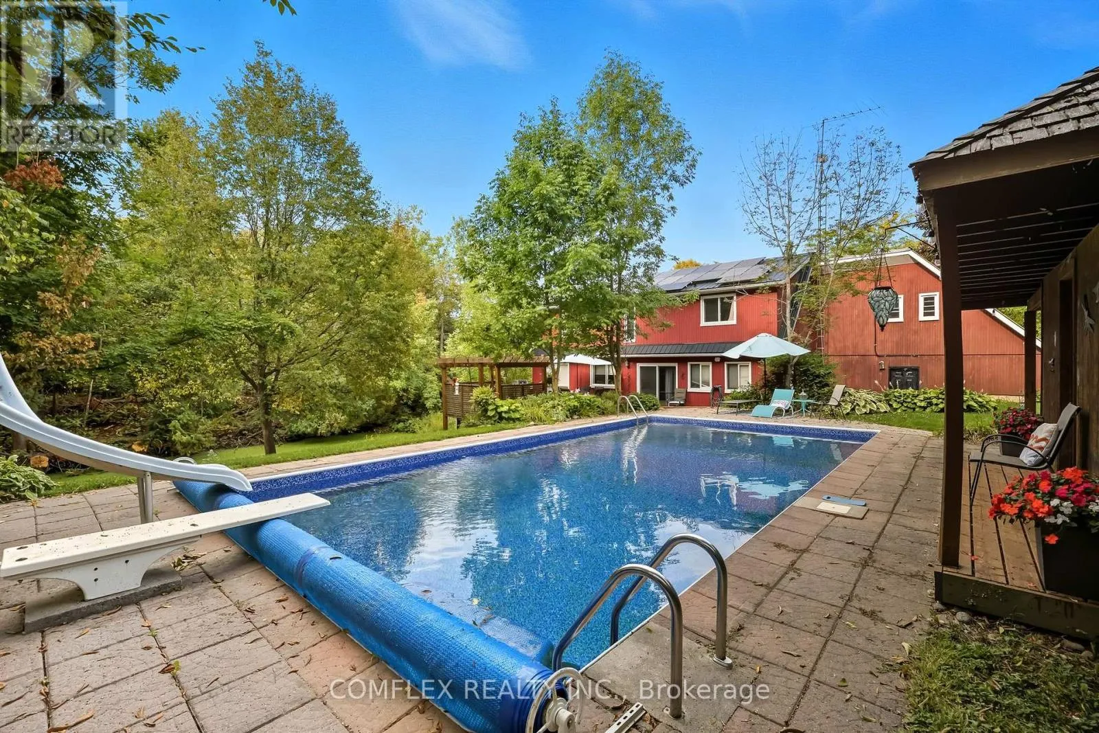 Cross Streets: Island Road/Fralicks Beach Road. ** Directions: Island Rd then turn on Fralicks Beach Rd. Tucked away in a sought-after Lake Scugog community, this striking custom-built home combines elegance, space, and privacy all just minutes from Port Perry. With captivating curb appeal and a layout designed for flexibility, this property truly has it all.Inside, you'll find a bright, open-concept kitchen outfitted with granite countertops and stainless steel appliances, flowing seamlessly into a cozy family room . Two separate staircases lead upstairs, where four generous bedrooms and a dramatic loft with vaulted ceilings (perfect as a home office or studio) await. The primary bedroom includes a walk-in closet with a barn door, a semi-ensuite bath, and its own private balcony ideal for soaking in sunset views over the lake.Downstairs, the fully finished walkout basement offers exceptional potential for in-law or multi-generational living. It features a spacious rec room with a wood-burning fireplace, a fifth bedroom, and a full 3-piece bathroom plus a separate entrance from the garage for added privacy.Set on a large, private lot that backs onto mature forest, the backyard is a true retreat with an in-ground pool, hot tub, and tranquil pond. The oversized driveway accommodates up to 8 vehicles in addition to the attached double garage.Whether you're looking for a peaceful lifestyle close to nature, or a spacious home to share with family, this exceptional property delivers. All within easy reach of lake access, local shops, restaurants, and downtown Port Perry. (id:27476)