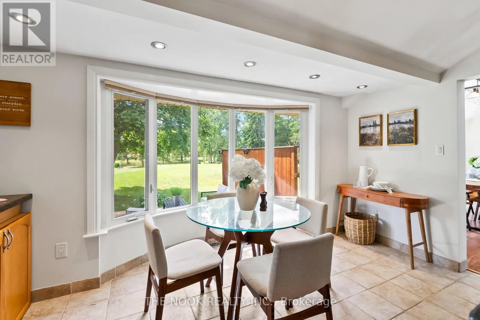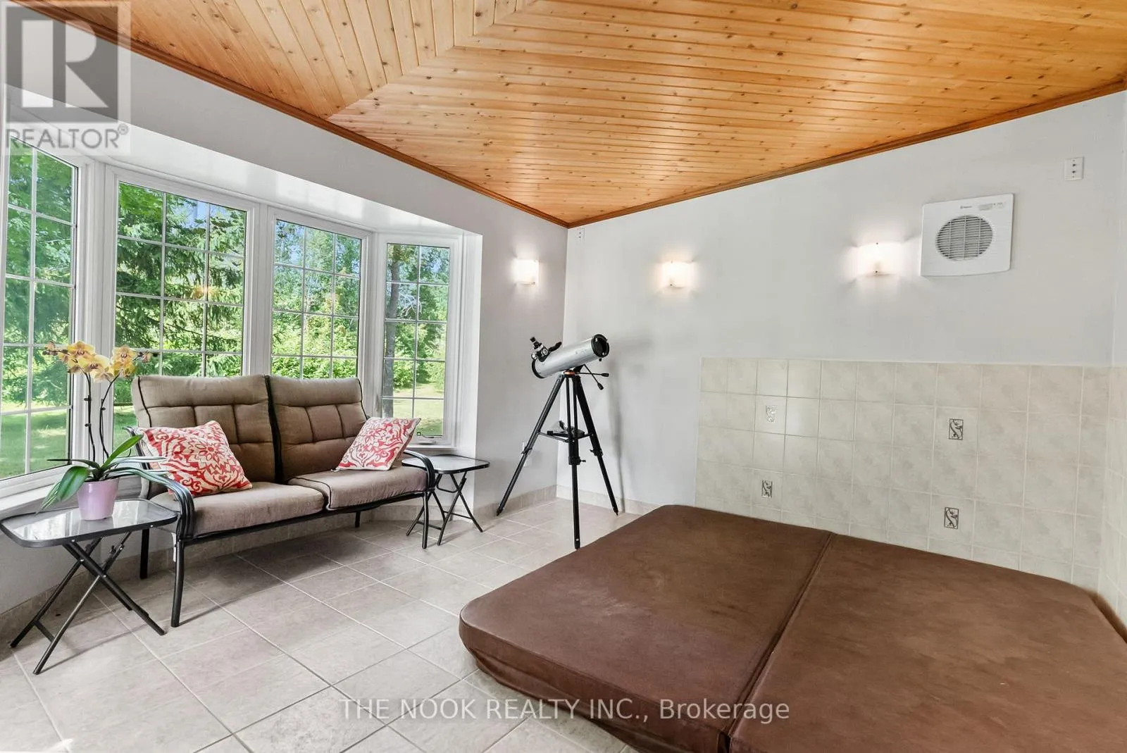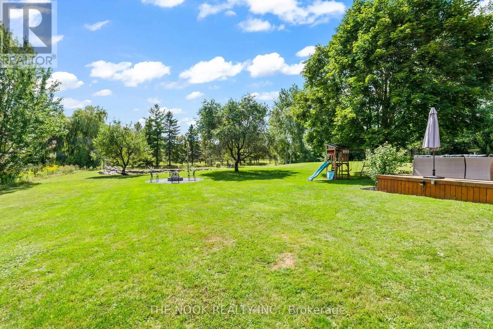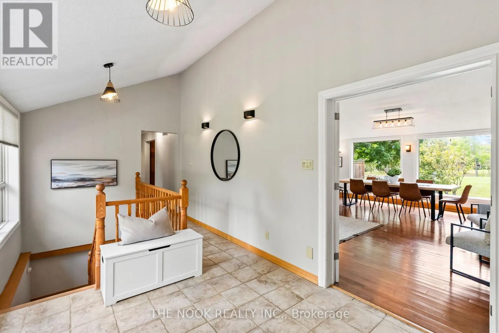 Cross Streets: Simcoe and Stone Sound. ** Directions: North on Simcoe East on Stone Sound. Tucked away on a beautifully landscaped 1.5-acre lot in the prestigious lakeside community of Cawkers Cove, this custom 3-bedroom Viceroy bungalow combines timeless elegance with modern comfort.Step into a bright, welcoming foyer with double closets that opens to a stunning open-concept living and dining area. Soaring vaulted ceilings, gleaming hardwood floors, crown moulding, pot lights, and expansive picture windows with distinctive north-facing transoms fill the space with natural light and charm.The inviting family room centers around a classic brick wood-burning fireplace and offers a walkout to an oversized deck-perfect for entertaining or relaxing outdoors. The chef's kitchen impresses with granite countertops, a striking stone backsplash, built-in stainless steel appliances, a dedicated desk area, and an oversized island with breakfast bar. The sunlit breakfast nook overlooks the private, tree-lined grounds, creating the perfect morning retreat.A stylish powder room, French-door office or guest room, convenient laundry with side entrance, and direct access to a 3-car garage with EV outlets complete the main level.The luxurious primary suite offers custom built-ins and a spa-inspired ensuite featuring heated floors, a deep soaker tub, and a stone jet steam shower. French doors open to a private hot tub room with its own entrance and deck-an ideal space for a home gym or studio. Two additional spacious bedrooms complete the main floor.The lower level includes a finished games room and over 2,200 sq. ft. of drywalled space ready for your personal touch.Outside, the property shines with a triple-wide driveway framed by a mature privacy hedge, expansive deck, cozy fire pit, and a tranquil spring-fed pond with water feature and sandy beach.A truly unique home offering elegance, privacy, and the relaxed luxury of country living-just minutes from town. Be sure to explore the virtual tour to experience this remarkable property firsthand. (id:27476)