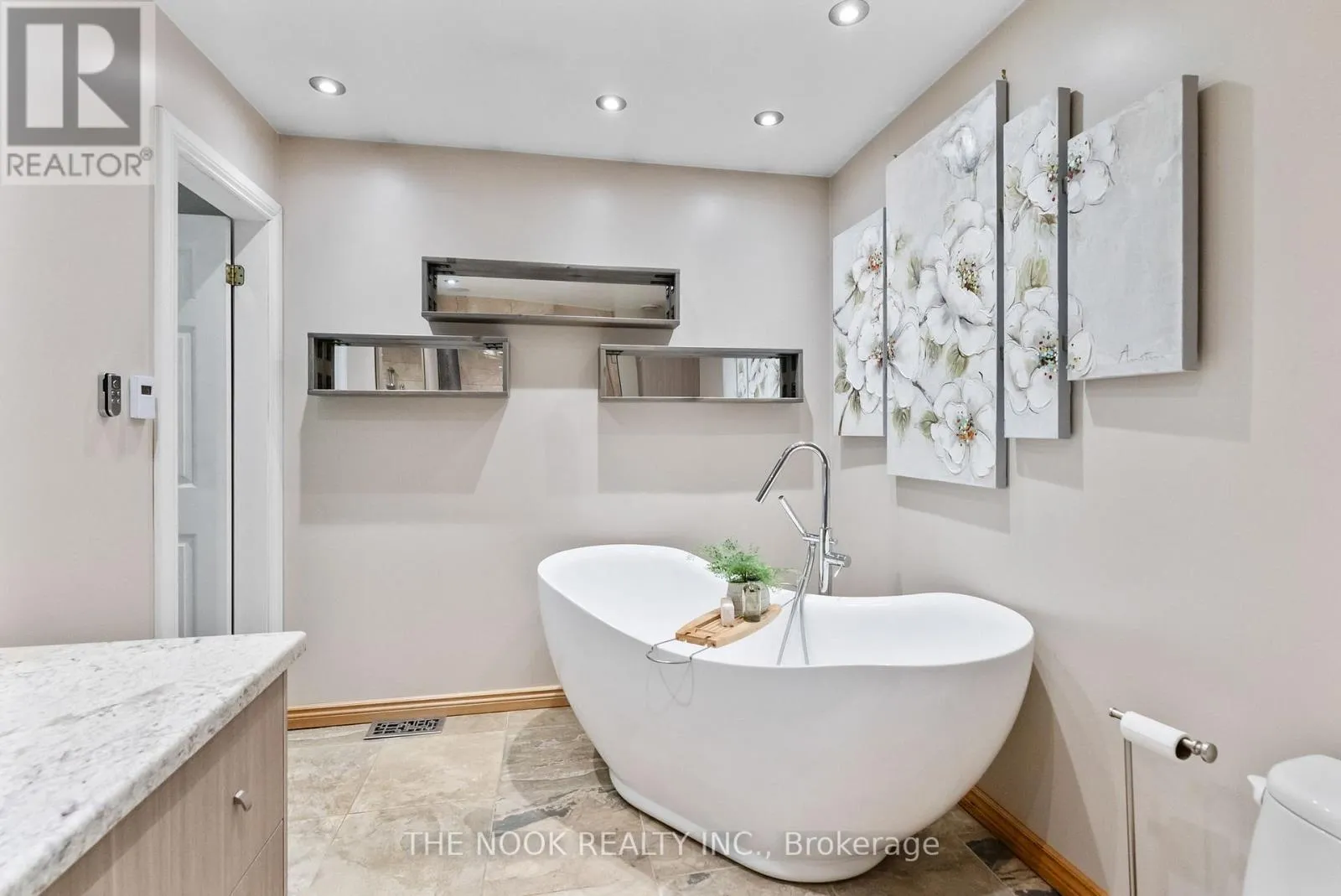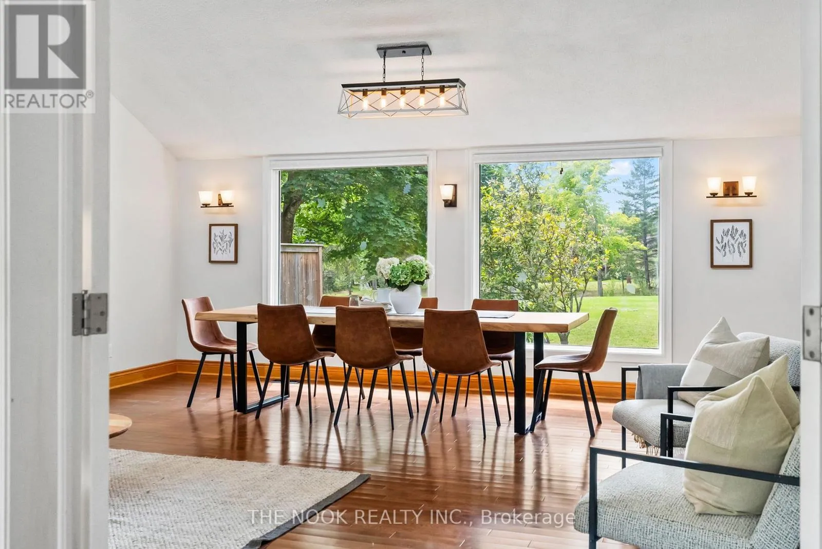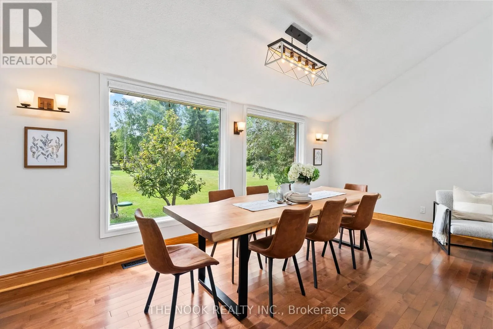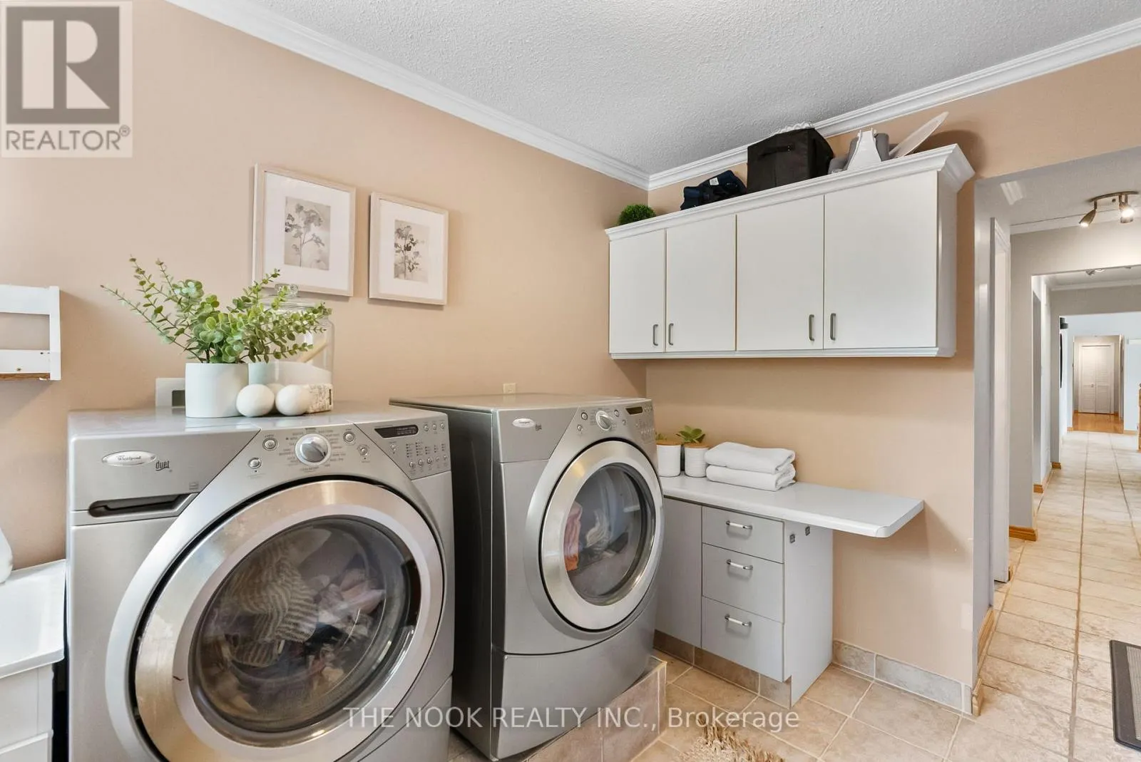 Cross Streets: Simcoe and Stone Sound. ** Directions: North on Simcoe East on Stone Sound. Tucked away on a beautifully landscaped 1.5-acre lot in the prestigious lakeside community of Cawkers Cove, this custom 3-bedroom Viceroy bungalow combines timeless elegance with modern comfort.Step into a bright, welcoming foyer with double closets that opens to a stunning open-concept living and dining area. Soaring vaulted ceilings, gleaming hardwood floors, crown moulding, pot lights, and expansive picture windows with distinctive north-facing transoms fill the space with natural light and charm.The inviting family room centers around a classic brick wood-burning fireplace and offers a walkout to an oversized deck-perfect for entertaining or relaxing outdoors. The chef's kitchen impresses with granite countertops, a striking stone backsplash, built-in stainless steel appliances, a dedicated desk area, and an oversized island with breakfast bar. The sunlit breakfast nook overlooks the private, tree-lined grounds, creating the perfect morning retreat.A stylish powder room, French-door office or guest room, convenient laundry with side entrance, and direct access to a 3-car garage with EV outlets complete the main level.The luxurious primary suite offers custom built-ins and a spa-inspired ensuite featuring heated floors, a deep soaker tub, and a stone jet steam shower. French doors open to a private hot tub room with its own entrance and deck-an ideal space for a home gym or studio. Two additional spacious bedrooms complete the main floor.The lower level includes a finished games room and over 2,200 sq. ft. of drywalled space ready for your personal touch.Outside, the property shines with a triple-wide driveway framed by a mature privacy hedge, expansive deck, cozy fire pit, and a tranquil spring-fed pond with water feature and sandy beach.A truly unique home offering elegance, privacy, and the relaxed luxury of country living-just minutes from town. Be sure to explore the virtual tour to experience this remarkable property firsthand. (id:27476)