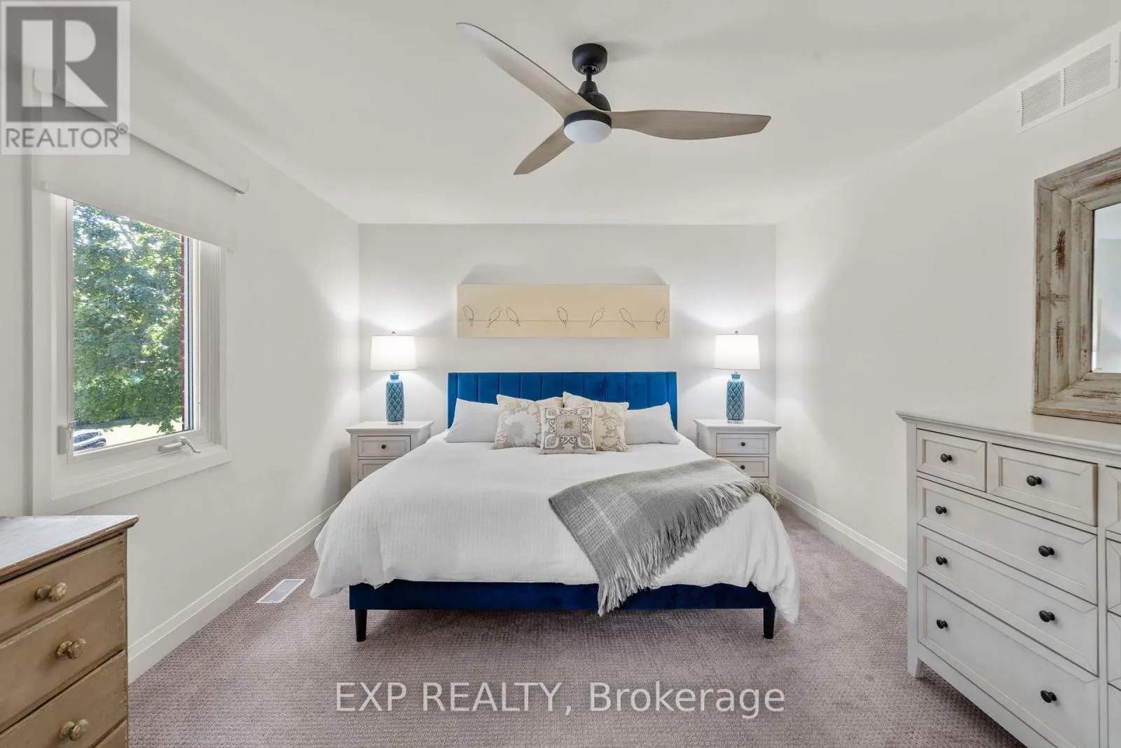 Simcoe Street & Riverview corner of Edinborough. Driveway faces Edinborough Welcome to this truly exceptional property, fully renovated from top to bottom with no detail overlooked in the prestigious community of Cawkers Creek. Situated on an oversized private lot, this home blends timeless elegance with modern luxury. Step into the custom designed kitchen featuring high-end appliances, quartz counters and backsplash, a show-stopping 9-foot island and ample space for cooking, gathering, and entertaining.The open-concept layout is flooded with natural light from expansive windows, enhancing the crown moulding, stunning flooring, new lighting and fresh paint throughout. The main floor flows seamlessly into a stunning screened-in three-season sunroom, a private retreat overlooking the beautifully landscaped backyard and brand new deck. Just off the main level is another full living space with a fireplace, stunning built-ins and large windows. Just across is the hidden laundry room and a large bedroom, ensuite and walk-in closet. This level also has two spacious separate entrances plus garage access. The upper level boasts three large bedrooms all with large closets, windows and two luxurious bathrooms. Downstairs enjoy a fully finished basement with soaring 9-foot ceilings, ideal for a rec area, home gym, or extra bedroom. The spacious double car garage and extended driveway offer abundant parking and convenience. Every inch of this home has been crafted with quality and care, offering a truly turnkey living experience in a serene and private setting. Located on a quiet street & close to all amenities! *EXTRAS* Fully renovated throughout, new lighting, doors, trim, baseboards, fresh paint, new carpet throughout, deck, luxury appliances, Shed has electrical, furnace 2020, heat pump/ac 2025, hwt 2025 owned, newer roof, newer windows. Please see feature sheet for more details. Seller is open to Vendor take back mortgage. (id:27476)